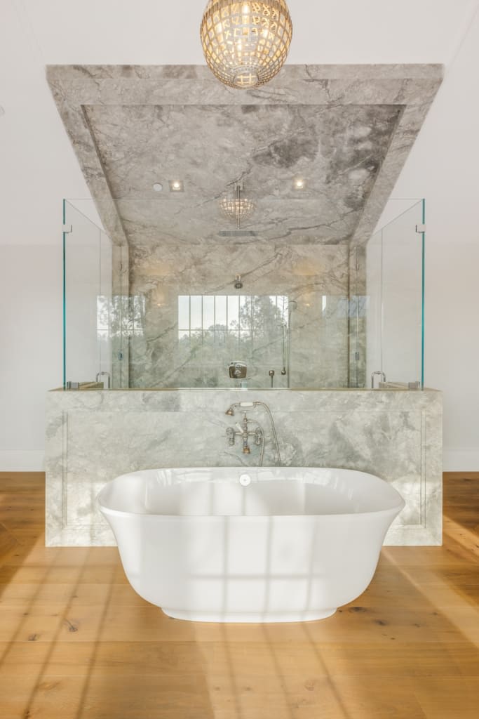 When you think of an opulent spa bath, you likely conjure up an image of marble and glass — right? Well, one of this year’s hottest bathroom trends is going to throw you for a loop. Cue natural woods. Think tranquil sauna in Jackson Hole, uber-chic spa in the Swiss Alps, or even luxe glamping vibes in Big Sur. By incorporating natural elements like wood into your bathroom’s decor scheme, you’re able to achieve a warm, cozy, laidback environment that inspires complete wellbeing, no matter the season. White drywall, porcelain, and metal hardware are definitely starting to feel a bit sterile, thus the major and totally welcomed uptick in natural woods this year.