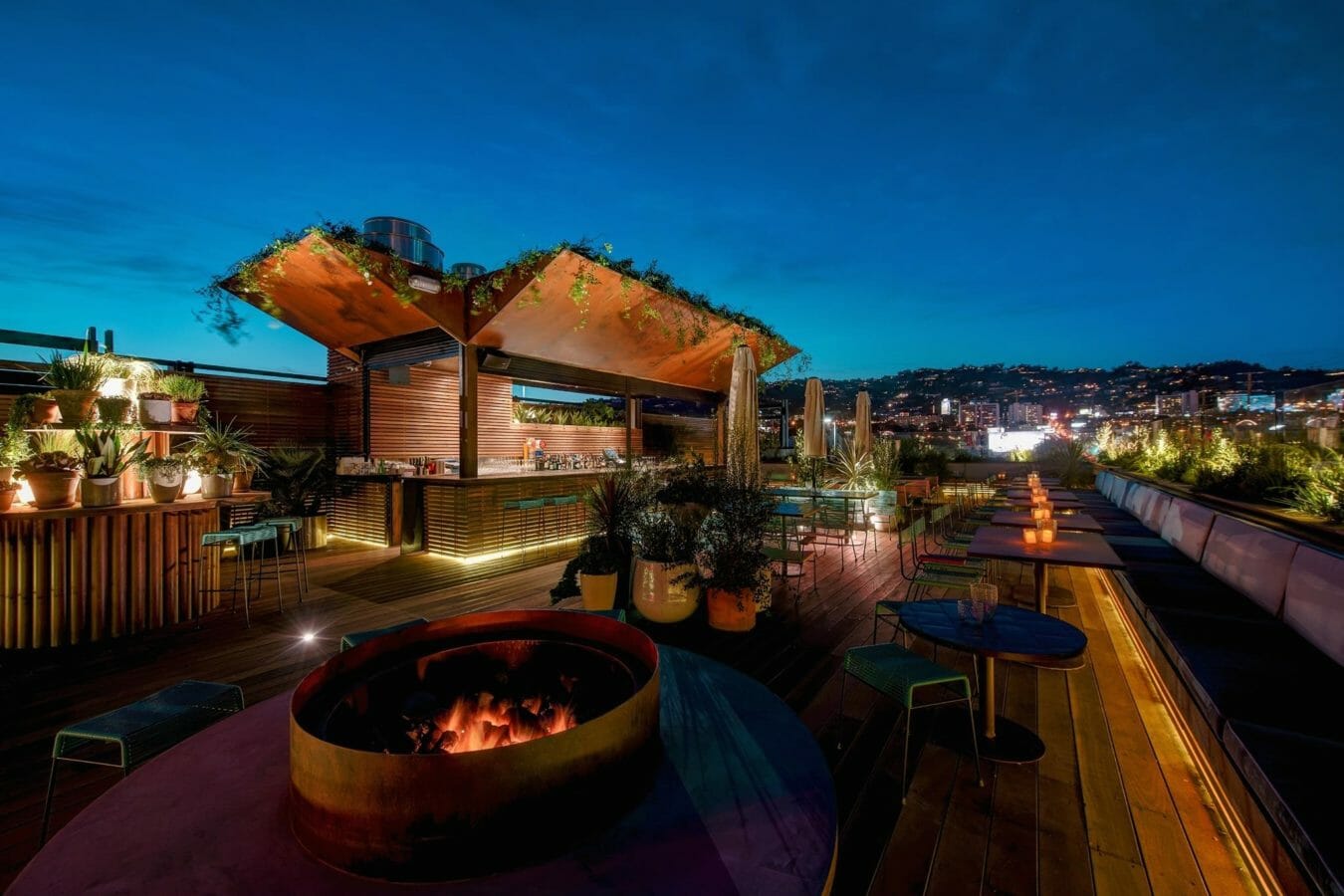 While E.P. is serving up a trendy twist on Asian classics on the first story, L.P. is dishing out small bites and epic cocktails on the rooftop. One of the largest format decks in Los Angeles, L.P. boasts several fire pits and killer views of the Hollywood Hills allowing you to unwind and recharge after a long day of work.