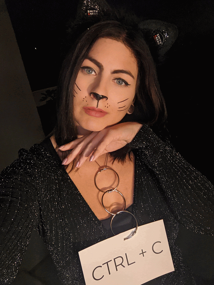 Another costume that takes little effort and packs a serious punch. Do like Office Manager Krista Masella does and smack on a CTRL + C label, find yourself a pair of ears (you can even make them, if needed), draw a few whiskers with eyeliner and you’ll be the cat’s pajamas at any Halloween party.