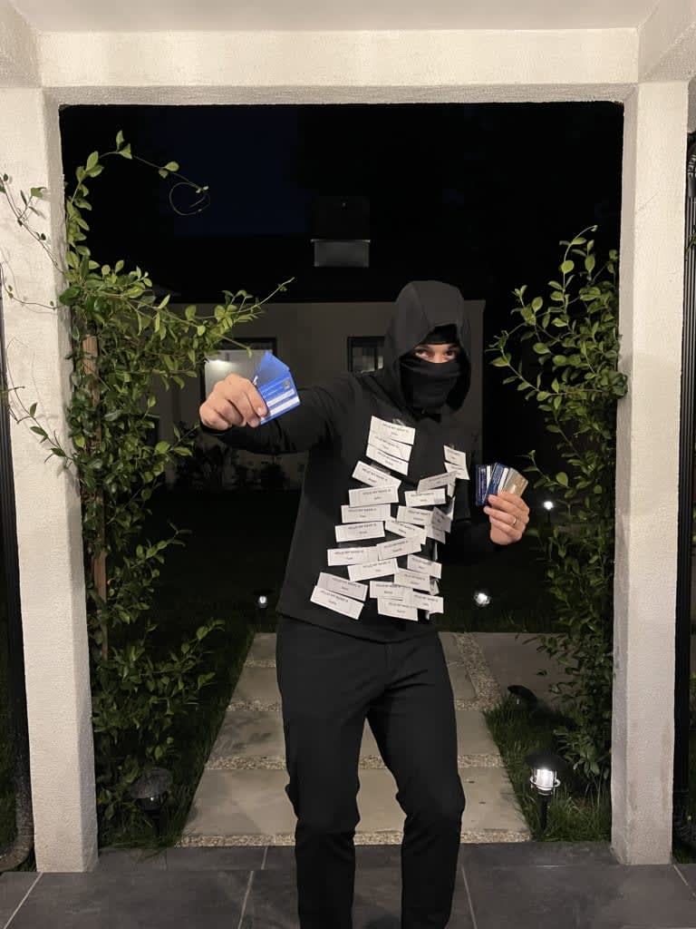 When we say this costume is as easy as it gets, we really and truly mean it. One of Associate Partner Tyler Drinkwater‘s favorite costumes, the identity thief is complete with a few sticky-name tags, black clothing and a bandana (or better yet, a mask!) to put you undercover. Bonus points if you can cap it off with some IDs or credit cards.