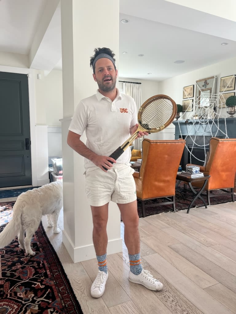 Associate Partner Nathan Stadler wants to let you in on a little secret — if you have athletic gear at home, there’s a good chance you can make a costume out of it. All the USC grad had to do was dust off his old tennis clothes, throw on a sweatband and grab a racquet for an easy get-up that’s a true blast from the past.