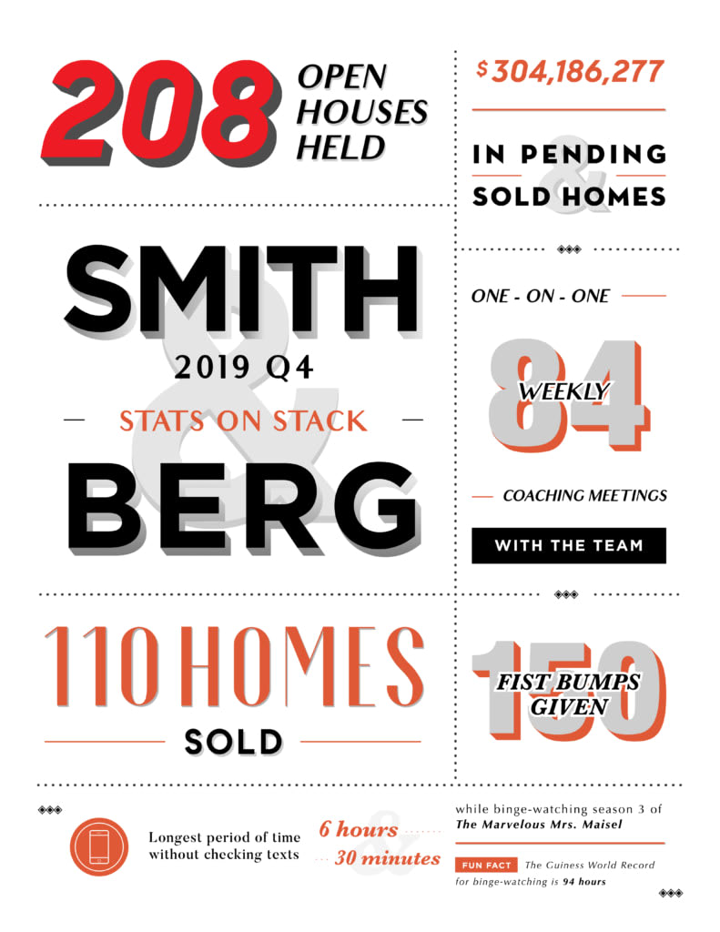 As you can likely imagine, analyzing real estate market data is super fun for the SBP team—nothing gets us going like a little median negotiability! But, of course, we realize the sterility of such uncontextualized facts and figures. That’s why, in typical SBP fashion, we’ve put a few of our team’s greatest Q4 stats alongside absolutely irrelevant data. Oh, what? Like you didn’t want to know how long we went without checking our phones this past quarter? But, of course, the whole is greater than the sum of its parts. Simply put, we have an entire Q4 Market Report that gives a thoroughly epic rundown of what we’ve been up to—all via the link below. Want a printed version? Hit us up at [email protected] for your very own copy.