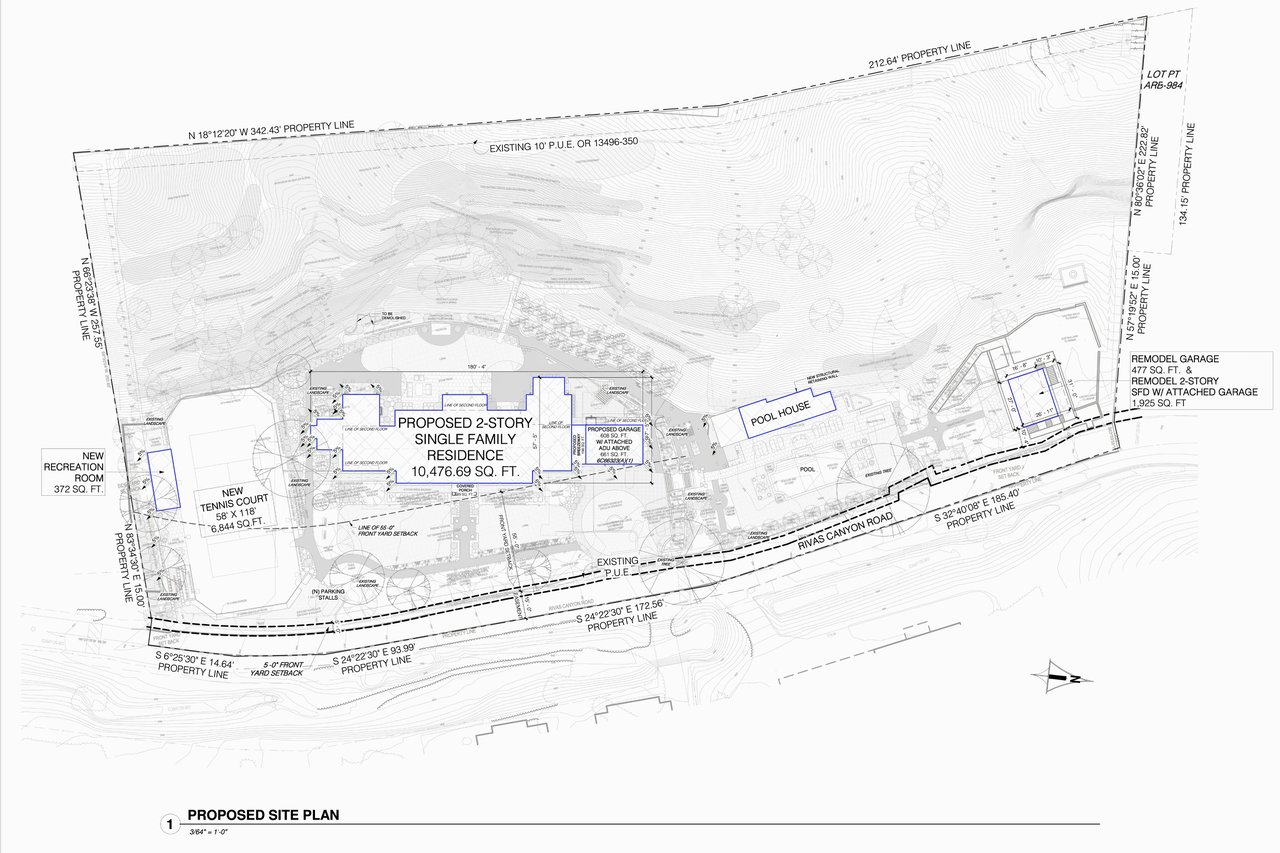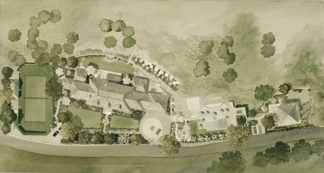 An extraordinary and truly rare offering in Pacific Palisades, 1001 Rivas Canyon Road presents a premier 3.3-acre tennis court estate parcel with Architectural Plans and Permits included, offering a seamless path to the creation of a world-class legacy compound. Rich in provenance and prestige, this iconic property was once the personal residence of Will Rogers and later home to acclaimed actress Michelle Pfeiffer—an irreplaceable blend of heritage, privacy, and distinction. Tucked away along a private road above Sunset Boulevard and surrounded by fewer than 20 estate parcels, the setting affords an exceptional level of seclusion and tranquility, with direct access at the end of the cul-de-sac to the picturesque Rivas Canyon Trail leading into Will Rogers State Historic Park. Curated for the most discerning buyer, the offering is fully primed for development with plans for a magnificent gated estate anchored by a two-story main residence spanning over 10,400 square feet with 6 bedrooms and 9 bathrooms. The compound is thoughtfully envisioned to include a two-story guest house with attached garage, a pool house, and a championship tennis court complete with pavilion, lighting, and viewing deck, all set within expansive, resort-caliber grounds. The architectural design pays homage to the character of the original residence with a timeless brick facade and natural slate roof, while introducing refined modern living through grand-scale interiors, seamless indoor-outdoor flow, a luxurious main-level primary suite, library, executive office, and attached three-car garage. Complementing the vision, the sale includes a Geological Report (2024), ALTA Title Survey (2024), and the final debris removal permit, delivering a valuable foundation for development. Zoned for equestrian use and inclusive of the original guest house structure, the property offers both versatility and enduring appeal. Ideally positioned just moments from Palisades Village, the Riviera Country Club, renowned dining and shopping, and approximately two miles from the Pacific Ocean, this is a once-in-a-generation opportunity to create a landmark estate in one of the Westside's most coveted coastal enclaves—an offering of exceptional scale, history, and opportunity.
