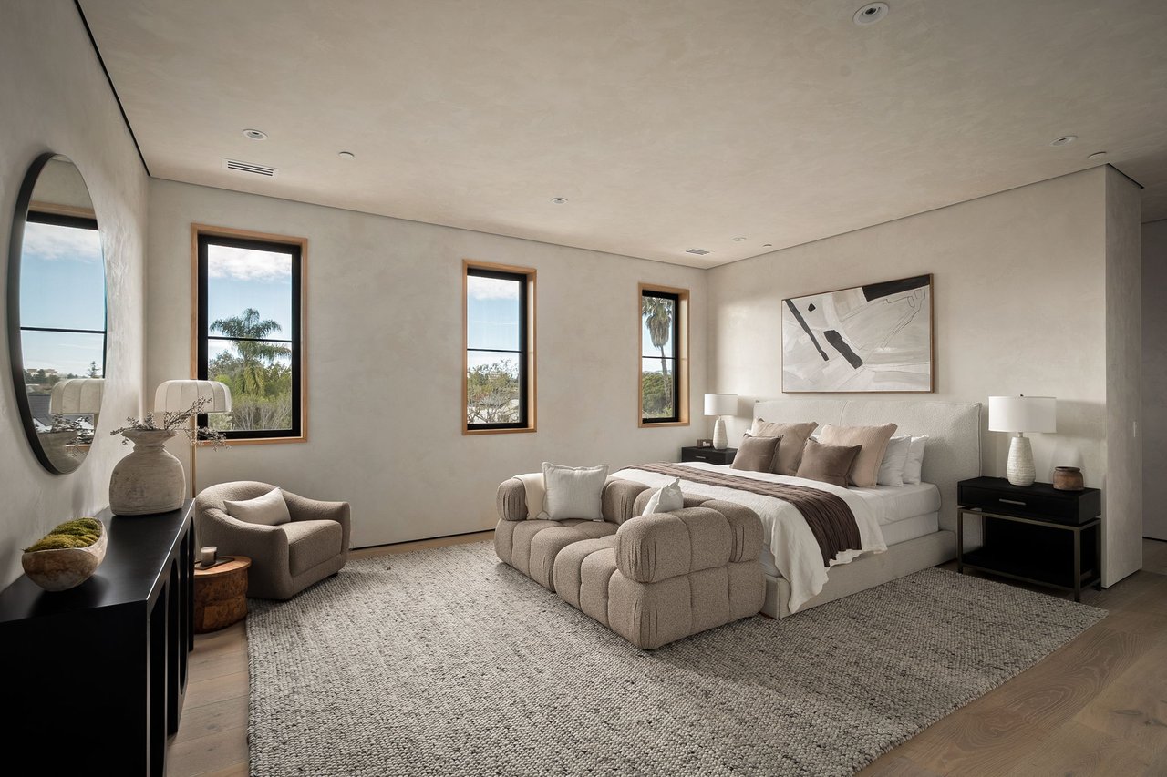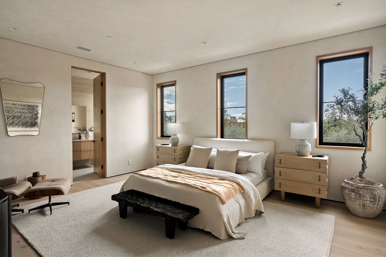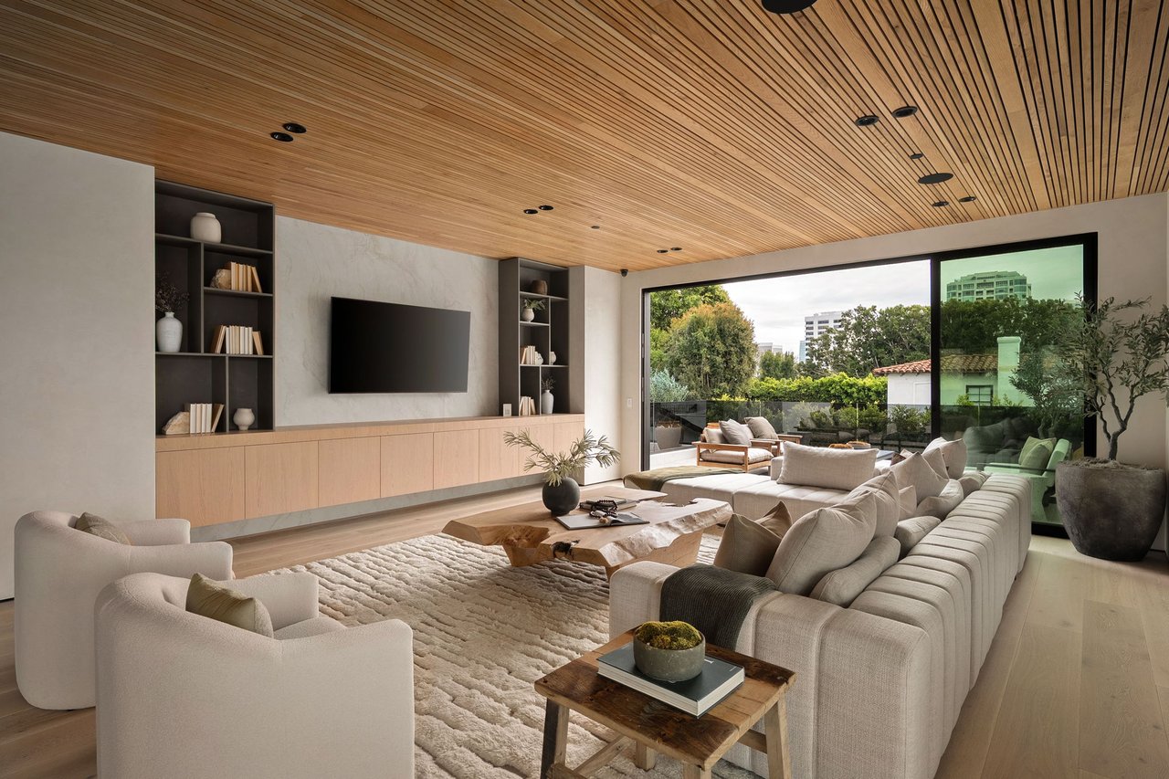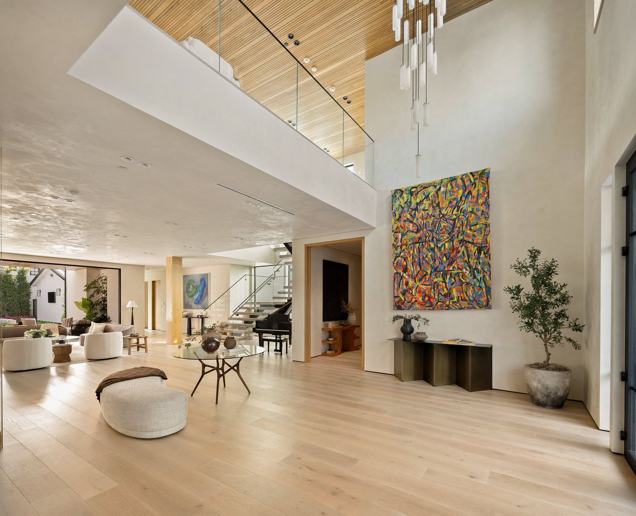 Built with a reverence for scale and serenity, 10386 Strathmore Drive stands as Little Holmby's definitive new construction estate. Set on more than half an acre and enveloped in mature greenery, the more than 12,200 square-foot gated residence unfolds across the main home and a detached 1-bedroom guest house, creating a refined compound designed for elevated living and effortless entertaining. A dramatic, double-height entry sets the architectural tone—light-filled, sculptural, and meticulously composed. Soft organic textures meet crisp, modern lines, while expansive panes of glass allow in radiant natural light. Every space reveals thoughtful craftsmanship: warm woods, artisan plaster walls, and a curated mix of natural materials that bring depth to the home's contemporary aesthetic. The great room spills out to the backyard through a wall of sliding glass, creating a seamless indoor-outdoor experience. At the heart of the home is a showstopping gourmet kitchen with dual stone islands, a premium suite of Miele appliances, and a fully concealed secondary kitchen ideal for hosting or staff use. An executive office, immersive home theater, gym, and two guest suites complete the main level. Upstairs, the primary suite is designed as a retreat where tranquility takes precedence. A comfortable sitting area and fireplace anchor the bedroom, while a private terrace overlooks the estate grounds. The ensuite bath, inspired by a world-class spa, features a dual steam shower clad in stone, a soaking tub, and dual vanities, accompanied by two boutique-style walk-in closets. Four additional ensuite bedrooms and a spacious family lounge round out the upper level. Outside, the expansive grounds are wrapped in mature privacy hedging and offer a resort-like environment with a saltwater pool and spa, expansive patios, firepit lounge, and outdoor kitchen. The detached guest house offers versatility for hosting, staff, or extended stays, and is complete with a kitchenette, living area, bedroom, and full bath. Two garages, fully integrated smart systems, and gallery-caliber finishes complete the home's extensive offering. Moments from Holmby Park, UCLA, and top-rated schools, the estate represents California living at its finest, where modern design meets timeless prestige.
