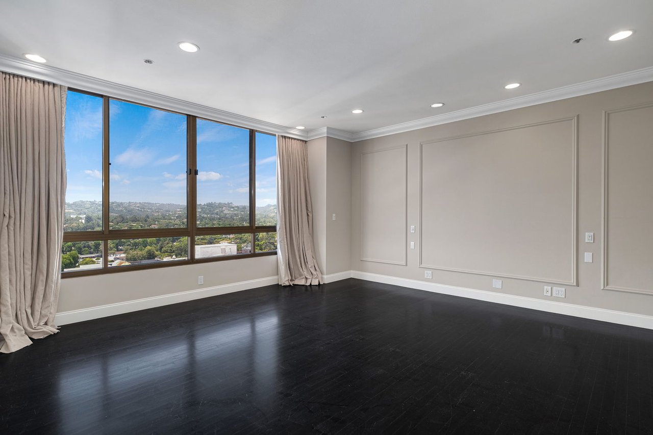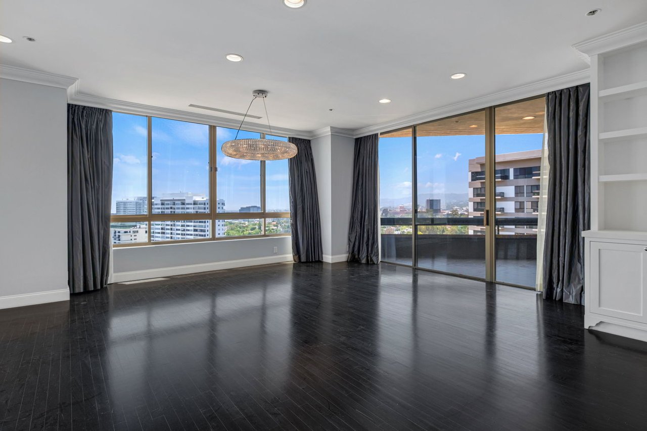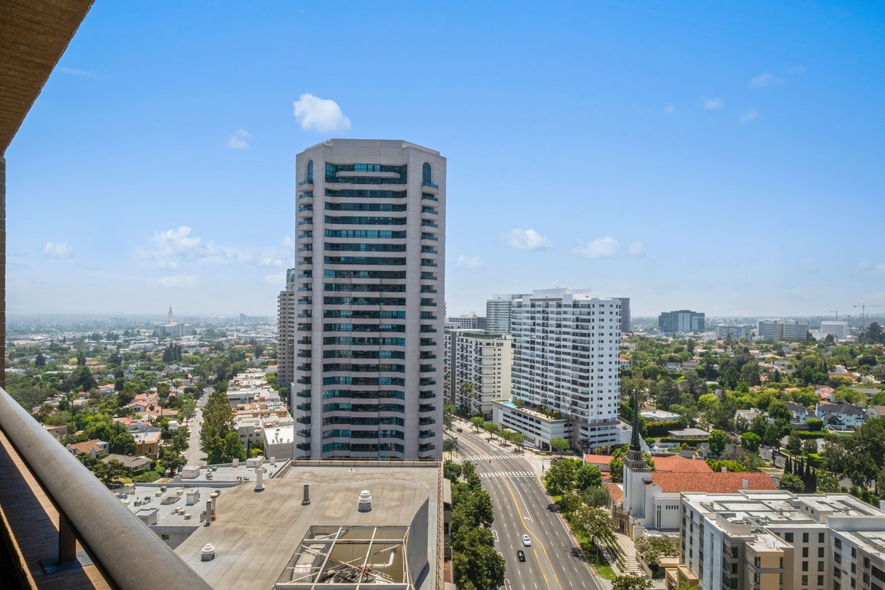 Located on the prestigious Wilshire Corridor known as the "Millionaire's Mile," 10430 Wilshire Boulevard Unit 604 is a spacious 2-bedroom, 3-bathroom home featuring incredible skyline views of Downtown and Century City. Designed by Maxwell Starkman and Associates in 1982, the building is known for its artist-inspired lobby, expansive floorplans and captivating city views. The unit features a stunning double-door entry into the foyer, where floor-to-ceiling windows offer abundant natural light throughout. Both bedrooms are ensuite, along with a powder room for guests. In the kitchen, find sleek black granite countertops, a breakfast nook, a Sub-Zero refrigerator and Thermador warming drawer. Enjoy private outdoor space with a covered balcony overlooking the DTLA skyline. Along with an in-unit washer and dryer, additional building amenities include valet parking, a concierge, gym, rec room, swimming pool, spa, and sauna. Plus, the HOA dues cover most utilities including cable and internet by DirecTV. Experience the best of Westwood living in an unparalleled location with effortless proximity to Beverly Hills, Century City and all of LA's Westside.