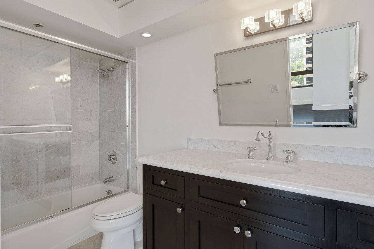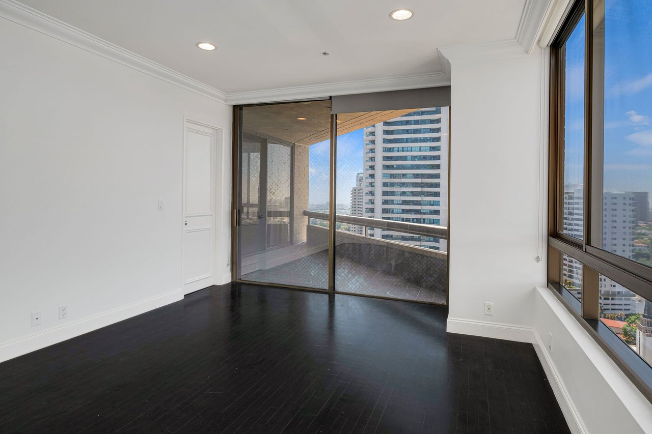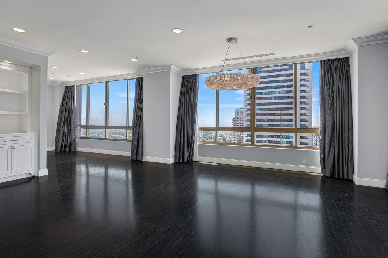 Located on the prestigious Wilshire Corridor known as the "Millionaire's Mile," 10430 Wilshire Boulevard Unit 604 is a spacious 2-bedroom, 3-bathroom home featuring incredible skyline views of Downtown and Century City. Designed by Maxwell Starkman and Associates in 1982, the building is known for its artist-inspired lobby, expansive floorplans and captivating city views. The unit features a stunning double-door entry into the foyer, where floor-to-ceiling windows offer abundant natural light throughout. Both bedrooms are ensuite, along with a powder room for guests. In the kitchen, find sleek black granite countertops, a breakfast nook, a Sub-Zero refrigerator and Thermador warming drawer. Enjoy private outdoor space with a covered balcony overlooking the DTLA skyline. Along with an in-unit washer and dryer, additional building amenities include valet parking, a concierge, gym, rec room, swimming pool, spa, and sauna. Plus, the HOA dues cover most utilities including cable and internet by DirecTV. Experience the best of Westwood living in an unparalleled location with effortless proximity to Beverly Hills, Century City and all of LA's Westside.