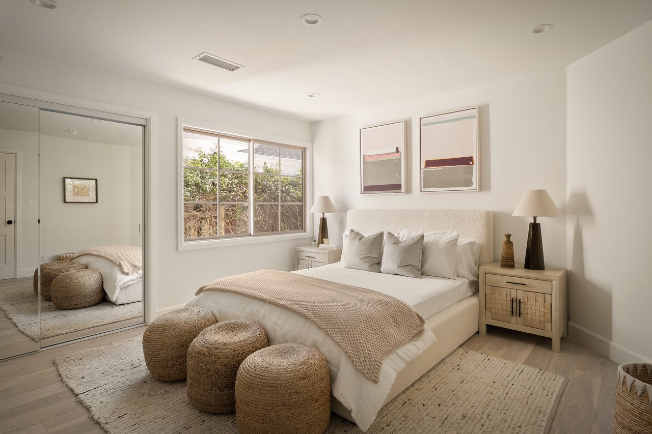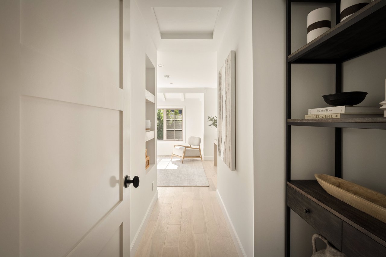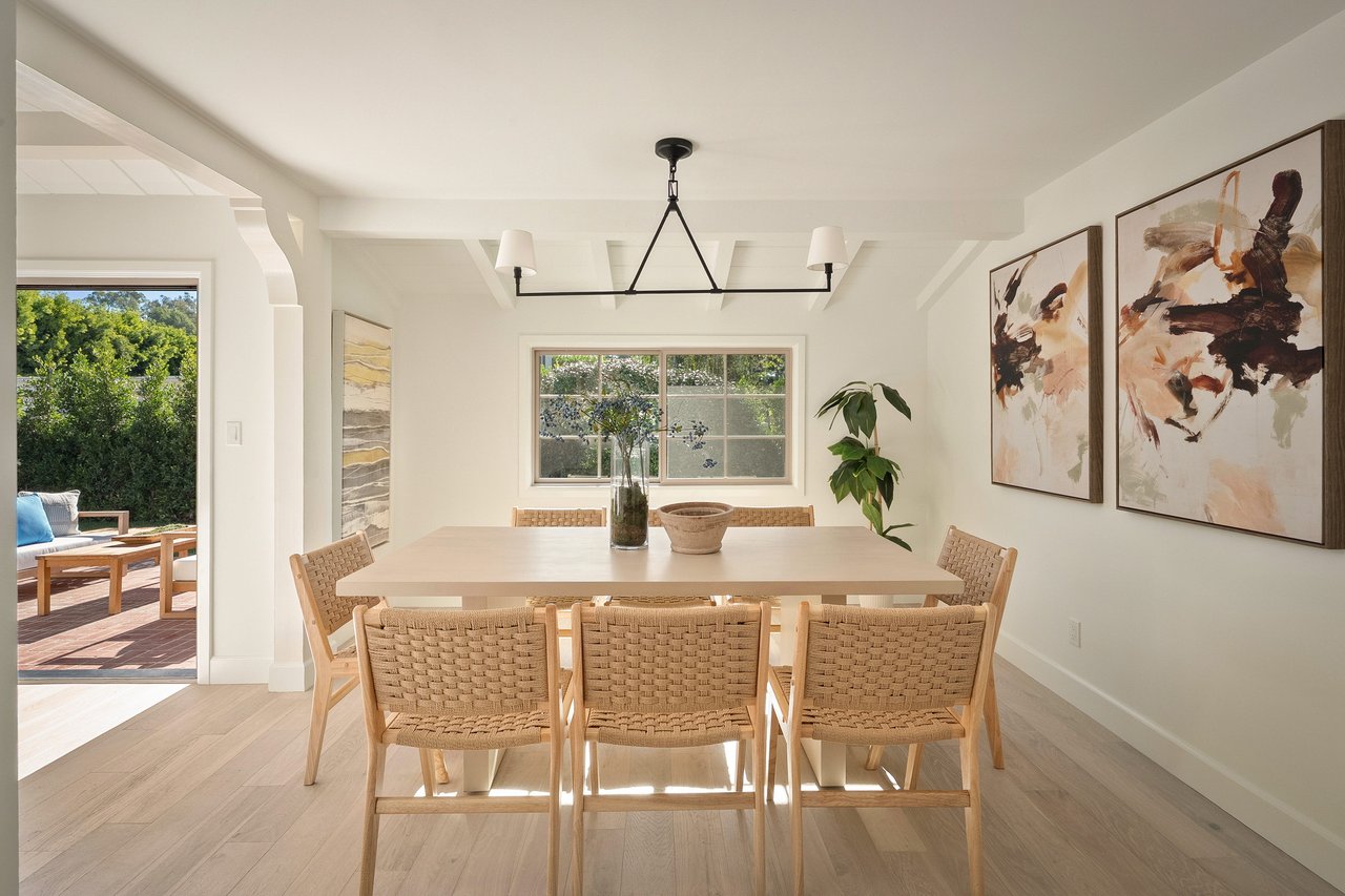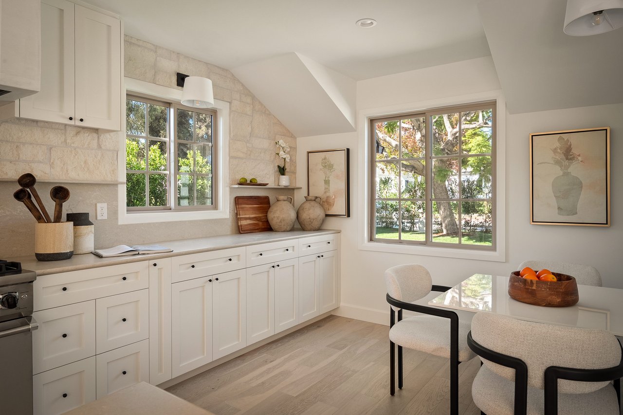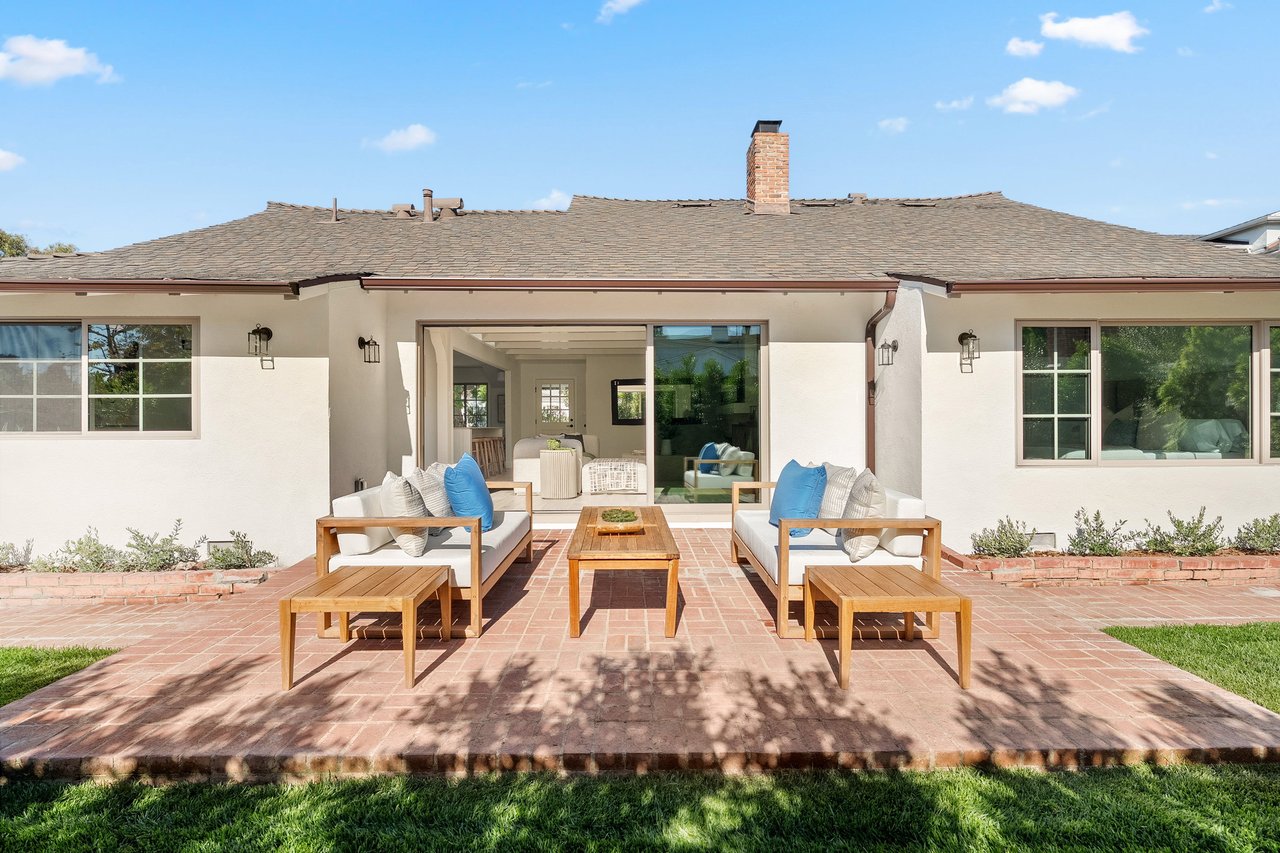 Completely transformed in 2025, this Westwood residence has been rebuilt as a turnkey sanctuary of light, style, and sophistication. Inside, a flowing open layout is framed by large windows, beamed ceilings, and white oak floors that infuse every space with warmth and airiness. The living room centers around a gas fireplace and opens effortlessly to the backyard through expansive sliding glass doors, creating the ideal setting for indoor/outdoor living. The adjoining kitchen is both beautiful and functional, with white shaker cabinetry, stone countertops, a generous seated island, and a walk-in pantry. Premium Viking appliances add convenience for the avid cook or entertainer, while the window-lined dining area offers a sunlit setting for casual meals or lively gatherings. The serene primary suite provides a private retreat with a walk-in closet and a spa-like bathroom featuring dual vanities and a glass-enclosed shower adorned with designer tile. Down the hall are three additional bedrooms, one suited as a home office, and two stylish bathrooms. Outside, the fully fenced backyard invites long afternoons in the California sunshine. Dine al fresco on the brick patio, unwind on the lawn, and enjoy the ease of a custom home that’s been thoughtfully crafted for modern living. With a new pull-through driveway, dedicated laundry area, and all-new systems and finishes, every detail has been designed for comfort and peace of mind. Set on a desirable corner lot just moments from Brentwood Village, The Getty, and the boutiques and dining along San Vicente Boulevard, this home captures the essence of refined Westside living.