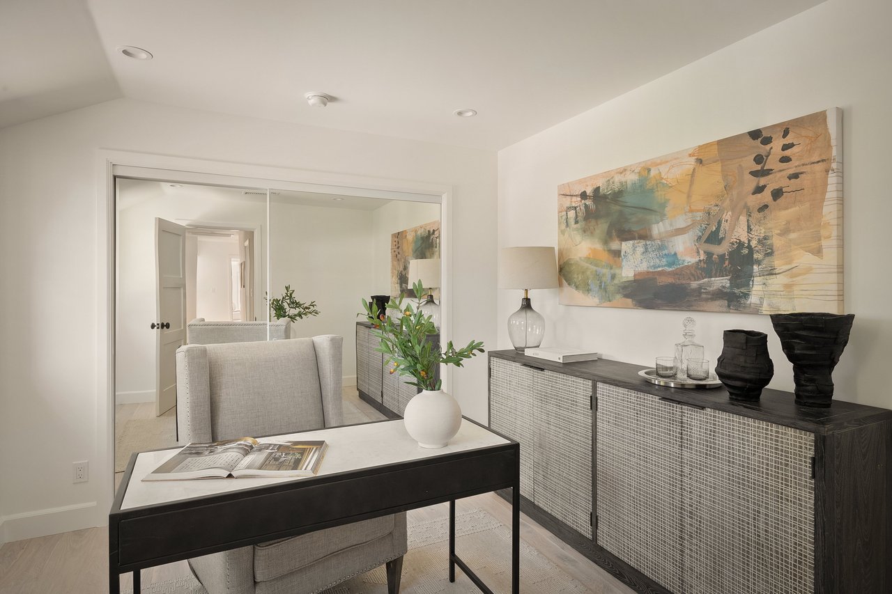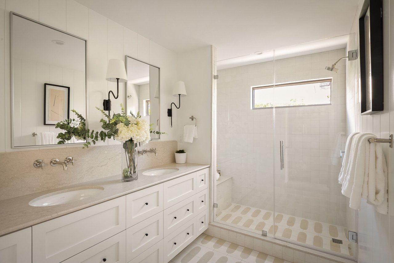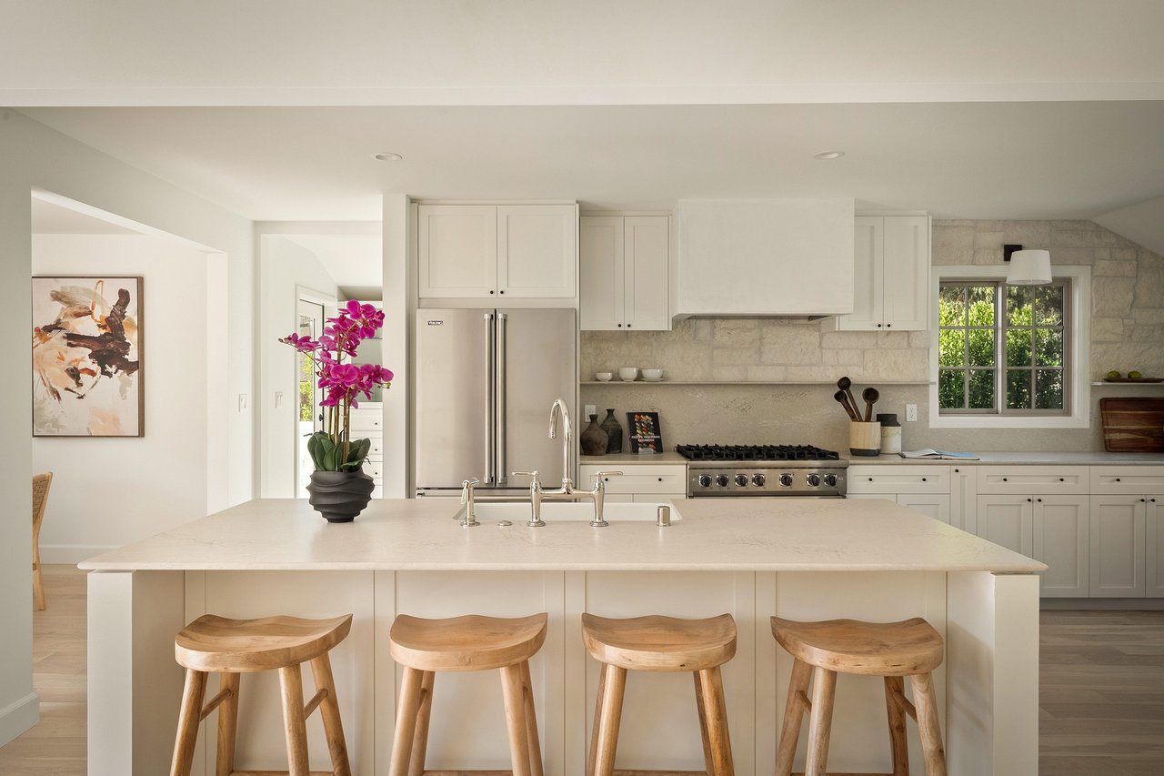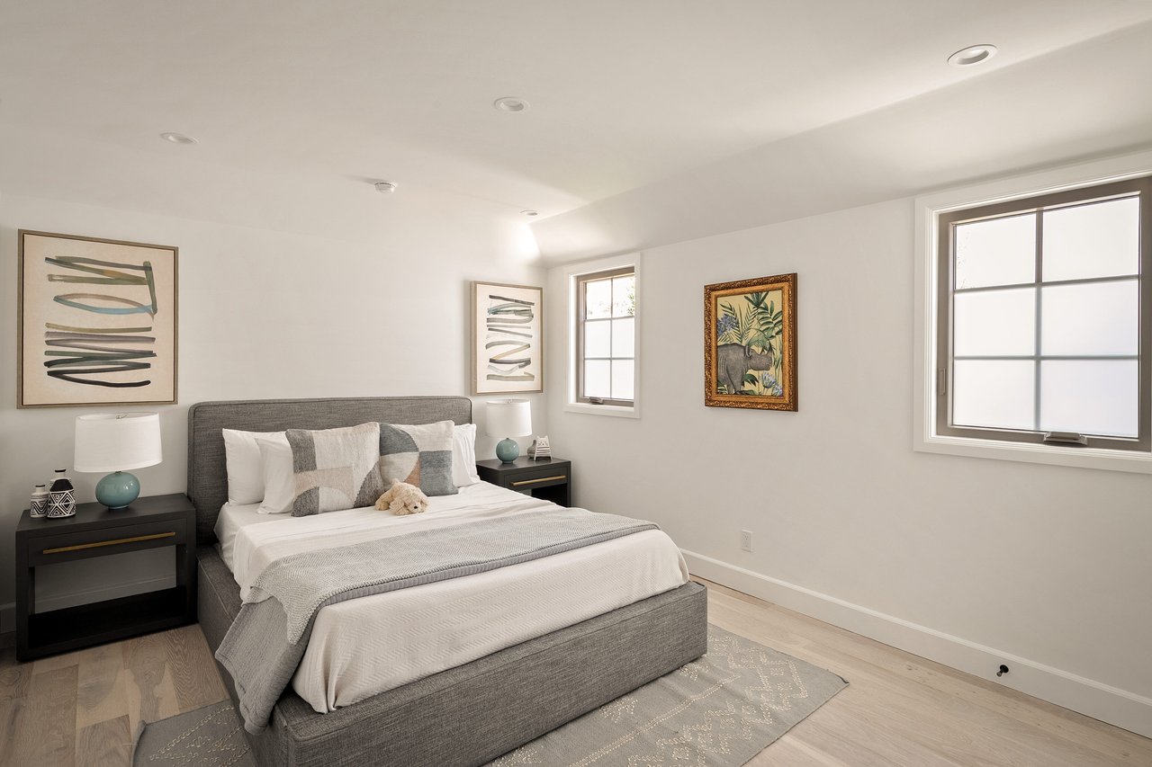 Completely transformed in 2025, this Westwood residence has been rebuilt as a turnkey sanctuary of light, style, and sophistication. Inside, a flowing open layout is framed by large windows, beamed ceilings, and white oak floors that infuse every space with warmth and airiness. The living room centers around a gas fireplace and opens effortlessly to the backyard through expansive sliding glass doors, creating the ideal setting for indoor/outdoor living. The adjoining kitchen is both beautiful and functional, with white shaker cabinetry, stone countertops, a generous seated island, and a walk-in pantry. Premium Viking appliances add convenience for the avid cook or entertainer, while the window-lined dining area offers a sunlit setting for casual meals or lively gatherings. The serene primary suite provides a private retreat with a walk-in closet and a spa-like bathroom featuring dual vanities and a glass-enclosed shower adorned with designer tile. Down the hall are three additional bedrooms, one suited as a home office, and two stylish bathrooms. Outside, the fully fenced backyard invites long afternoons in the California sunshine. Dine al fresco on the brick patio, unwind on the lawn, and enjoy the ease of a custom home that’s been thoughtfully crafted for modern living. With a new pull-through driveway, dedicated laundry area, and all-new systems and finishes, every detail has been designed for comfort and peace of mind. Set on a desirable corner lot just moments from Brentwood Village, The Getty, and the boutiques and dining along San Vicente Boulevard, this home captures the essence of refined Westside living.