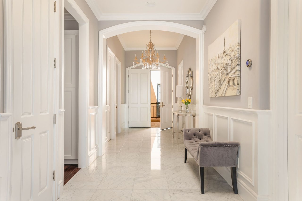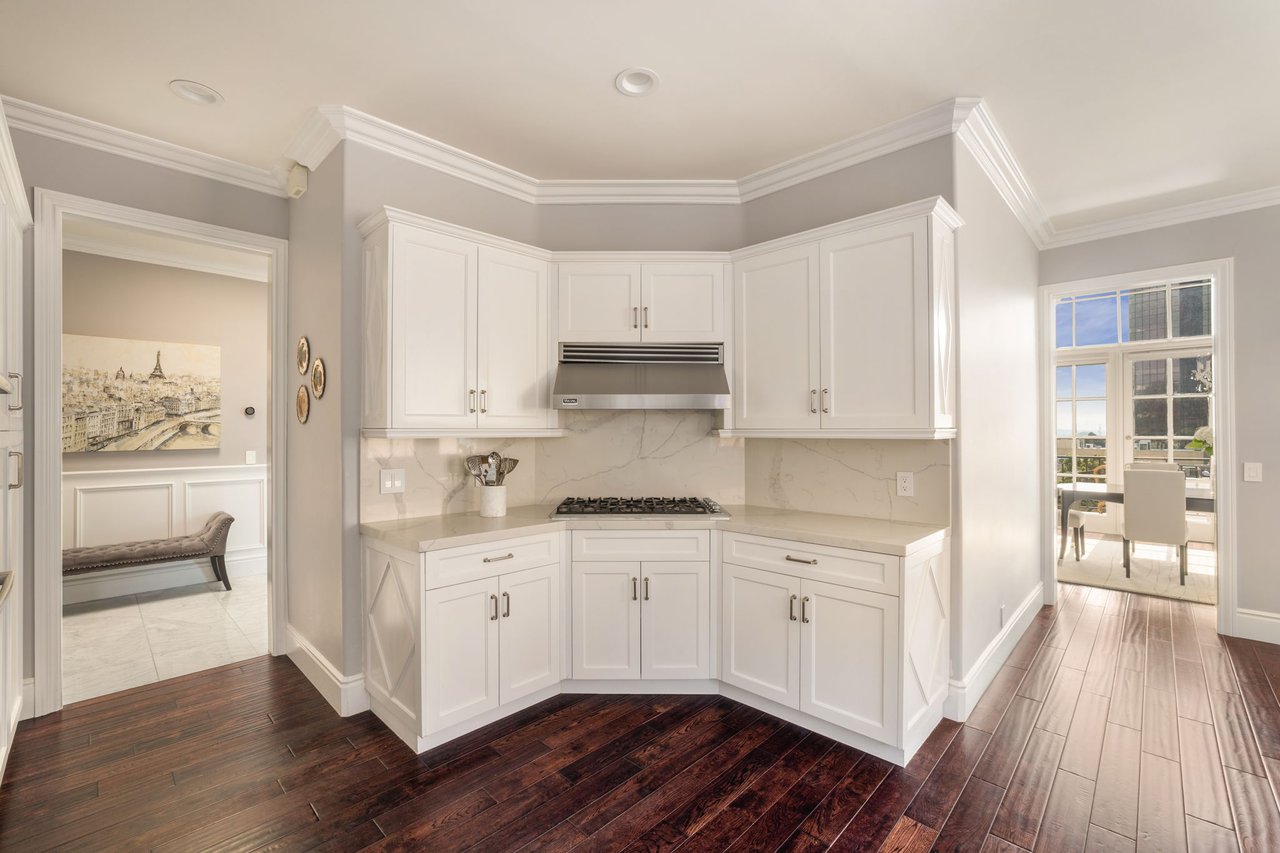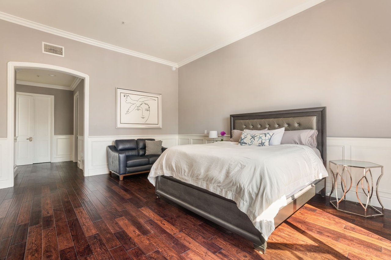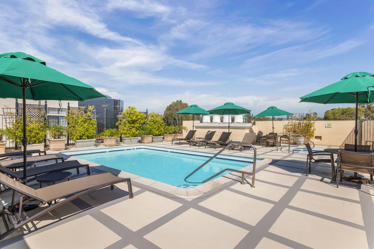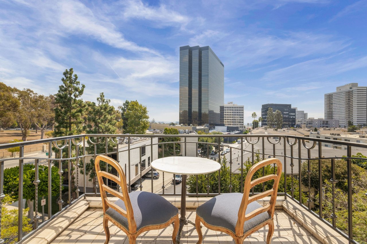 Perched on the penthouse level of Brentwood's premier full-service community, this exquisite corner residence redefines luxury living with unparalleled privacy—no shared walls—and sweeping city views. Soaring high ceilings and expansive windows fill the home with radiant natural light, while every detail has been meticulously remodeled with top-of-the-line finishes, from the upgraded kitchen and primary bathroom to the elegant wood wainscoting, crown molding, and archways and sleek new flooring throughout. A marble-tiled foyer with skylight and double doors sets a grand first impression, leading into the open-concept living and dining room featuring two private balconies, a decorative fireplace, and a wet bar ideal for entertaining. The gourmet kitchen is a dream, outfitted with stone countertops, custom pantry storage, a sunlit breakfast nook, and premium Subzero, Viking, and Bosch appliances, including double ovens, a gas range, and a wine refrigerator. The grand primary suite is a personal sanctuary, offering high ceilings, its own balcony, a custom walk-in closet, and a spa-inspired ensuite clad in marble with heated floors, a ThermaSol steam shower, and jetted soaking tub. A spacious secondary bedroom with ensuite bath provides comfort and privacy for guests, while the laundry room with sink and storage adds everyday convenience. Additional upgrades include the new AC unit and SubZero refrigerator. This home includes three parking spaces in the secure garage plus two additional storage lockers. Residents of this coveted community enjoy unrivaled amenities including a doorman, concierge, valet parking, rooftop pool, spa and sundeck, fitness center, banquet hall, and more. Supremely located in the heart of Brentwood, moments from upscale dining, boutique shopping, and the Brentwood Country Club—and just a short drive to the beach—this penthouse residence offers the ultimate blend of sophistication, comfort, and convenience.