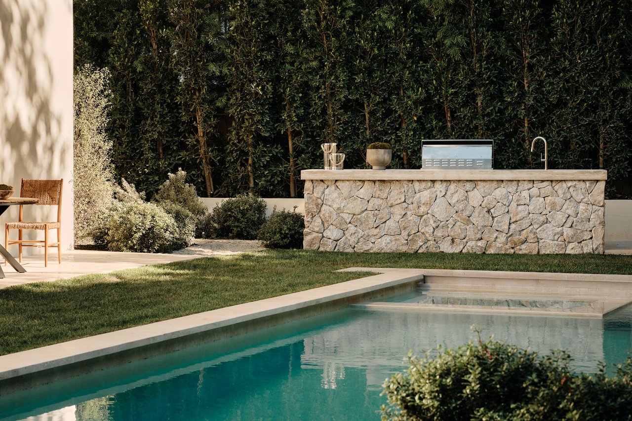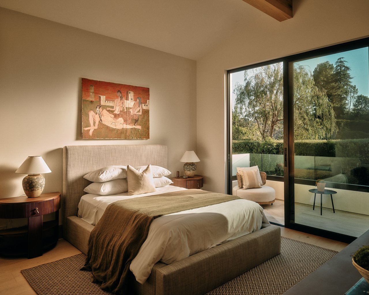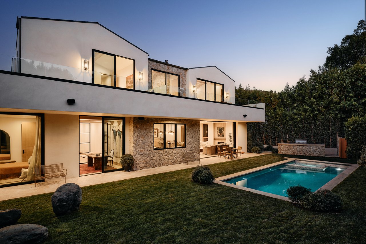 JVE Development Group and Jae Omar present Villa Antica, a newly built architectural residence in Brentwood, designed to evoke the feeling that it has stood gracefully in place for generations. Rooted in classical European influence and realized through a contemporary lens, the home is defined by natural materials, measured lines, and artisan craftsmanship. Offering an uncommon sense of privacy and scale, the residence spans five-bedrooms, six-bathrooms, and sits on a generous 9,618-square-foot parcel. A dramatic double-height entry sets the tone, unfolding into a series of thoughtfully composed living spaces crafted for both daily life and elevated entertaining. Interiors are filled with warm natural light and layered with textured woods, rough-hewn stone, and bespoke millwork. Reclaimed beams over 200 years old bring authenticity and depth, while leathered travertine and brass detailing reinforce a tactile richness. Sculptural lighting design creates a curated ambiance in the expansive great room, which flows effortlessly to the lush backyard through a wall of disappearing glass. At the heart of the home, the kitchen draws inspiration from the French countryside, blending beauty and utility with premium built-in appliances, a substantial center island, oak cabinetry, and a walk-in pantry. The kitchen opens to a sophisticated family room set around a floor-to-ceiling fireplace, while the adjacent dining room is complemented by a custom wet bar. Additional amenities include a glass-enclosed executive office, an immersive home theater, and a distinctive powder room featuring a 1920s French marble sink—subtly reinforcing the home's collected, old-world narrative. Ascend the floating staircase to the primary suite with a private terrace overlooking the manicured grounds. Vaulted ceilings and a two-way stone fireplace frame this serene retreat that includes a wet bar, boutique dressing room, and luxurious bath. Four additional en-suite bedrooms, with one on the main level, complete the home. Fully integrated Control4 Home Automation System, surround sound, and security cameras facilitate contemporary connectivity and functionality while remaining discreetly in the background. Meticulous landscaping design by Double Green Landscapes extends the home's sense of permanence outdoors while providing privacy, ample space for gathering, and seamless incorporation of resort-like amenities. The tranquil backyard setting is secluded by mature hedging and features a pool and spa with automatic cover, a fully equipped outdoor kitchen, firepit, and multiple areas to lounge or dine alfresco. Ideally located in Brentwood, Villa Antica is a rare architectural offering where old-world influence and modern design converge in a home that feels both new and enduring.