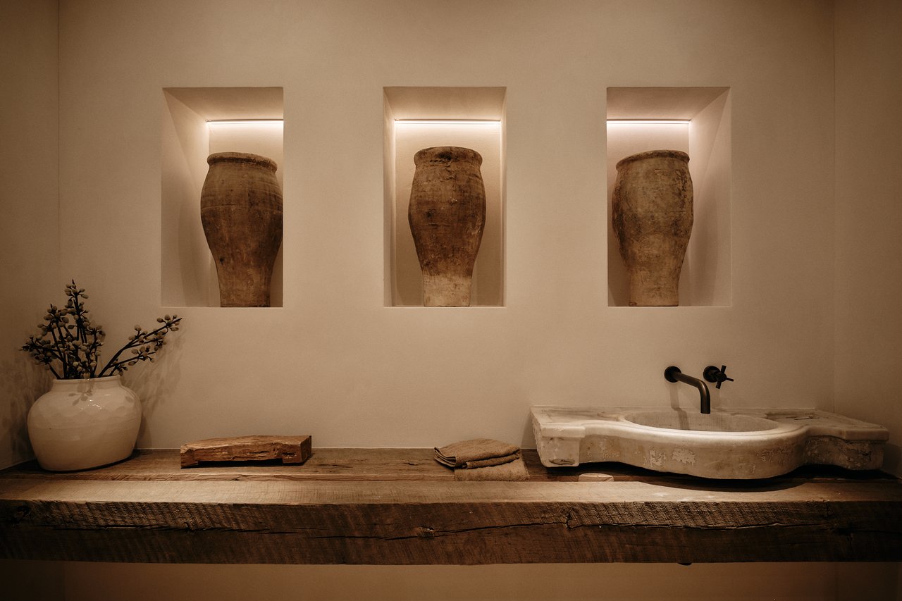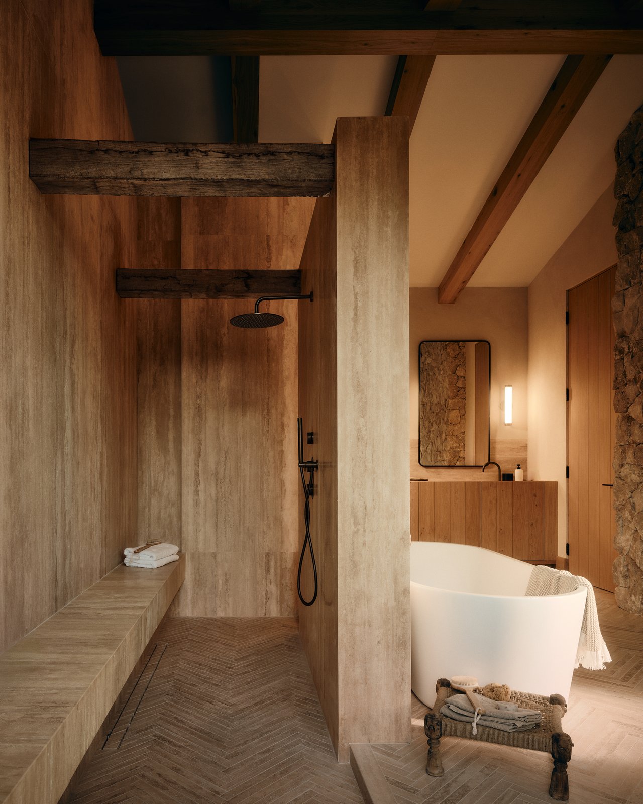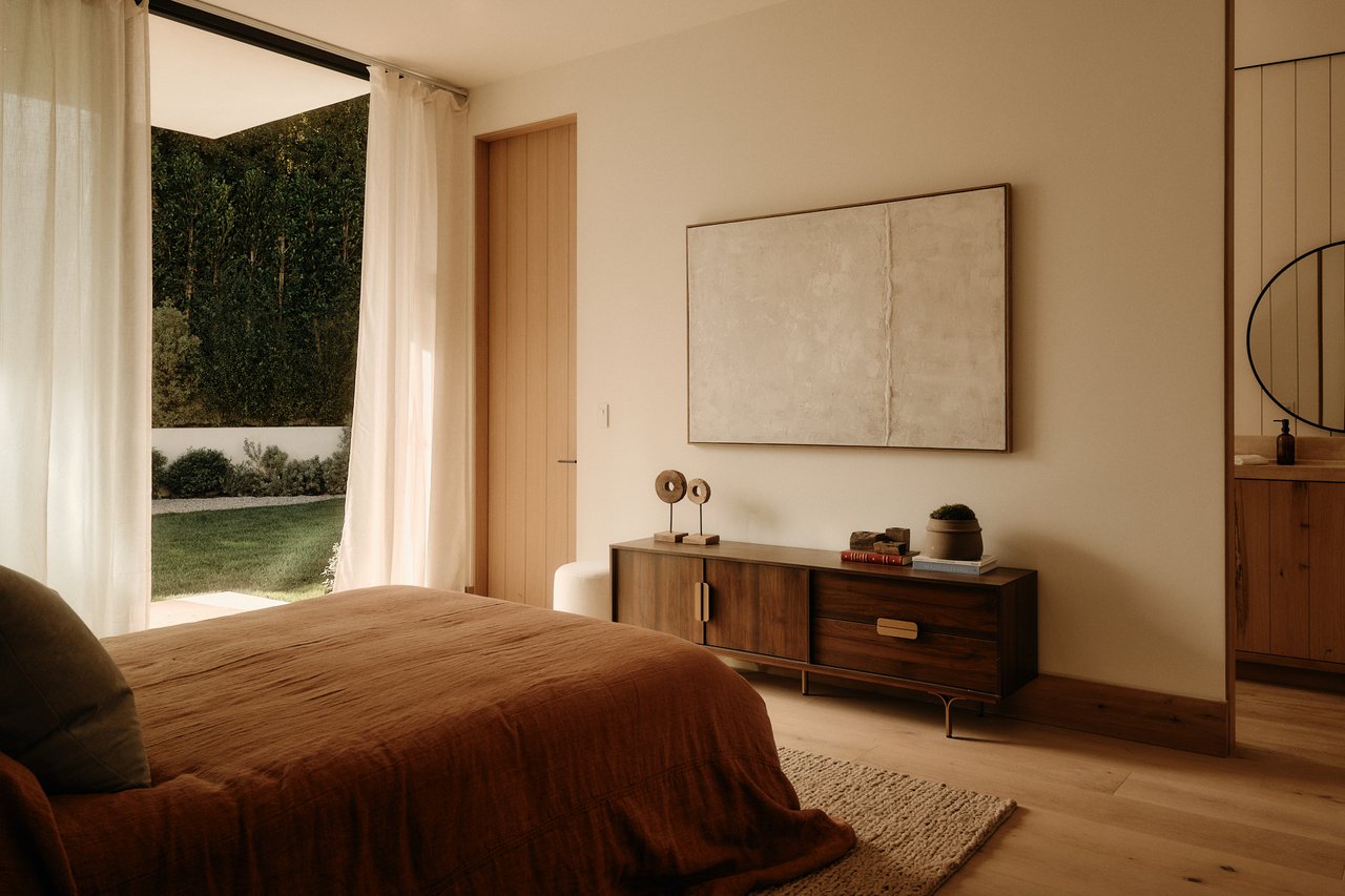 JVE Development Group and Jae Omar present Villa Antica, a newly built architectural residence in Brentwood, designed to evoke the feeling that it has stood gracefully in place for generations. Rooted in classical European influence and realized through a contemporary lens, the home is defined by natural materials, measured lines, and artisan craftsmanship. Offering an uncommon sense of privacy and scale, the residence spans five-bedrooms, six-bathrooms, and sits on a generous 9,618-square-foot parcel. A dramatic double-height entry sets the tone, unfolding into a series of thoughtfully composed living spaces crafted for both daily life and elevated entertaining. Interiors are filled with warm natural light and layered with textured woods, rough-hewn stone, and bespoke millwork. Reclaimed beams over 200 years old bring authenticity and depth, while leathered travertine and brass detailing reinforce a tactile richness. Sculptural lighting design creates a curated ambiance in the expansive great room, which flows effortlessly to the lush backyard through a wall of disappearing glass. At the heart of the home, the kitchen draws inspiration from the French countryside, blending beauty and utility with premium built-in appliances, a substantial center island, oak cabinetry, and a walk-in pantry. The kitchen opens to a sophisticated family room set around a floor-to-ceiling fireplace, while the adjacent dining room is complemented by a custom wet bar. Additional amenities include a glass-enclosed executive office, an immersive home theater, and a distinctive powder room featuring a 1920s French marble sink—subtly reinforcing the home's collected, old-world narrative. Ascend the floating staircase to the primary suite with a private terrace overlooking the manicured grounds. Vaulted ceilings and a two-way stone fireplace frame this serene retreat that includes a wet bar, boutique dressing room, and luxurious bath. Four additional en-suite bedrooms, with one on the main level, complete the home. Fully integrated Control4 Home Automation System, surround sound, and security cameras facilitate contemporary connectivity and functionality while remaining discreetly in the background. Meticulous landscaping design by Double Green Landscapes extends the home's sense of permanence outdoors while providing privacy, ample space for gathering, and seamless incorporation of resort-like amenities. The tranquil backyard setting is secluded by mature hedging and features a pool and spa with automatic cover, a fully equipped outdoor kitchen, firepit, and multiple areas to lounge or dine alfresco. Ideally located in Brentwood, Villa Antica is a rare architectural offering where old-world influence and modern design converge in a home that feels both new and enduring.