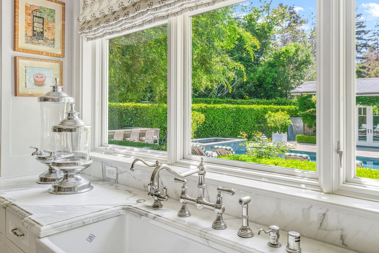 Set upon more than 2.3 acres of lush grounds in Rustic Canyon, this grand Hamptons-style estate evokes an elevated design sensibility among an ultra-secluded setting that cannot be found elsewhere in Pacific Palisades. Featuring 8,162 SF of living space among a main home, guest house and pool house, the estate is replete with sophisticated details, high-beamed ceilings, wood floors and spectacular views over the luxuriant grounds. Offering remarkable living spaces, the main home includes formal dining, two living rooms, library, media room and gourmet chef's kitchen with a marble island, all opening to an immense front porch set to rolling greenery views. The grand primary suite showcases vaulted ceilings, its own balcony, sitting room, fireplace, and two closets and spa baths. A true oasis with sprawling lawns and immaculate landscaping, the estate's picturesque outdoor setting features a mature David Austin rose garden with 100+ English roses, an impressive kitchen garden that produces seasonal vegetables, fruits and herbs, an expansive apple orchard, abundant citrus trees, bocce ball court, pool and spa with an outdoor kitchen and pool house, and guest home with its own front porch and kitchenette. A truly one-of-a-kind property in Los Angeles, this Rustic Canyon estate is the ultimate setting to realize your most legendary, secluded compound.