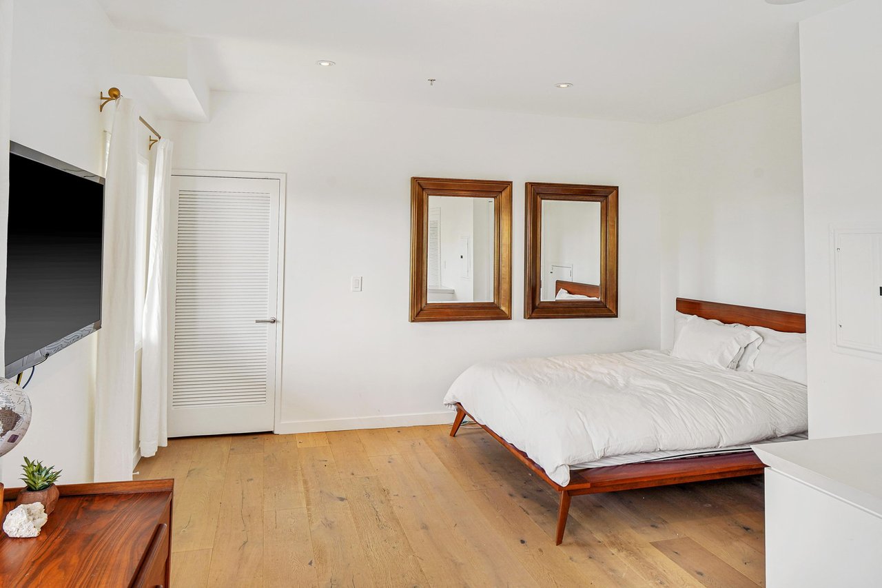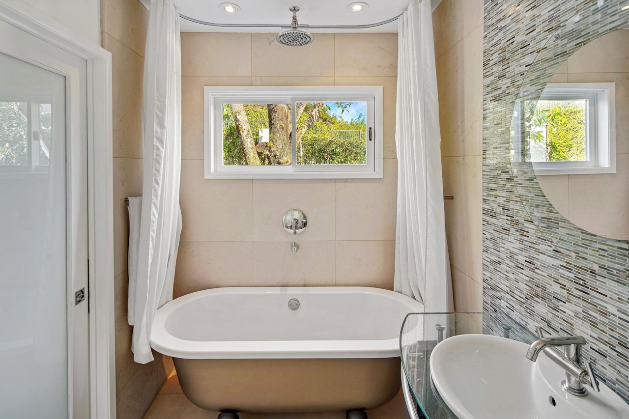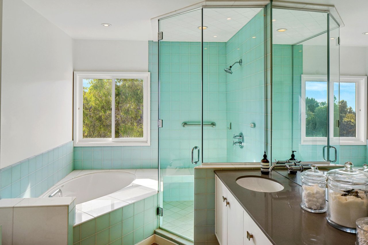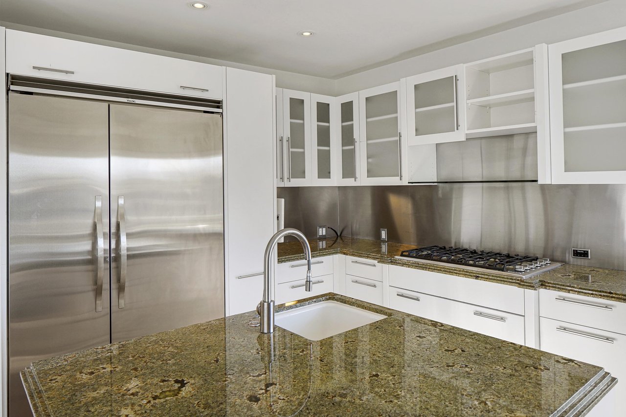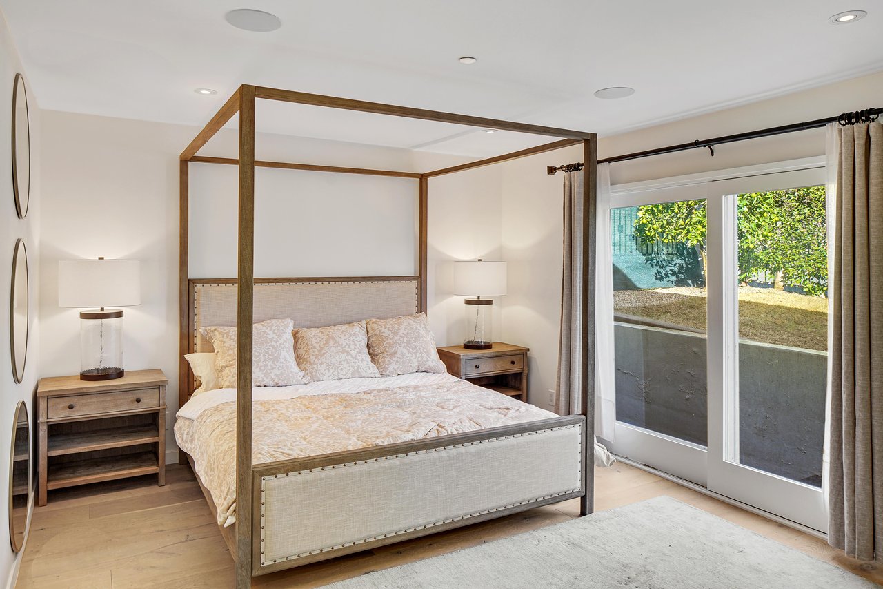 Perched on a scenic hillside in coveted Lower Beverly Hills Post Office, this beautifully renovated four-bedroom contemporary home offers breathtaking panoramic canyon, city, and ocean views just minutes from the heart of Beverly Hills. Designed to maximize natural light and indoor-outdoor living, oversized windows across multiple levels frame stunning vistas and create a bright, airy atmosphere throughout the home. The main level great room features a spacious living area with a gas fireplace and private view balcony, seamlessly flowing into a sunlit dining space and a modern chef's kitchen. The kitchen is outfitted with high-end Viking and Miele stainless steel appliances, granite countertops, and a seated center island, making it ideal for both everyday living and entertaining. The lower level offers an expansive family room with a state-of-the-art home theater system, opening directly to a large outdoor deck with a built-in jacuzzi, ideal for relaxing or hosting gatherings while enjoying the spectacular canyon and sunset views. Three bedrooms are located within the main residence, including a lower level suite with direct access to the deck and a luxurious primary suite complete with a walk-in closet and spa-inspired bathroom featuring a double vanity, soaking tub, and steam shower. A separate guest suite or private office with its own entrance, along with an additional storage room, provides flexible space for guests, work-from-home needs, or creative use. Fully remodeled with modern conveniences, the home includes smart home automation, Nest thermostats, built-in surround sound throughout, and energy-efficient solar panels. An attached two-car garage and spacious driveway present ample off-street parking, adding to the home's functionality. Ideally located just minutes from Rodeo Drive, world-class shopping, fine dining, and top Beverly Hills amenities, 1433 Summitridge Drive offers a rare combination of privacy, luxury, and sweeping views in one of Los Angeles' most desirable neighborhoods.