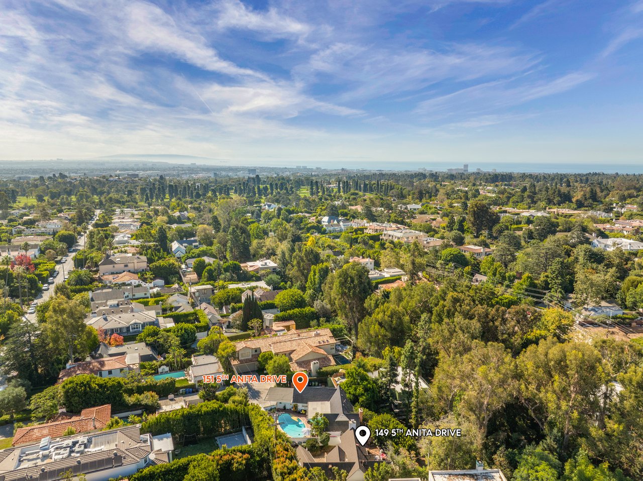 An exceptional opportunity awaits in the heart of Brentwood—two side-by-side properties positioned on a quiet cul-de-sac, offering extraordinary versatility and value. Both properties, 151 and 149 5th Anita Drive, are zoned RS-1, which may allow for 45% lot coverage plus a 20% bonus, presenting advantageous development potential. With RTI plans by Architecture West Inc., this offering provides an ideal foundation for visionaries. The properties can be developed as two brand-new luxury residences or one grand estate spanning both parcels, available individually or together, with both required to close concurrently.