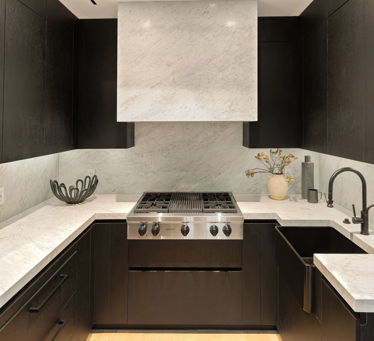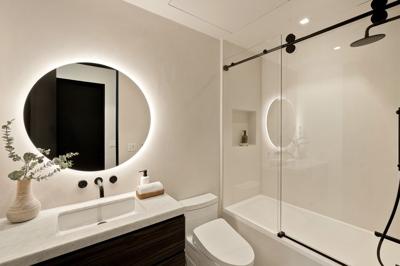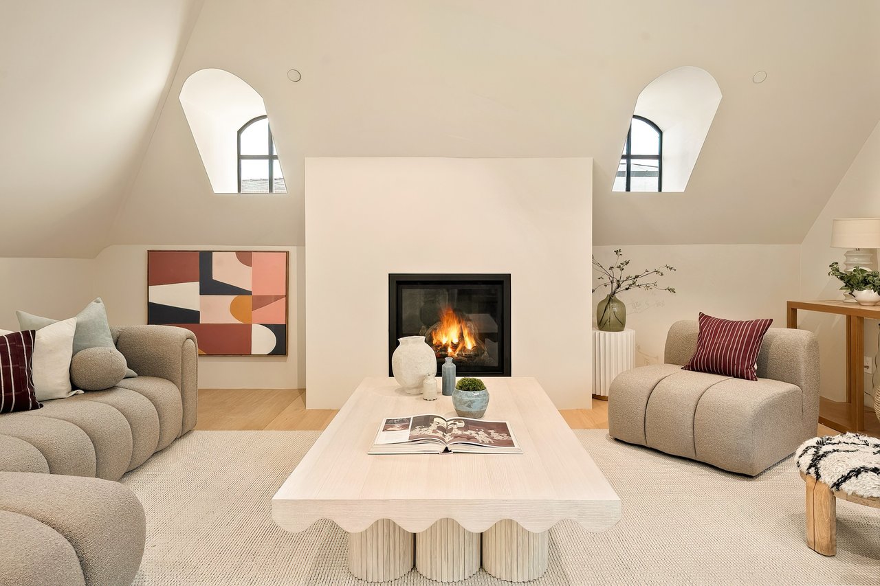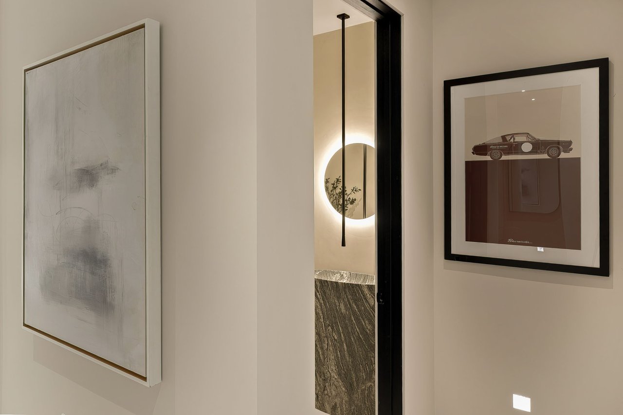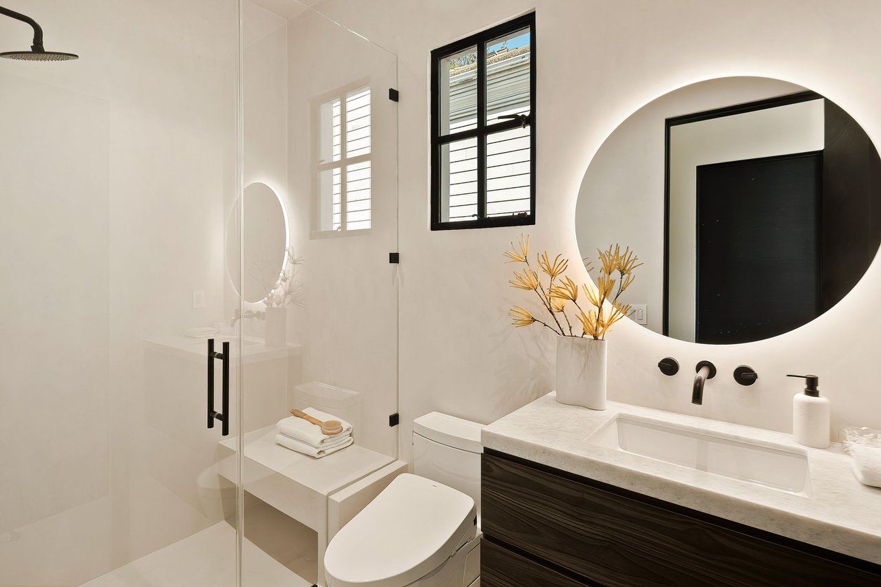 Supremely positioned north of Sunset in Brentwood, 155 North Anita Avenue is a newly constructed Modern French residence that blends timeless European influence with a refined contemporary aesthetic. Spanning 9,777 square feet with 6 bedrooms and 9 bathrooms, the home makes an immediate impression with a striking double-height entry, where a sculptural floating staircase and premium Semco flooring set a sophisticated tone. From there, expansive windows draw in natural light, illuminating warm hardwood floors that carry throughout the open-concept main level and connect a series of elegant yet inviting living spaces. Designed with both scale and flow in mind, the interiors unfold seamlessly from the formal dining room to a lounge with wet bar and into an expansive great room that opens directly to a heated loggia. The chef-inspired kitchen balances form and function with imported marble countertops, contrasting Pedini cabinetry, and a generous seated island. A discreet butler's pantry enhances usability, while a suite of premium appliances, including a Wolf double-oven range, dual Miele dishwashers, and Sub-Zero refrigeration, supports both everyday living and elevated entertaining. Just beyond, the resort-like backyard is framed by mature hedging, offering a tranquil setting with a pool and spa, turf lawn, and multiple areas for lounging and dining al fresco. Throughout the home, integrated systems provide modern convenience, including an elevator, Crestron home automation, Lutron lighting, surround sound, 10-zone climate control, heated bathroom floors, and a solar system. Upstairs, a relaxed atmosphere unfolds with a comfortable family room opening to the rooftop deck that captures panoramic views across the Westside. Four en suite bedrooms are also located on this level, including the primary suite, which is designed as a private retreat with direct access to a private terrace, an expansive walk-in closet, and a spa-like bathroom featuring a dual steam shower, soaking tub, and separate vanities. The lower level is dedicated to leisure and entertainment, where a spacious recreation room with a full wet bar is complemented by a temperature-controlled wine cellar and tasting room, a screening room, and a gym with infrared sauna. Two additional bedroom suites with a separate entrance provide ideal accommodations for staff or guests, supported by laundry rooms on both the upper and lower levels. A comprehensive security system with cameras, a three-car garage, and parking for up to nine vehicles complete the offering. Located just moments from Brentwood Country Club, top-rated schools, premier dining and shopping along San Vicente Blvd, and less than ten minutes from the beach, this residence offers a rare combination of privacy, scale, and access within one of the Westside's most desirable enclaves.