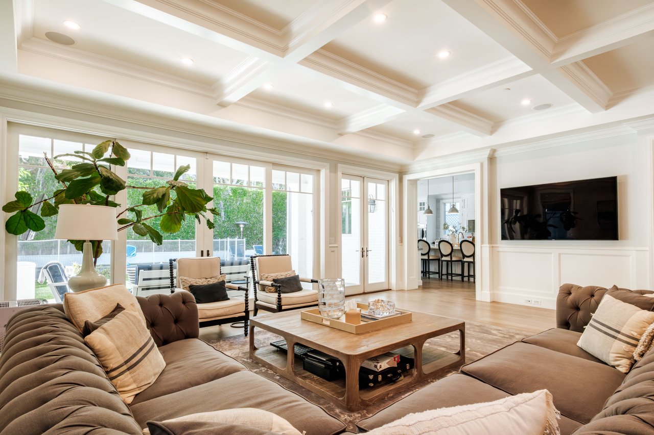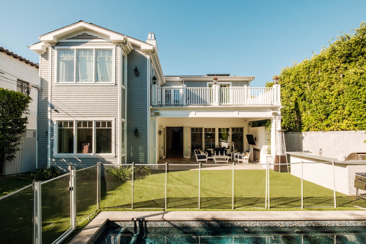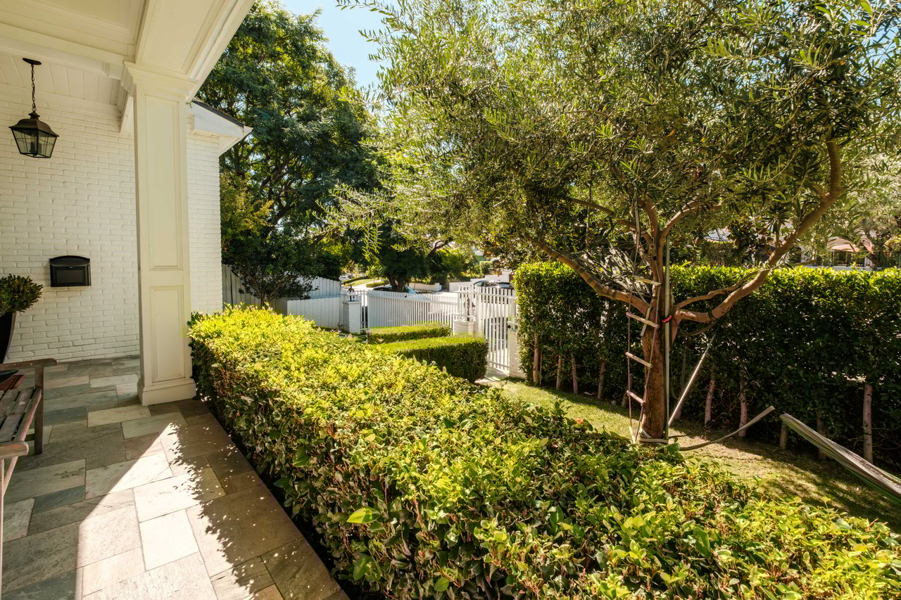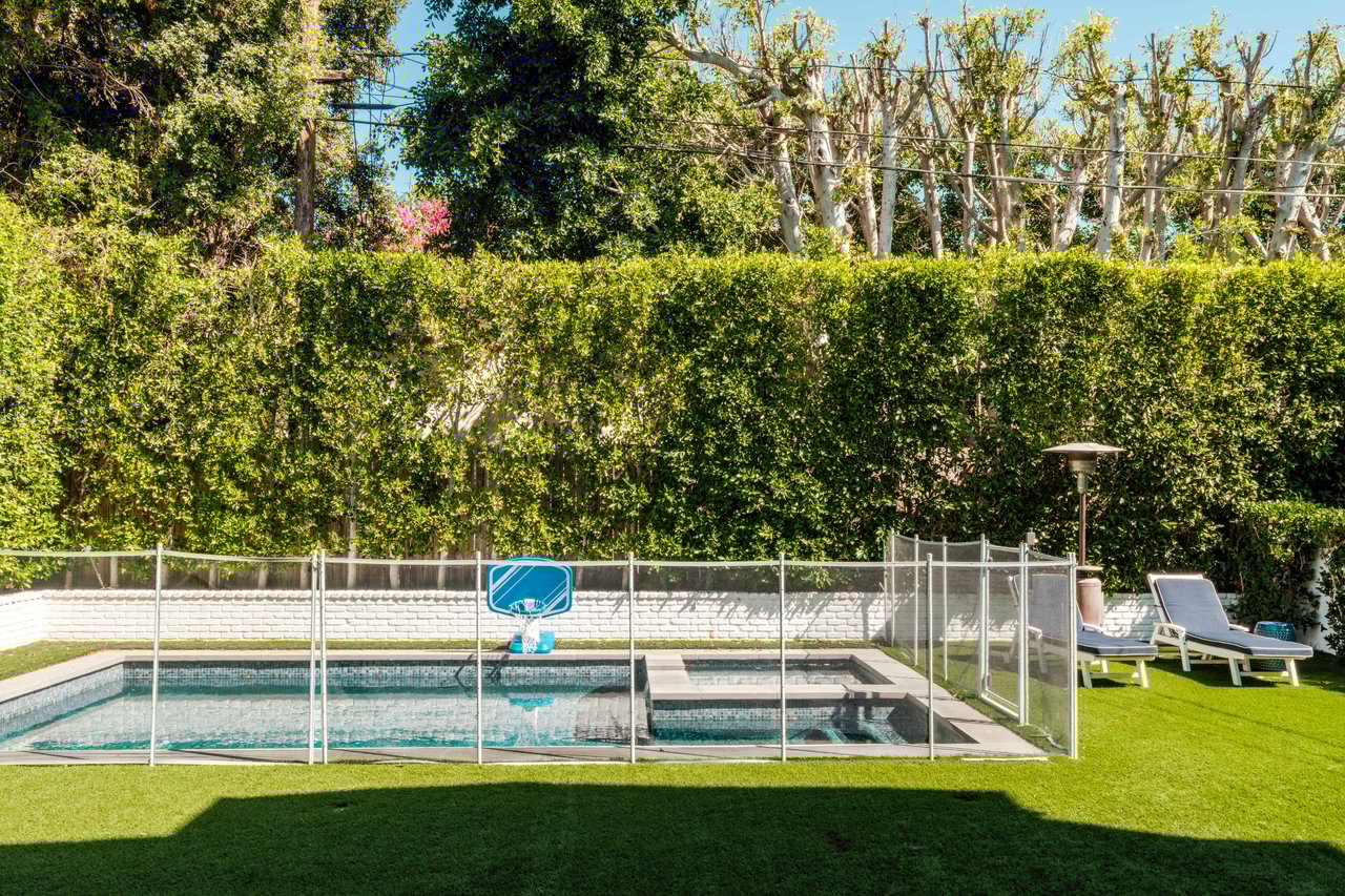 Set within one of Westwood's most coveted neighborhoods, this exquisite custom-built residence blends timeless traditional architecture with modern luxury. Spanning over 5,000 square feet, the home welcomes with warm wood floors, bespoke millwork, and coffered ceilings that exude sophistication and craftsmanship at every turn. The formal living and dining rooms provide convenient access to a wine cellar, creating an ideal space for entertaining. Just beyond, the sunlit family room opens through French doors to a covered stone patio with an exterior fireplace, for effortless indoor-outdoor living. At the heart of the home lies a gourmet chef's kitchen, adorned with striking stone countertops, a seated island, and premium appliances, including a Wolf gas range and double ovens. The space also boasts a full-sized refrigerator and freezer, abundant pantry storage, and a charming breakfast banquette overlooking the backyard. Ascend the curved stairway to the expansive primary suite. This private sanctuary impresses with vaulted ceilings, a balcony, and dual custom walk-in closets. The spa-inspired en suite bath is a serene retreat with dual vanities, dual water closets, a glass-enclosed shower, and a luxurious soaking tub. Find three additional bedroom suites upstairs, plus one conveniently located on the main level, providing flexibility for guests or use as an office. Additional amenities include a powder room on the main level, built-in surround sound, and solar panels with three Tesla batteries for sustainable living. Outside, the lush backyard is enveloped by mature hedging and features a covered patio, built-in BBQ, sparkling pool and spa, and a spacious lawn for relaxation or play. Secured behind an automatic driveway gate is an attached two-car garage with newly epoxied floors and direct access. Ideally situated just moments from top-rated schools, Holmby Park, Westfield Century City, and Westwood Village, this remarkable home offers timeless sophistication, comfort, and convenience for the very best of Westside living.