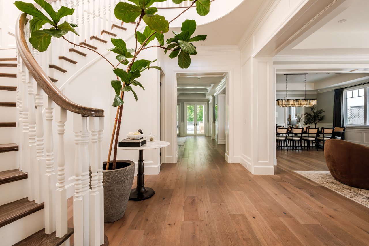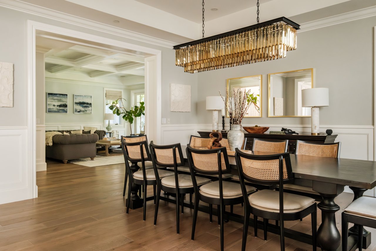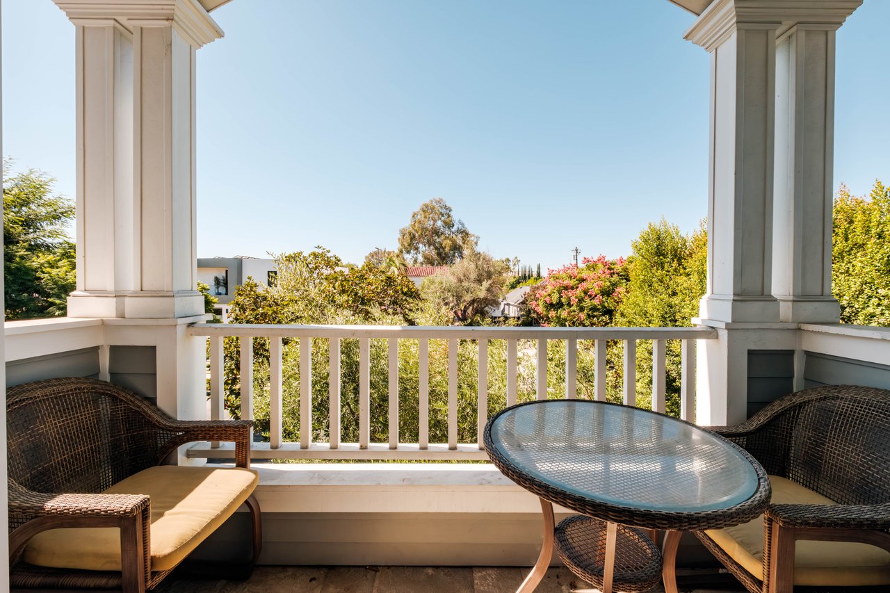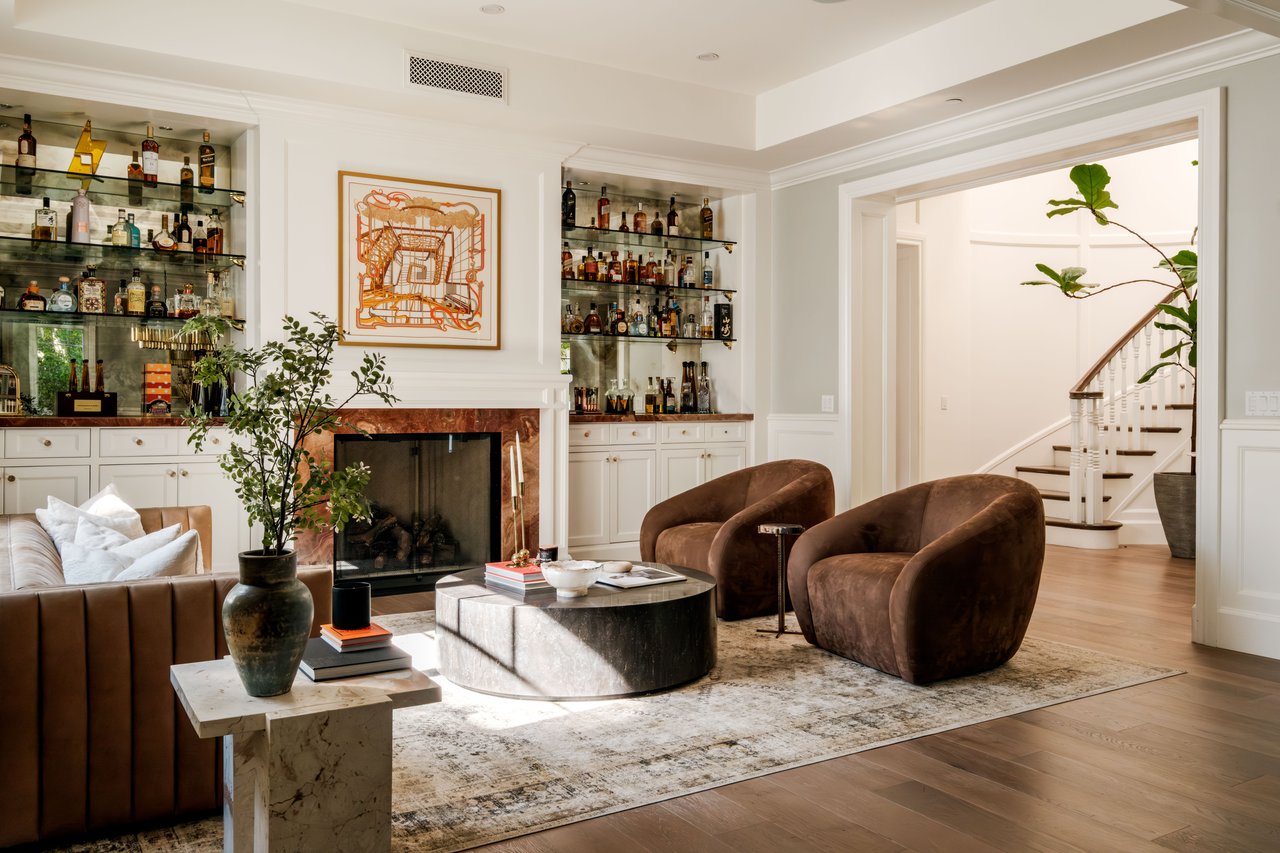 Set within one of Westwood's most coveted neighborhoods, this exquisite custom-built residence blends timeless traditional architecture with modern luxury. Spanning over 5,000 square feet, the home welcomes with warm wood floors, bespoke millwork, and coffered ceilings that exude sophistication and craftsmanship at every turn. The formal living and dining rooms provide convenient access to a wine cellar, creating an ideal space for entertaining. Just beyond, the sunlit family room opens through French doors to a covered stone patio with an exterior fireplace, for effortless indoor-outdoor living. At the heart of the home lies a gourmet chef's kitchen, adorned with striking stone countertops, a seated island, and premium appliances, including a Wolf gas range and double ovens. The space also boasts a full-sized refrigerator and freezer, abundant pantry storage, and a charming breakfast banquette overlooking the backyard. Ascend the curved stairway to the expansive primary suite. This private sanctuary impresses with vaulted ceilings, a balcony, and dual custom walk-in closets. The spa-inspired en suite bath is a serene retreat with dual vanities, dual water closets, a glass-enclosed shower, and a luxurious soaking tub. Find three additional bedroom suites upstairs, plus one conveniently located on the main level, providing flexibility for guests or use as an office. Additional amenities include a powder room on the main level, built-in surround sound, and solar panels with three Tesla batteries for sustainable living. Outside, the lush backyard is enveloped by mature hedging and features a covered patio, built-in BBQ, sparkling pool and spa, and a spacious lawn for relaxation or play. Secured behind an automatic driveway gate is an attached two-car garage with newly epoxied floors and direct access. Ideally situated just moments from top-rated schools, Holmby Park, Westfield Century City, and Westwood Village, this remarkable home offers timeless sophistication, comfort, and convenience for the very best of Westside living.