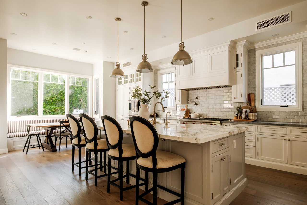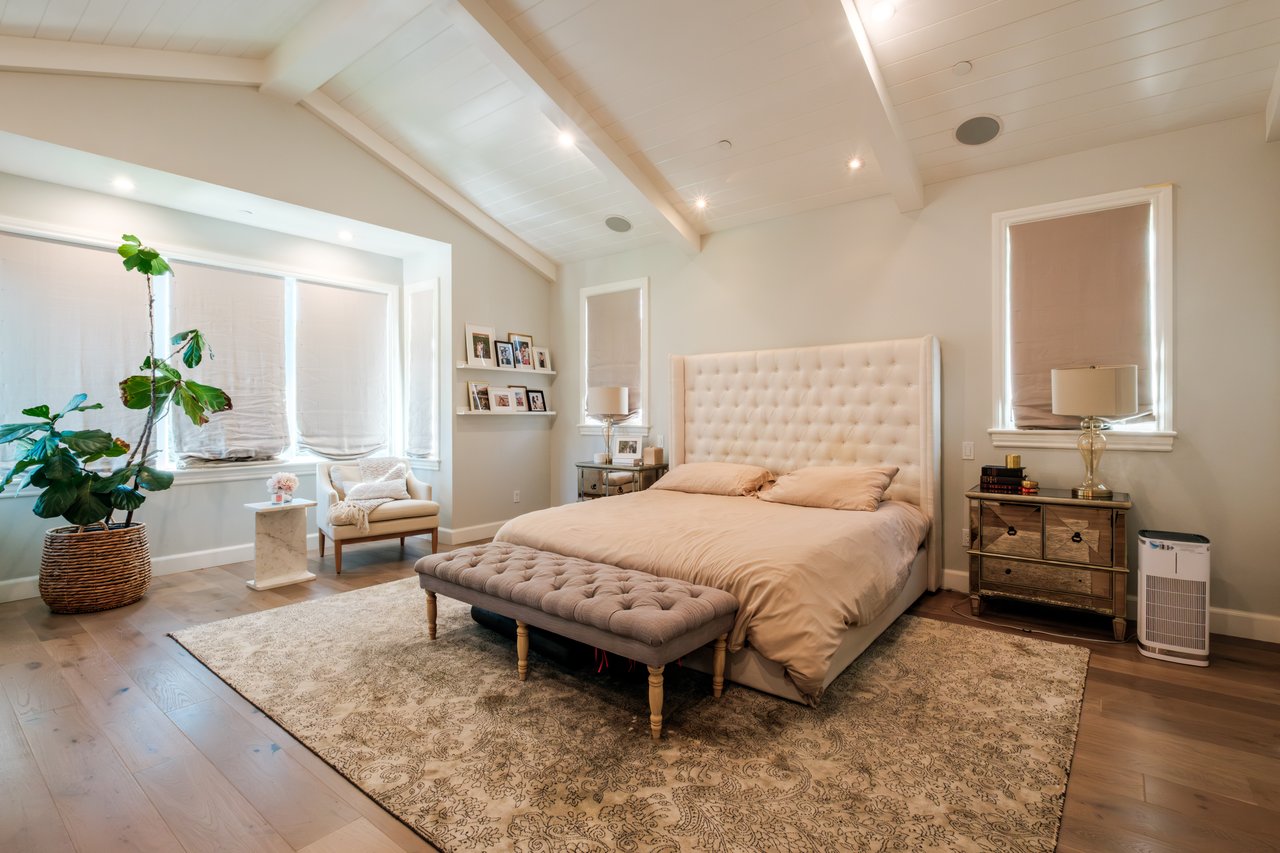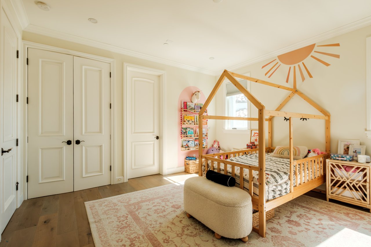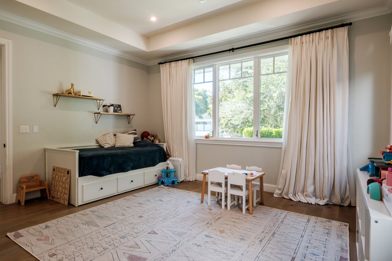 Set within one of Westwood's most coveted neighborhoods, this exquisite custom-built residence blends timeless traditional architecture with modern luxury. Spanning over 5,000 square feet, the home welcomes with warm wood floors, bespoke millwork, and coffered ceilings that exude sophistication and craftsmanship at every turn. The formal living and dining rooms provide convenient access to a wine cellar, creating an ideal space for entertaining. Just beyond, the sunlit family room opens through French doors to a covered stone patio with an exterior fireplace, for effortless indoor-outdoor living. At the heart of the home lies a gourmet chef's kitchen, adorned with striking stone countertops, a seated island, and premium appliances, including a Wolf gas range and double ovens. The space also boasts a full-sized refrigerator and freezer, abundant pantry storage, and a charming breakfast banquette overlooking the backyard. Ascend the curved stairway to the expansive primary suite. This private sanctuary impresses with vaulted ceilings, a balcony, and dual custom walk-in closets. The spa-inspired en suite bath is a serene retreat with dual vanities, dual water closets, a glass-enclosed shower, and a luxurious soaking tub. Find three additional bedroom suites upstairs, plus one conveniently located on the main level, providing flexibility for guests or use as an office. Additional amenities include a powder room on the main level, built-in surround sound, and solar panels with three Tesla batteries for sustainable living. Outside, the lush backyard is enveloped by mature hedging and features a covered patio, built-in BBQ, sparkling pool and spa, and a spacious lawn for relaxation or play. Secured behind an automatic driveway gate is an attached two-car garage with newly epoxied floors and direct access. Ideally situated just moments from top-rated schools, Holmby Park, Westfield Century City, and Westwood Village, this remarkable home offers timeless sophistication, comfort, and convenience for the very best of Westside living.