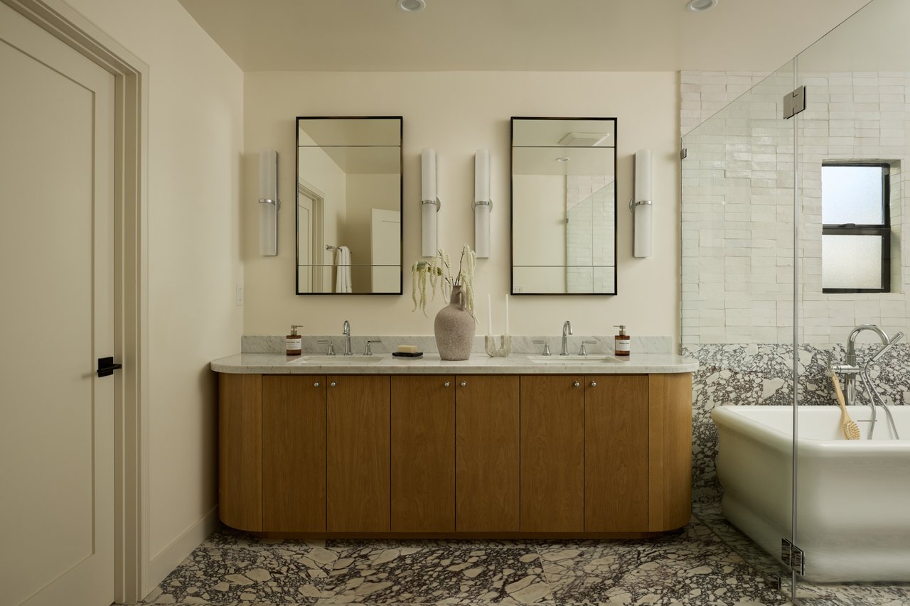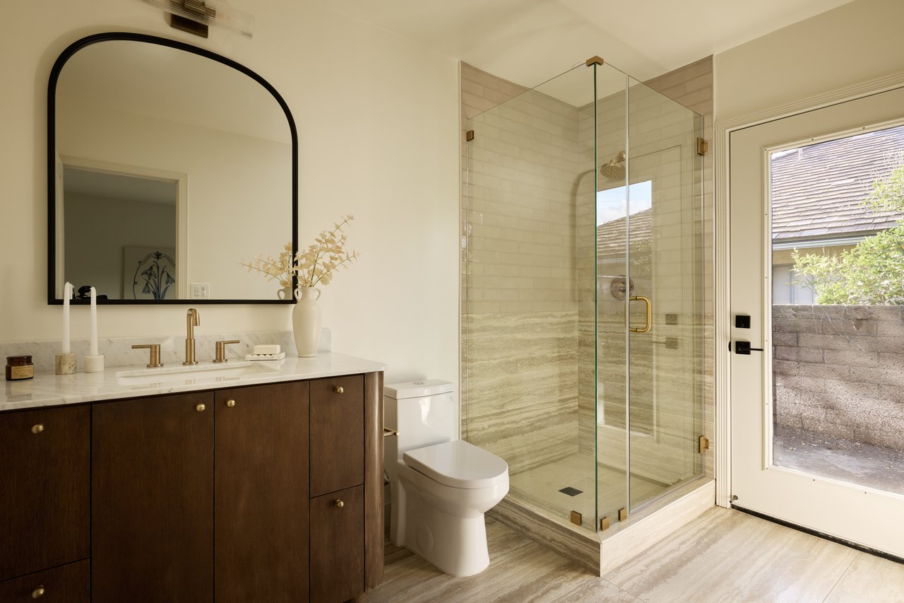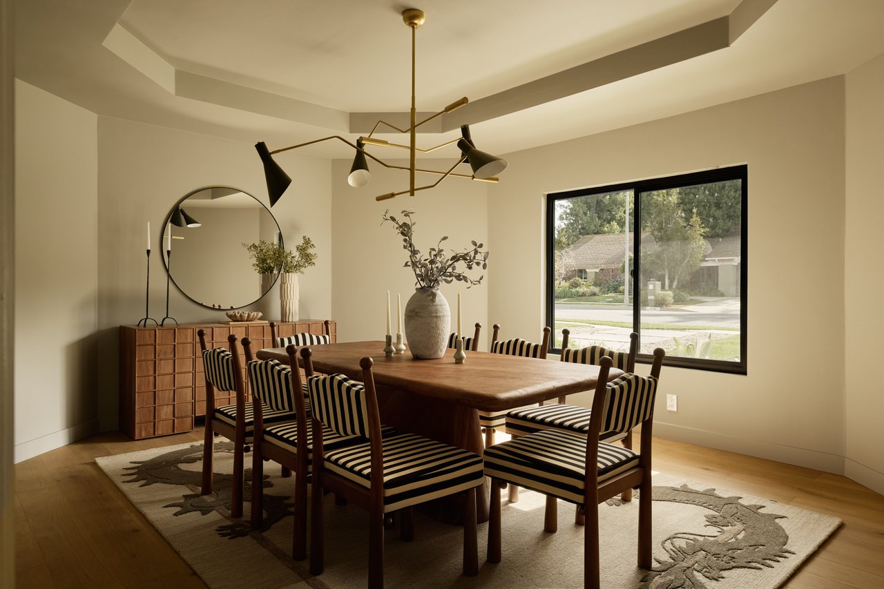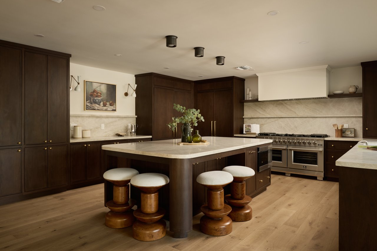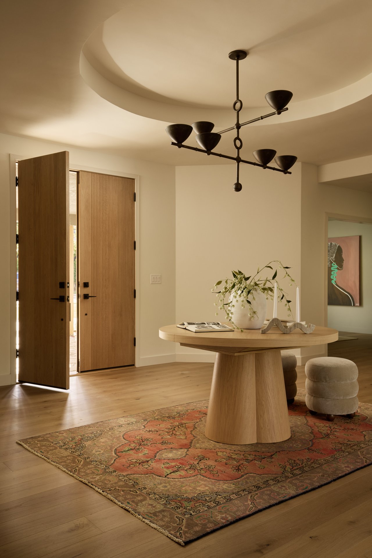 Completely reimagined for modern living by Maverick Design, this 1970s Ranch-style home in Encino blends timeless character with contemporary luxury on an expansive 17,022-square-foot lot just moments from vibrant Ventura Blvd. The single-story, 5,032-square-foot layout unfolds with effortless ease, grounded by wide-plank oak floors, designer lighting, oversized picture windows, and a refined palette of modern finishes. Enter through double doors to the dramatic entry foyer that sets the tone for the home's beautifully connected living spaces. The formal living room, accented by soaring vaulted ceilings and a built-in bar, invites stylish entertaining, while the family room's striking stone fireplace creates a relaxed gathering place that opens directly to the gourmet kitchen. Designed as the heart of the home, the kitchen is appointed with Perla Venata leathered stone countertops and backsplash, premium appliances including an oversized double-oven range, and a generous walk-in pantry. Nearby, the formal dining room provides an elegant setting for dinner parties, and an expansive recreation room, with an in-home wooden sauna and direct access to the backyard, offers a versatile space to unwind. Four spacious bedrooms are thoughtfully positioned, including a serene primary suite with dual walk-in closets, a cozy sitting area, and a stone-clad ensuite featuring a dual vanity and a glass-enclosed wet room with a shower and soaking tub. A dedicated office, gym, laundry room, and attached three-car garage meet the demands of modern living with ease. Outside, discover a true resort-style sanctuary. Multiple outdoor lounge areas wrap around a sparkling pool and spa, complemented by a detached pool bar and bathroom, mature trees, a manicured lawn, and a private sport court, creating the ultimate backdrop for both intimate gatherings and large-scale entertaining. Set in a prime Encino neighborhood near renowned restaurants, top-rated schools, parks, and the El Caballero Country Club, this meticulously renovated home offers a rare blend of sophistication, comfort, and California living at its finest.