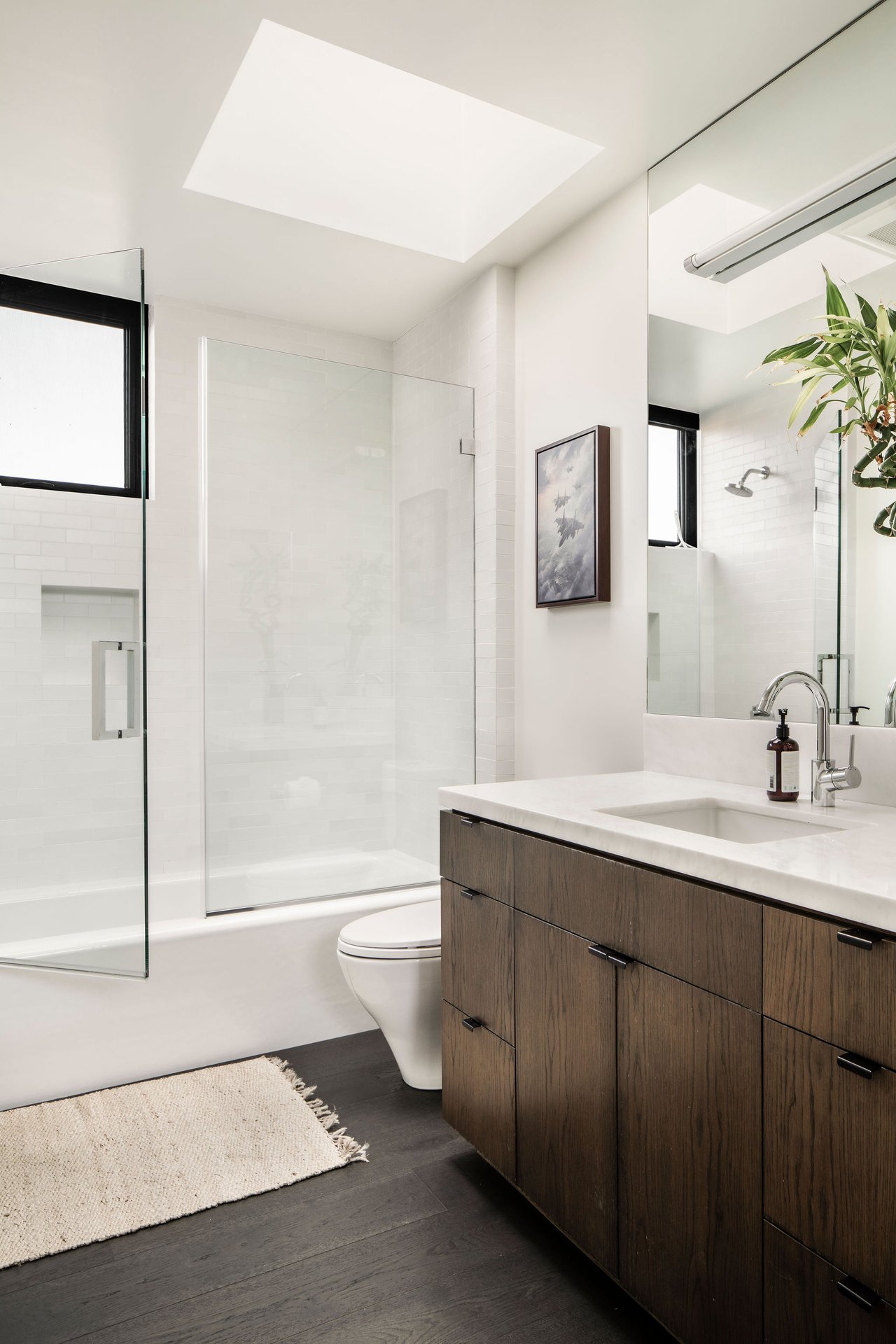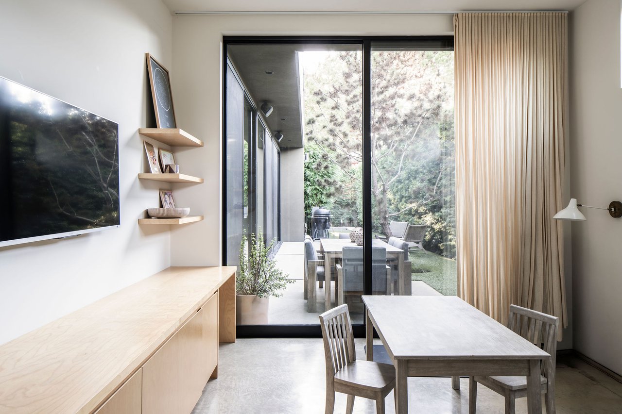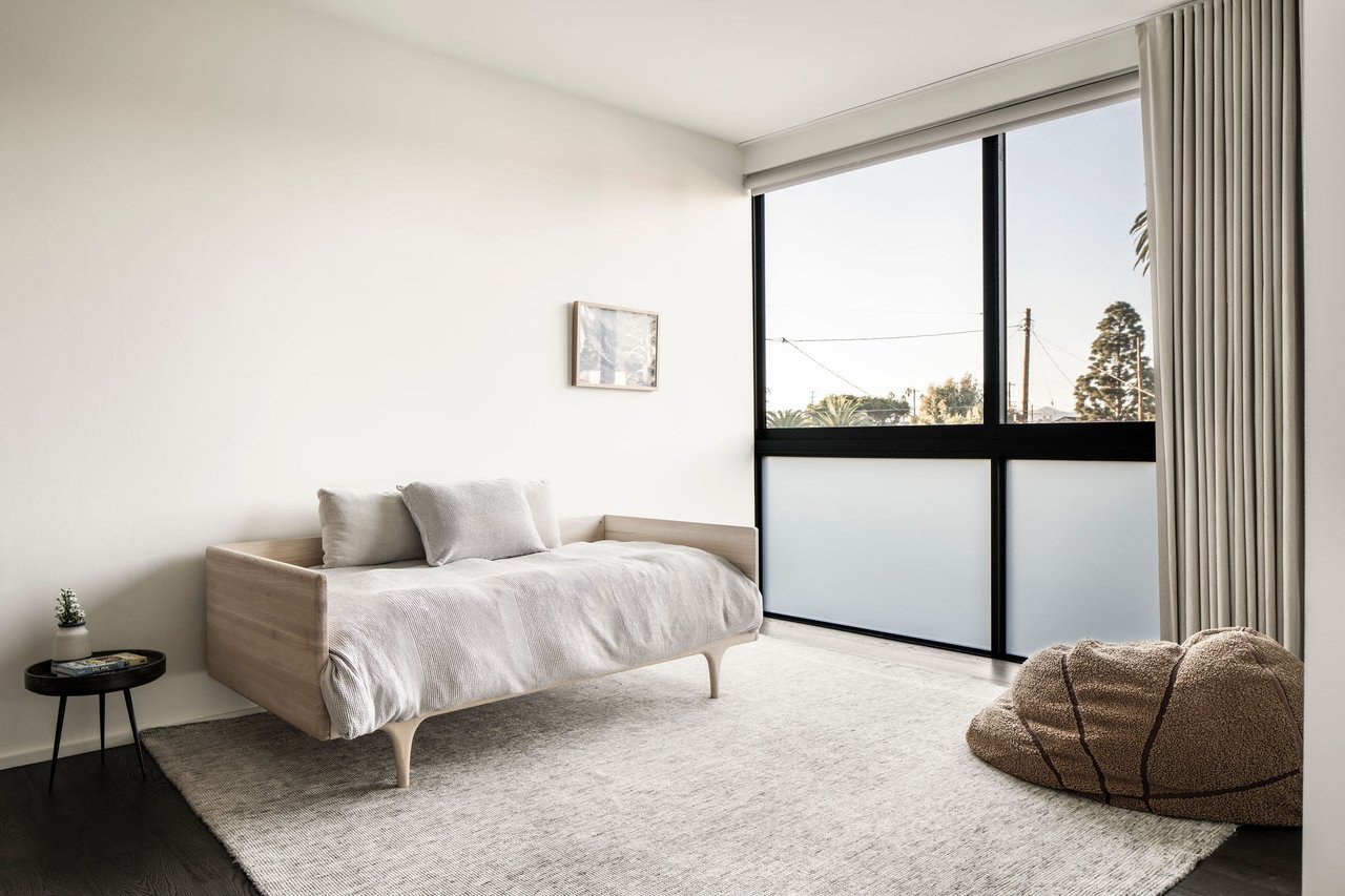 Nestled behind a veil of lush greenery, this striking residence by renowned architectural firm Marmol Radziner embodies the essence of California modernism: bold, sophisticated, and effortlessly livable. Completed in 2016, the home is a masterful interplay of refined materials, voluminous spaces, and seamless indoor-outdoor flow, offering an exceptional retreat in one of Los Angeles’ most vibrant enclaves. The minimalist charcoal facade opens to interiors reminiscent of a classic Venice artist loft–expansive, adaptable, and elegantly curated. Soaring ceilings and polished concrete floors define the main level, where a wall of sliding glass doors dissolves the boundary between the open-plan living area and the tranquil backyard oasis. The gourmet kitchen is a sculptural centerpiece, featuring solid oak cabinetry, dramatic Arabescato marble countertops, a full suite of Miele appliances, and a generous walk-in pantry equipped with a beverage refrigerator. A versatile bedroom suite on the first floor opens directly to the patio, ideal for hosting guests, establishing a home office, or cultivating creative pursuits. Upstairs, the serene primary suite features a custom oak headboard wall, dual walk-in closets, and a spa-like bath enveloped in handcrafted Heath tile. Two additional en-suite bedrooms maintain the home’s minimalist aesthetic and invite natural light and treetop vistas through expansive aluminum-framed windows. A thoughtfully positioned skylight above the stairwell imbues the space with a soft glow, enhancing the architectural harmony across both levels. Balancing clean-lined simplicity with refined luxury, this residence supports a lifestyle rooted in design, ease, and connection to nature. Located just moments from the pulse of Venice, this home enjoys close proximity to the iconic Venice Beach and boardwalk, the trendsetting boutiques and acclaimed restaurants of Abbot Kinney, and a rich tapestry of neighborhood amenities that define the Westside’s vibrant cultural fabric.