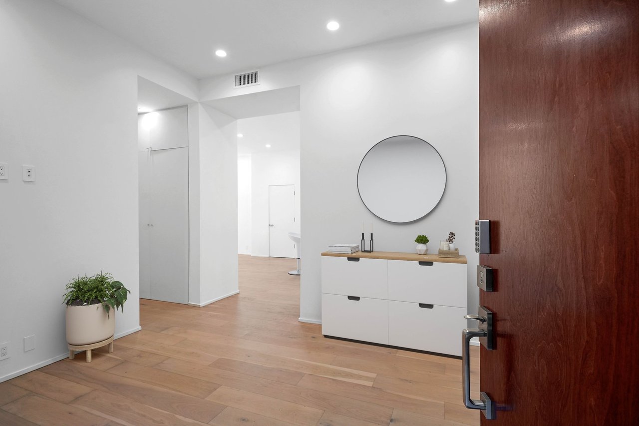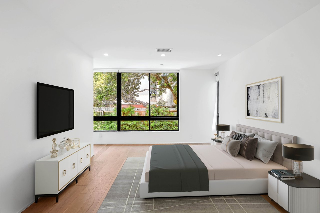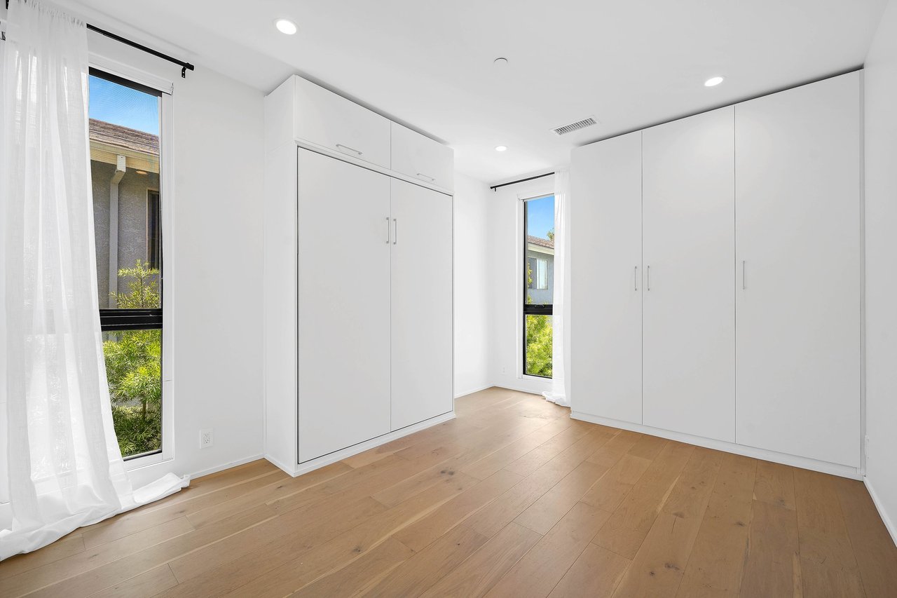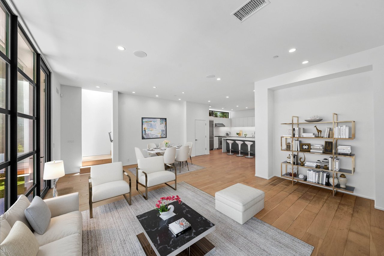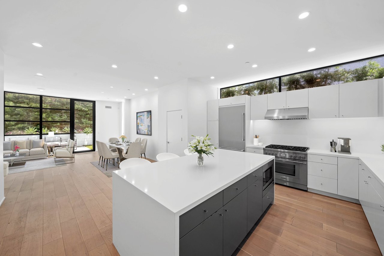Discover contemporary coastal living at its finest in the coveted Ocean Park neighborhood of Santa Monica, surrounded by popular restaurants, shopping and mere minutes from the beach. Built in 2020, this 3-bedroom, 3-bathroom residence spans 2,106 square feet of beautifully designed living space and is enhanced by smart home tech including surround sound, coded entry, solar, and EV charging. The open-concept first floor features a spacious living and dining area and a modern kitchen equipped with Thermador appliances and ample custom cabinetry. Floor-to-ceiling steel framed windows flood the home with natural light and open from the expansive great room to a private backyard, creating seamless indoor-outdoor flow. With soaring high ceilings, a sophisticated formal entry and a powder bath, the inviting main level is ideal for effortless entertaining or serene everyday living. A laundry area and all three bedrooms are located upstairs, inclusive of the spacious primary suite with a walk-in closet and a luxe bathroom with a dual sink vanity. Set behind an automatic driveway gate for security and peace of mind, the home offers covered parking for two vehicles with an EV charger. Set in a vibrant neighborhood, residents will enjoy convenient access to premier amenities along Main Street, Ocean Avenue, the 3rd Street Promenade, and incredible outdoor activities with the beach just moments away. Seize the opportunity to live the ideal coastal lifestyle at this rare, contemporary residence in a dream Santa Monica location.