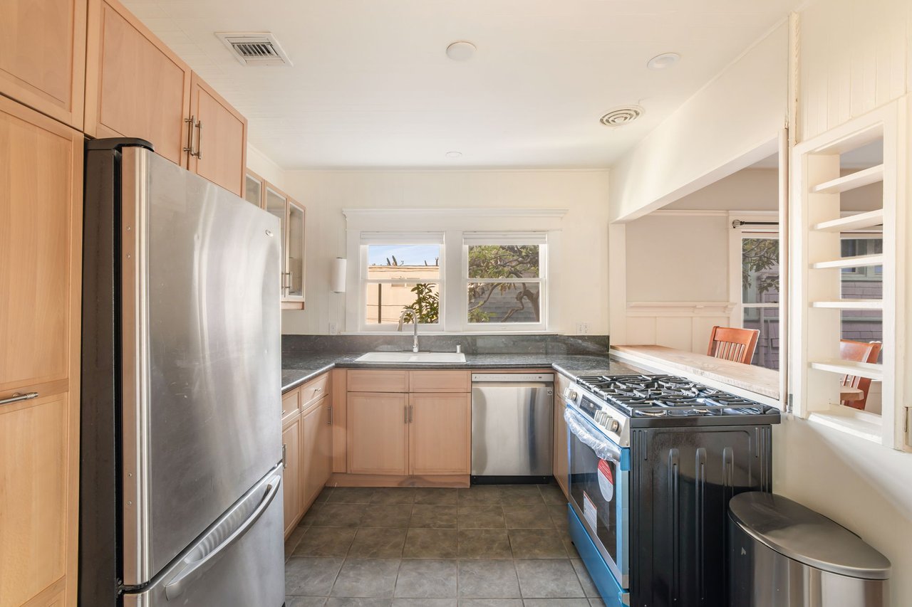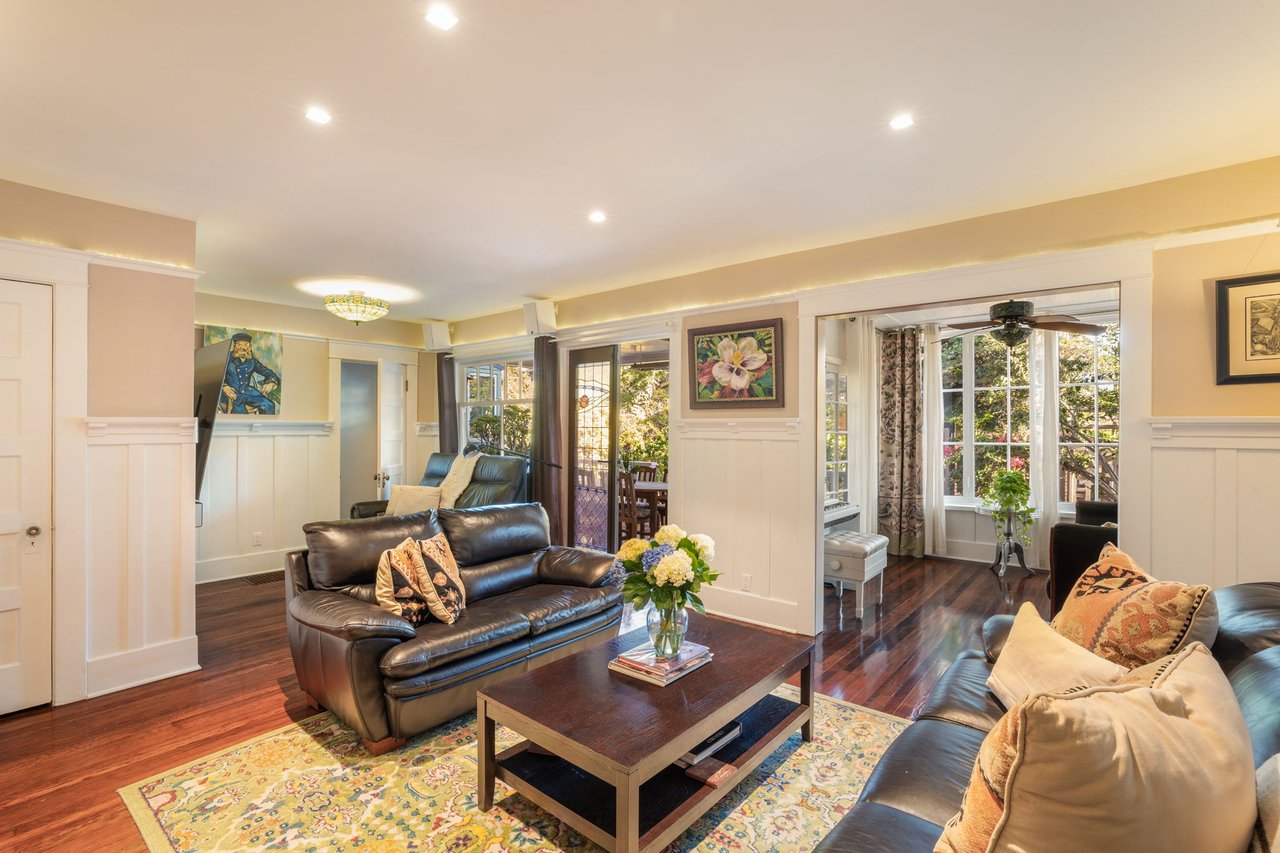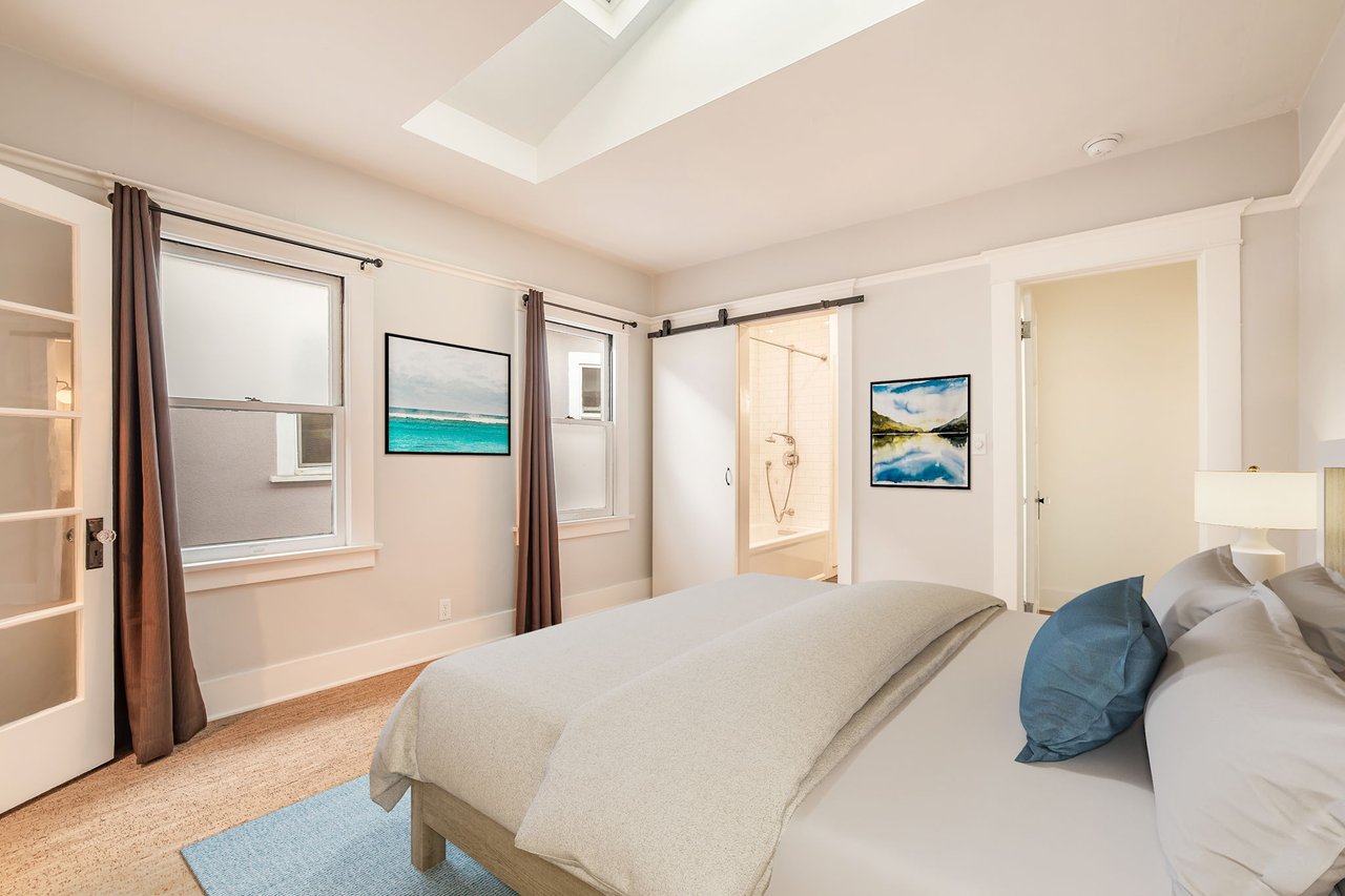 Set on a coveted Venice walk-street just moments from the sand, this timeless Craftsman-style home split into upper and lower residences captures the essence of California coastal living. Behind a lushly landscaped front yard and charming brick patio, the home welcomes you up to a breezy, heated front porch. Inside, old-growth Douglas Fir hardwood floors, artisan millwork, vintage stained glass, and bespoke built-ins exude character and craftsmanship throughout. The main-level residence unfolds into a spacious living area anchored by a brick fireplace and a luminous sunroom ideal for morning coffee or afternoon reading. The remodeled chef's kitchen pairs classic design with modern luxury--Dolce Vita Bianco quartzite countertops, custom cabinetry, an apron sink, and premium Sub-Zero and Wolf appliances--all open to an elegant dining room with an original built-in sideboard. The serene primary suite boasts generous closet space and a spa-inspired ensuite bath with luxurious heated floors, a dual vanity, and a separate shower and soaking tub lined with Green Lappia granite. Two additional bedrooms, one featuring a Murphy bed and another that would make a great office, offer flexibility to suit any lifestyle. With its own private entrance, the upper-level residence features a light-filled layout with White Oak floors, an expansive living room, sunlit dining area, dedicated office, and a fully outfitted kitchen. A private deck invites indoor-outdoor living, while three bedrooms, including a spacious primary suite with a walk-in closet, and two beautifully remodeled bathrooms with marble countertops and custom tile complete the space. The property is equipped with whole-house water filtration, an owned solar system with a Tesla battery, a washer/dryer in each unit, 220v exterior plug for EV charging, and four side-by-side parking spaces--a rare luxury in this premier beachside enclave. Supremely positioned moments from the very best of Venice, this exceptional property is less than a block from the beach, boardwalk, and iconic skatepark, and just minutes from acclaimed restaurants and the vibrant energy of Abbot Kinney, Rose Avenue, and Main Street in south Santa Monica. This remarkable home embodies California coastal living at its finest.