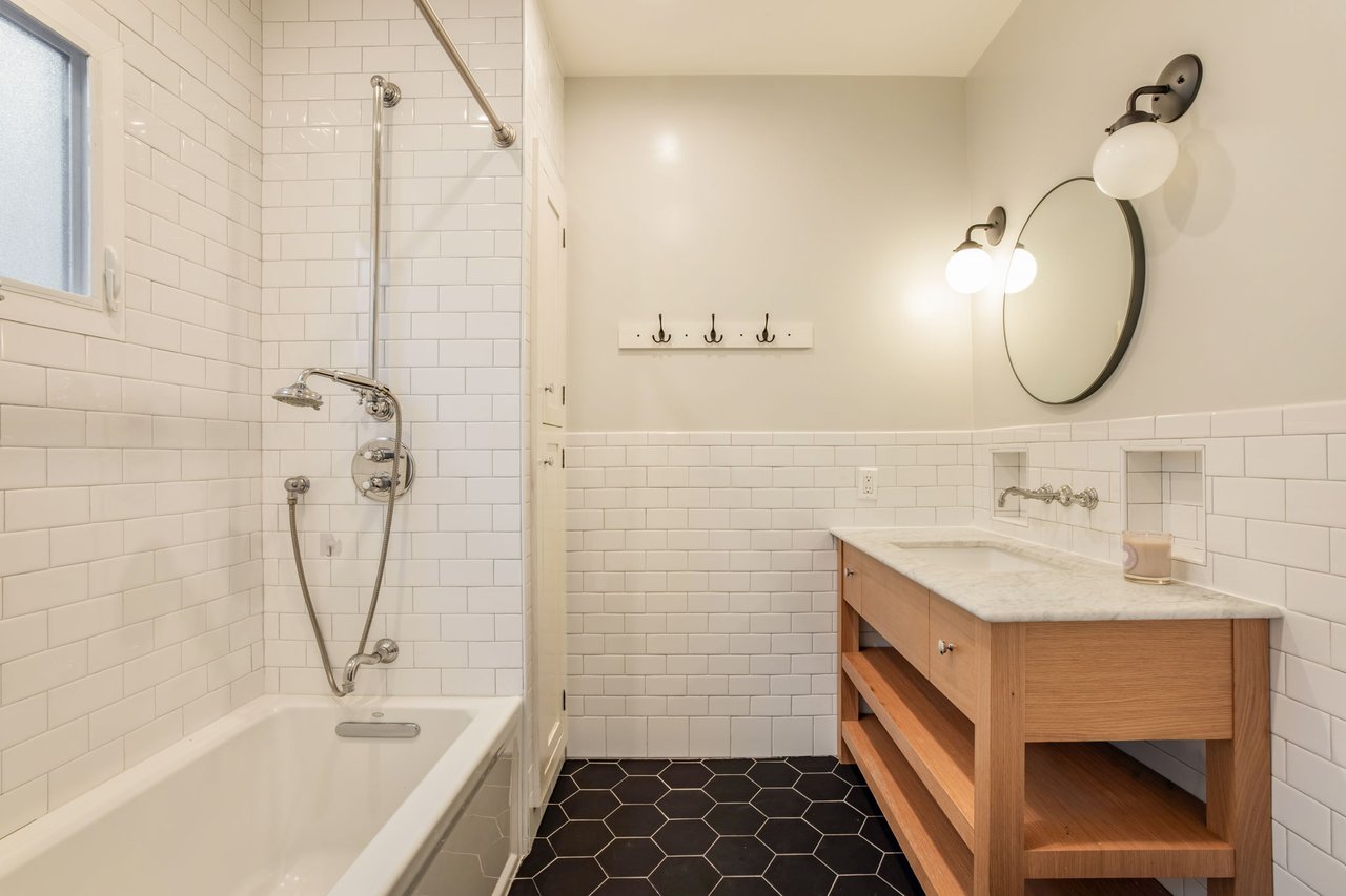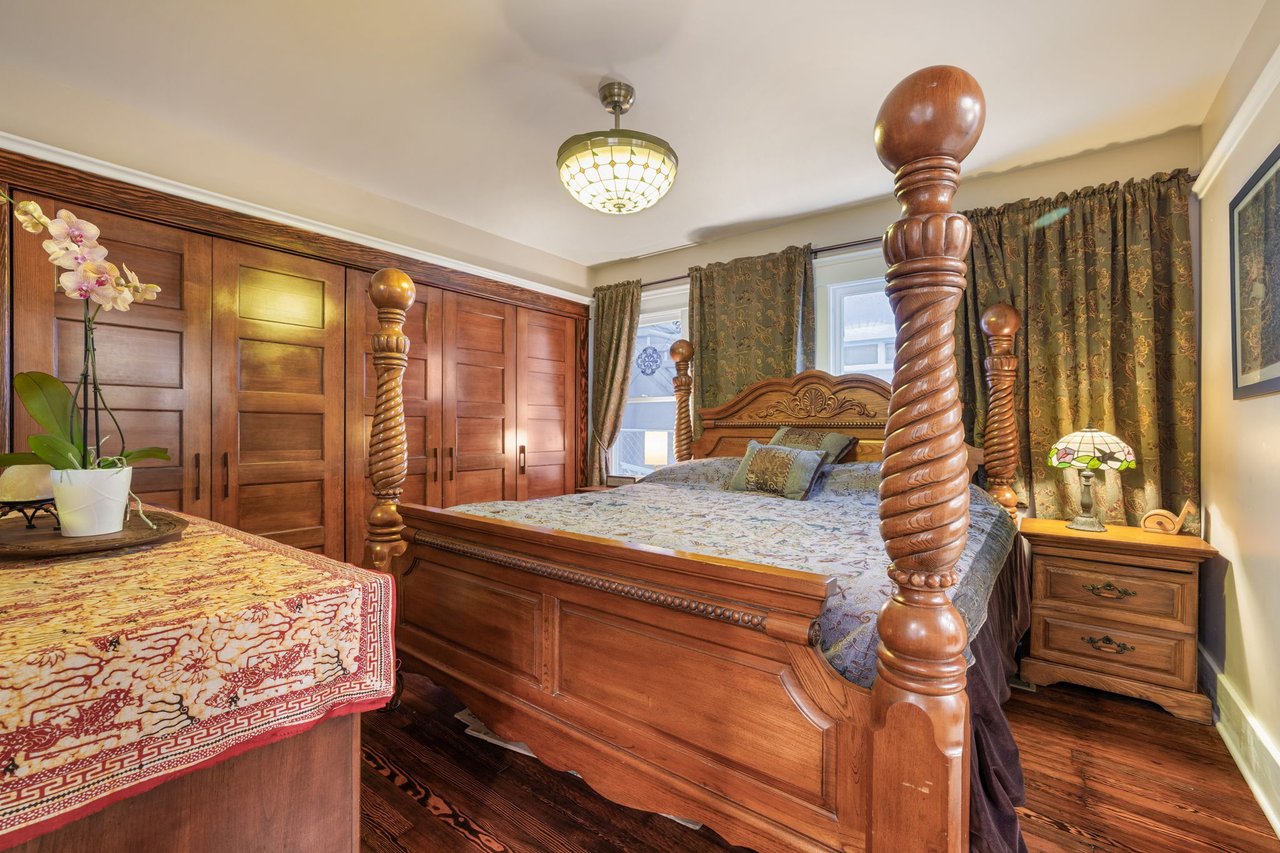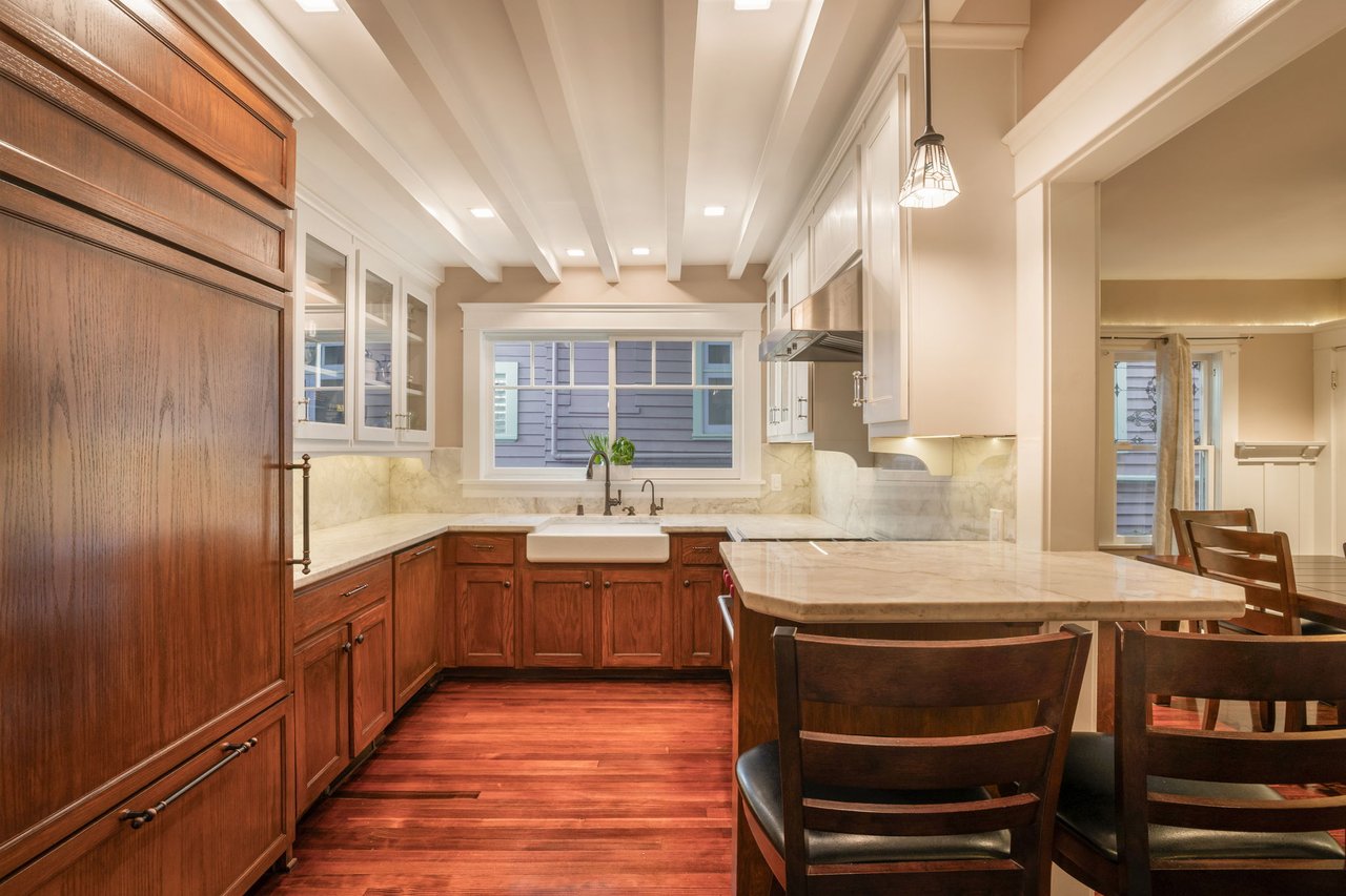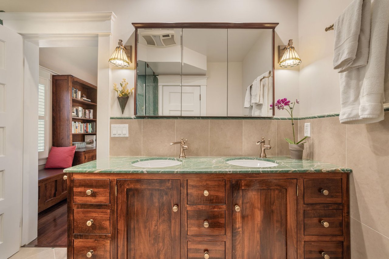 Set on a coveted Venice walk-street just moments from the sand, this timeless Craftsman-style home split into upper and lower residences captures the essence of California coastal living. Behind a lushly landscaped front yard and charming brick patio, the home welcomes you up to a breezy, heated front porch. Inside, old-growth Douglas Fir hardwood floors, artisan millwork, vintage stained glass, and bespoke built-ins exude character and craftsmanship throughout. The main-level residence unfolds into a spacious living area anchored by a brick fireplace and a luminous sunroom ideal for morning coffee or afternoon reading. The remodeled chef's kitchen pairs classic design with modern luxury--Dolce Vita Bianco quartzite countertops, custom cabinetry, an apron sink, and premium Sub-Zero and Wolf appliances--all open to an elegant dining room with an original built-in sideboard. The serene primary suite boasts generous closet space and a spa-inspired ensuite bath with luxurious heated floors, a dual vanity, and a separate shower and soaking tub lined with Green Lappia granite. Two additional bedrooms, one featuring a Murphy bed and another that would make a great office, offer flexibility to suit any lifestyle. With its own private entrance, the upper-level residence features a light-filled layout with White Oak floors, an expansive living room, sunlit dining area, dedicated office, and a fully outfitted kitchen. A private deck invites indoor-outdoor living, while three bedrooms, including a spacious primary suite with a walk-in closet, and two beautifully remodeled bathrooms with marble countertops and custom tile complete the space. The property is equipped with whole-house water filtration, an owned solar system with a Tesla battery, a washer/dryer in each unit, 220v exterior plug for EV charging, and four side-by-side parking spaces--a rare luxury in this premier beachside enclave. Supremely positioned moments from the very best of Venice, this exceptional property is less than a block from the beach, boardwalk, and iconic skatepark, and just minutes from acclaimed restaurants and the vibrant energy of Abbot Kinney, Rose Avenue, and Main Street in south Santa Monica. This remarkable home embodies California coastal living at its finest.