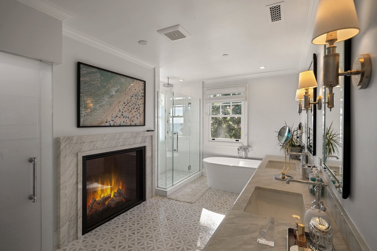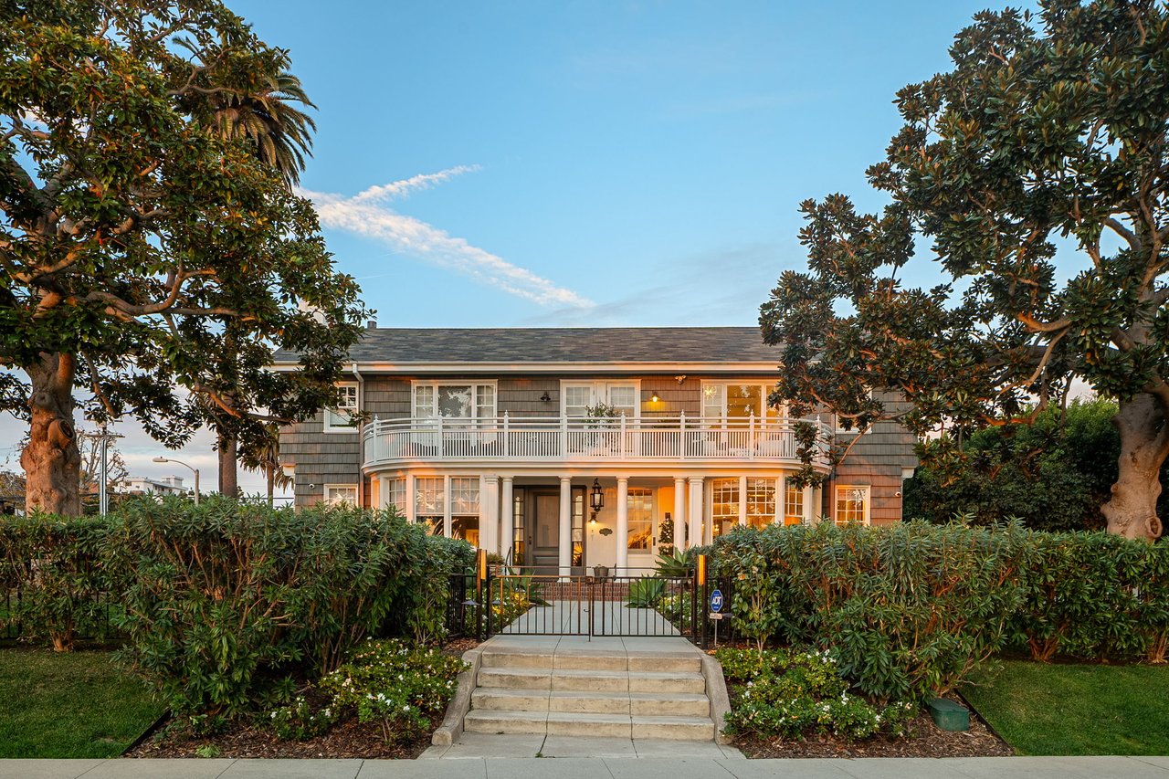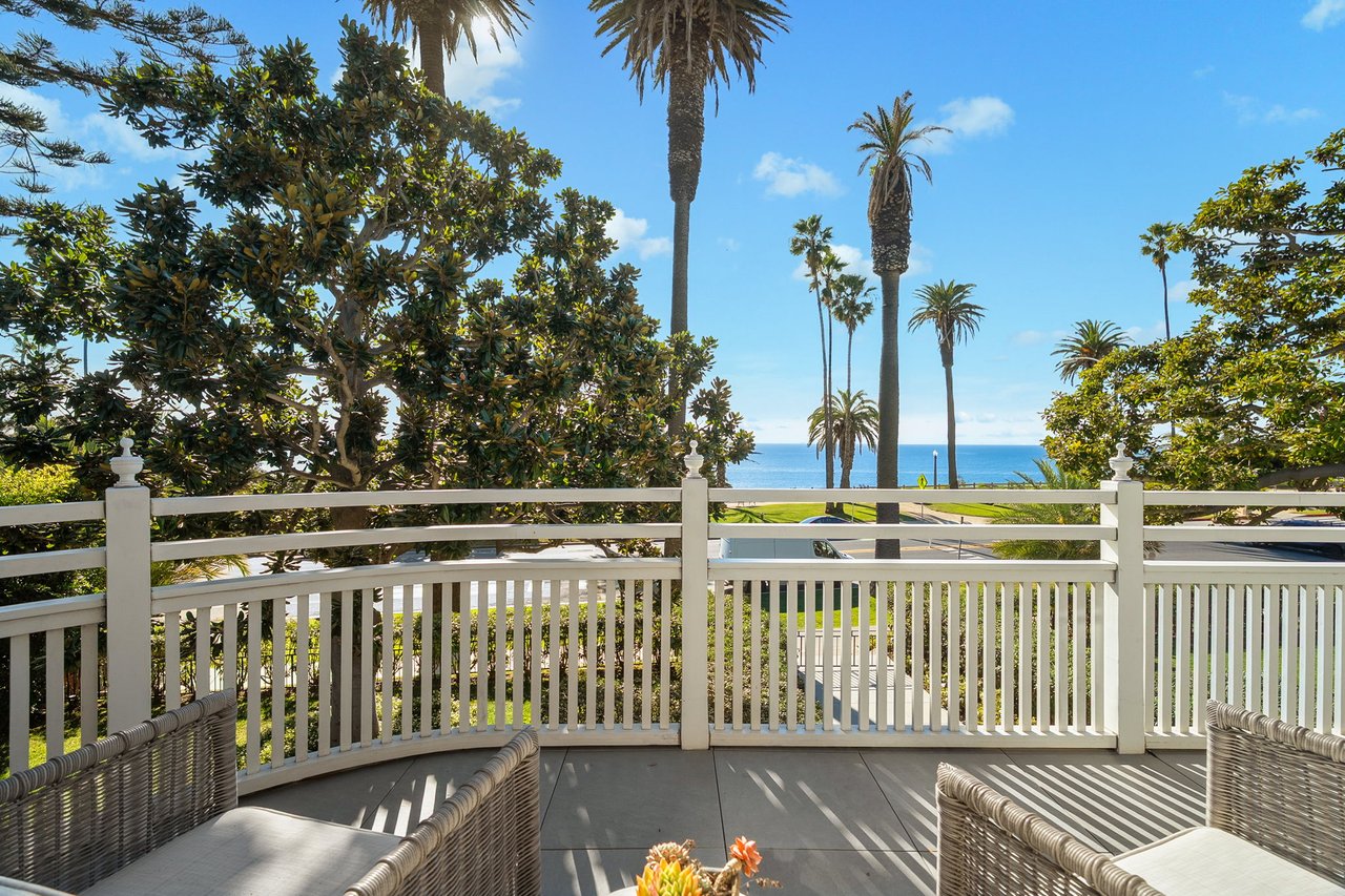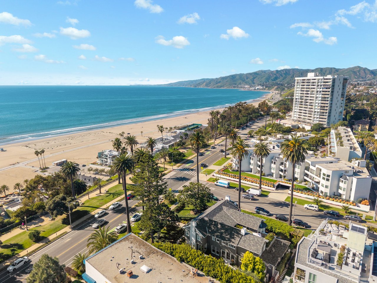 With a truly irreplaceable ocean view, landmark designation, and an extraordinary Mills Act property tax reduction, 401 Ocean presents a rare opportunity to own a piece of Santa Monica's coastal legacy. Rich in local history, this Craftsman-style residence was originally built in 1910 by renowned architect Robert Farquhar and thoughtfully restored and modernized in 2021. As a designated historic landmark, the home benefits from an active and transferable Mills Act contract, offering a significant property tax reduction of up to approximately 80%—an exceptional advantage in today's market. One of only two townhouse-style residences, the home lives with the privacy and presence of a single-family retreat, complete with a private entrance, side yard, multiple terraces, a two-car garage, and integrated home automation with surround sound throughout. Set just beyond the bluff, unobstructed views of the Pacific Ocean and Santa Monica Mountains unfold across the main and upper levels, all just moments from the beach, promenade, and pier. Inside, radiant natural light pours through expansive windows, illuminating exquisite millwork, wide-plank white oak floors, and refined modern finishes that elevate the home's timeless coastal character. The open-concept main level flows effortlessly from a sophisticated living room to an airy dining space and out to a private, hedge-lined terrace, the ideal setting for relaxed mornings or evenings dining al fresco. At the heart of the home, the gourmet kitchen is as beautiful as it is functional, featuring custom Axis cabinetry, a substantial seated island, premium built-in appliances including temperature-controlled wine storage, and a generous butler's pantry with wet bar. A charming powder room, laundry room, and bedroom suite complete the main floor. Upstairs, three additional bedroom suites await, including one with access to the upper terrace and the impressive primary suite. Positioned at the front of the home beneath soaring vaulted ceilings, the primary offers an awe-inspiring ocean-front vantage, a private balcony, expansive walk-in closet, and a spa-like en-suite bath with gas fireplace, dual vanity, soaking tub, and glass-enclosed shower. The lower level reveals an expansive brick-lined family room and full bathroom, ideal for a media lounge, gym, playroom, or private studio. Supremely located in the heart of Santa Monica with effortless access to world-class dining, boutiques, and Westside amenities, 401 Ocean is a one-of-a-kind heritage residence that honors California's past while defining the future of luxury coastal living.