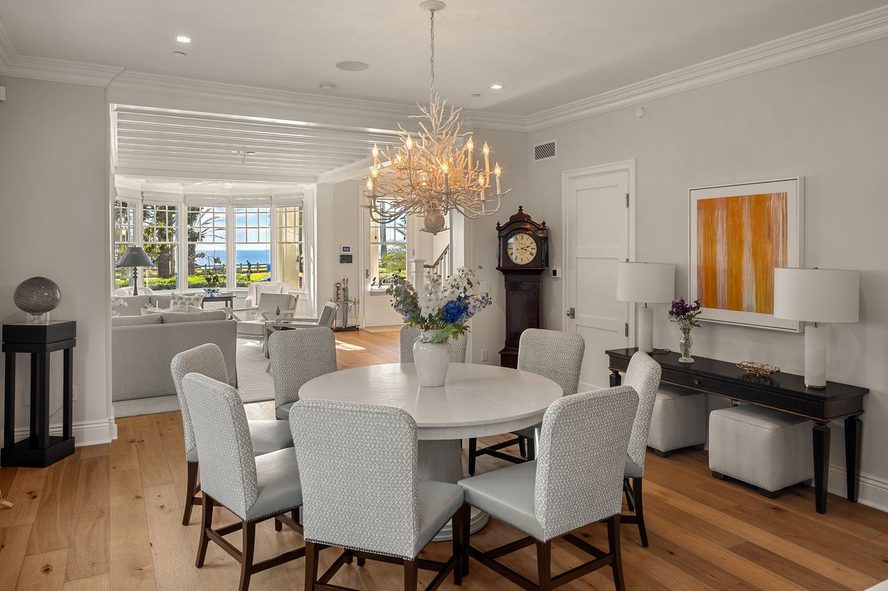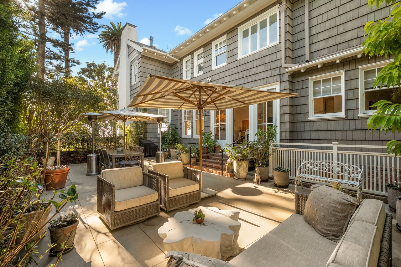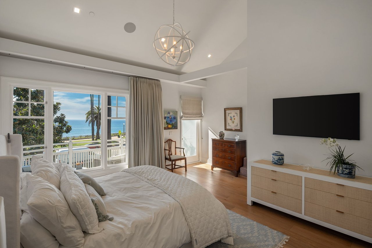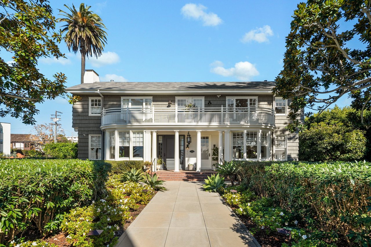 With a truly irreplaceable ocean view, landmark designation, and an extraordinary Mills Act property tax reduction, 401 Ocean presents a rare opportunity to own a piece of Santa Monica's coastal legacy. Rich in local history, this Craftsman-style residence was originally built in 1910 by renowned architect Robert Farquhar and thoughtfully restored and modernized in 2021. As a designated historic landmark, the home benefits from an active and transferable Mills Act contract, offering a significant property tax reduction of up to approximately 80%—an exceptional advantage in today's market. One of only two townhouse-style residences, the home lives with the privacy and presence of a single-family retreat, complete with a private entrance, side yard, multiple terraces, a two-car garage, and integrated home automation with surround sound throughout. Set just beyond the bluff, unobstructed views of the Pacific Ocean and Santa Monica Mountains unfold across the main and upper levels, all just moments from the beach, promenade, and pier. Inside, radiant natural light pours through expansive windows, illuminating exquisite millwork, wide-plank white oak floors, and refined modern finishes that elevate the home's timeless coastal character. The open-concept main level flows effortlessly from a sophisticated living room to an airy dining space and out to a private, hedge-lined terrace, the ideal setting for relaxed mornings or evenings dining al fresco. At the heart of the home, the gourmet kitchen is as beautiful as it is functional, featuring custom Axis cabinetry, a substantial seated island, premium built-in appliances including temperature-controlled wine storage, and a generous butler's pantry with wet bar. A charming powder room, laundry room, and bedroom suite complete the main floor. Upstairs, three additional bedroom suites await, including one with access to the upper terrace and the impressive primary suite. Positioned at the front of the home beneath soaring vaulted ceilings, the primary offers an awe-inspiring ocean-front vantage, a private balcony, expansive walk-in closet, and a spa-like en-suite bath with gas fireplace, dual vanity, soaking tub, and glass-enclosed shower. The lower level reveals an expansive brick-lined family room and full bathroom, ideal for a media lounge, gym, playroom, or private studio. Supremely located in the heart of Santa Monica with effortless access to world-class dining, boutiques, and Westside amenities, 401 Ocean is a one-of-a-kind heritage residence that honors California's past while defining the future of luxury coastal living.