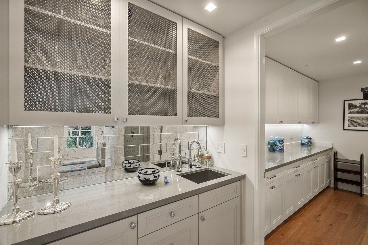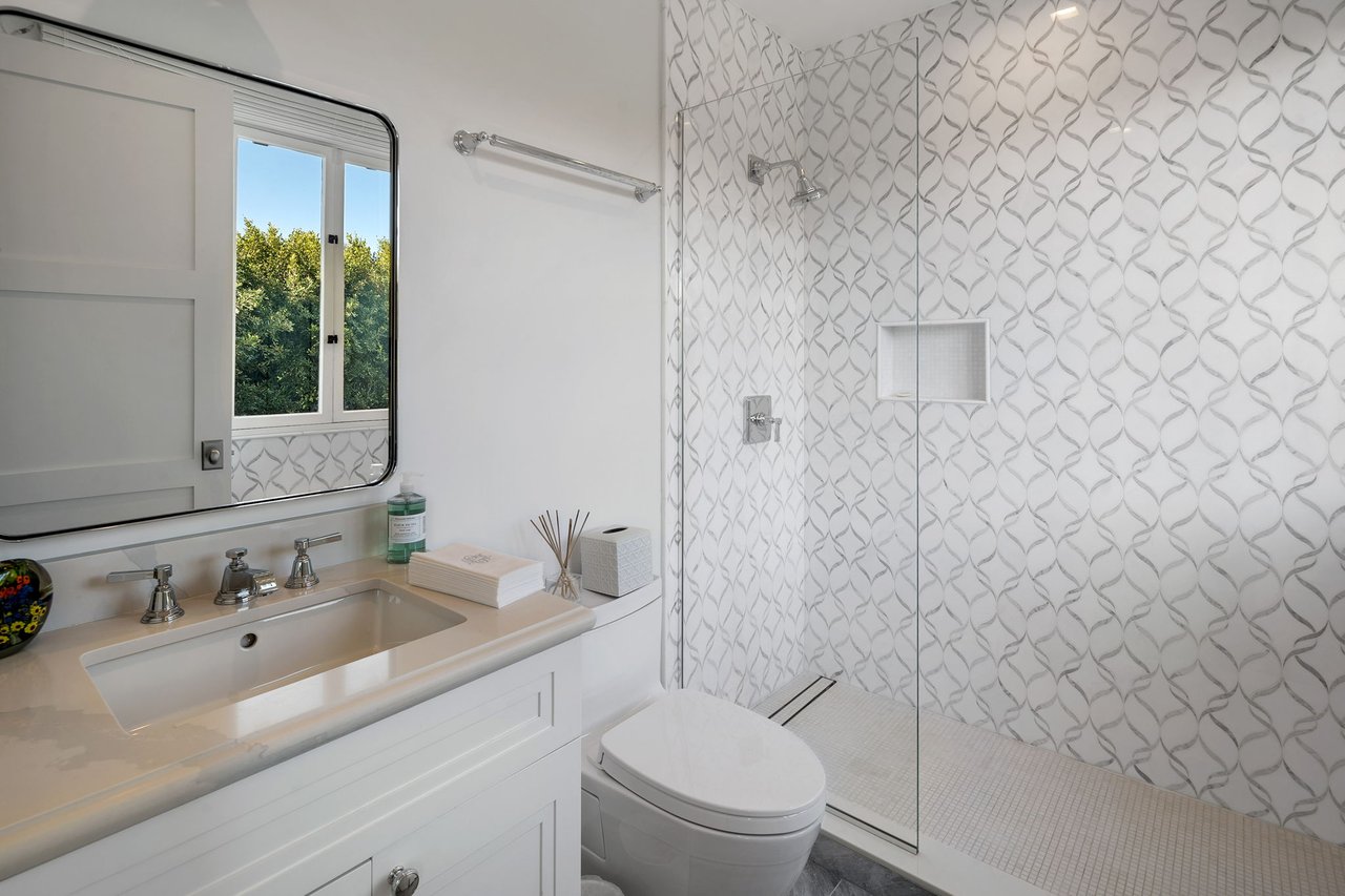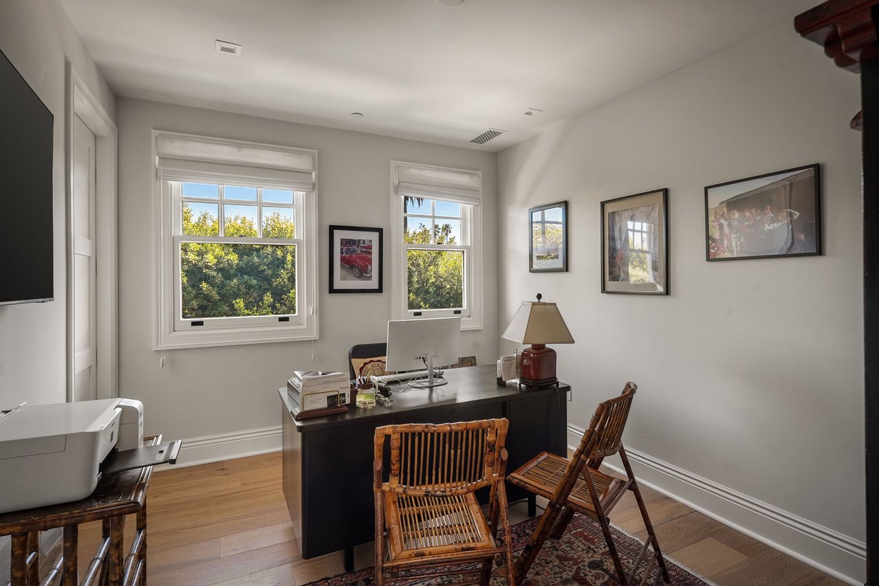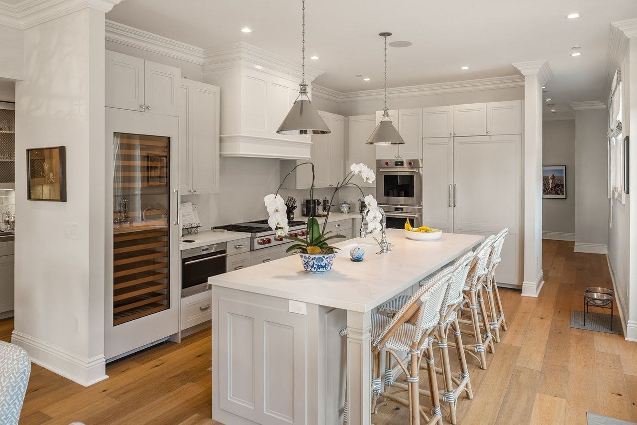 With a truly irreplaceable ocean view, landmark designation, and an extraordinary Mills Act property tax reduction, 401 Ocean presents a rare opportunity to own a piece of Santa Monica's coastal legacy. Rich in local history, this Craftsman-style residence was originally built in 1910 by renowned architect Robert Farquhar and thoughtfully restored and modernized in 2021. As a designated historic landmark, the home benefits from an active and transferable Mills Act contract, offering a significant property tax reduction of up to approximately 80%—an exceptional advantage in today's market. One of only two townhouse-style residences, the home lives with the privacy and presence of a single-family retreat, complete with a private entrance, side yard, multiple terraces, a two-car garage, and integrated home automation with surround sound throughout. Set just beyond the bluff, unobstructed views of the Pacific Ocean and Santa Monica Mountains unfold across the main and upper levels, all just moments from the beach, promenade, and pier. Inside, radiant natural light pours through expansive windows, illuminating exquisite millwork, wide-plank white oak floors, and refined modern finishes that elevate the home's timeless coastal character. The open-concept main level flows effortlessly from a sophisticated living room to an airy dining space and out to a private, hedge-lined terrace, the ideal setting for relaxed mornings or evenings dining al fresco. At the heart of the home, the gourmet kitchen is as beautiful as it is functional, featuring custom Axis cabinetry, a substantial seated island, premium built-in appliances including temperature-controlled wine storage, and a generous butler's pantry with wet bar. A charming powder room, laundry room, and bedroom suite complete the main floor. Upstairs, three additional bedroom suites await, including one with access to the upper terrace and the impressive primary suite. Positioned at the front of the home beneath soaring vaulted ceilings, the primary offers an awe-inspiring ocean-front vantage, a private balcony, expansive walk-in closet, and a spa-like en-suite bath with gas fireplace, dual vanity, soaking tub, and glass-enclosed shower. The lower level reveals an expansive brick-lined family room and full bathroom, ideal for a media lounge, gym, playroom, or private studio. Supremely located in the heart of Santa Monica with effortless access to world-class dining, boutiques, and Westside amenities, 401 Ocean is a one-of-a-kind heritage residence that honors California's past while defining the future of luxury coastal living.