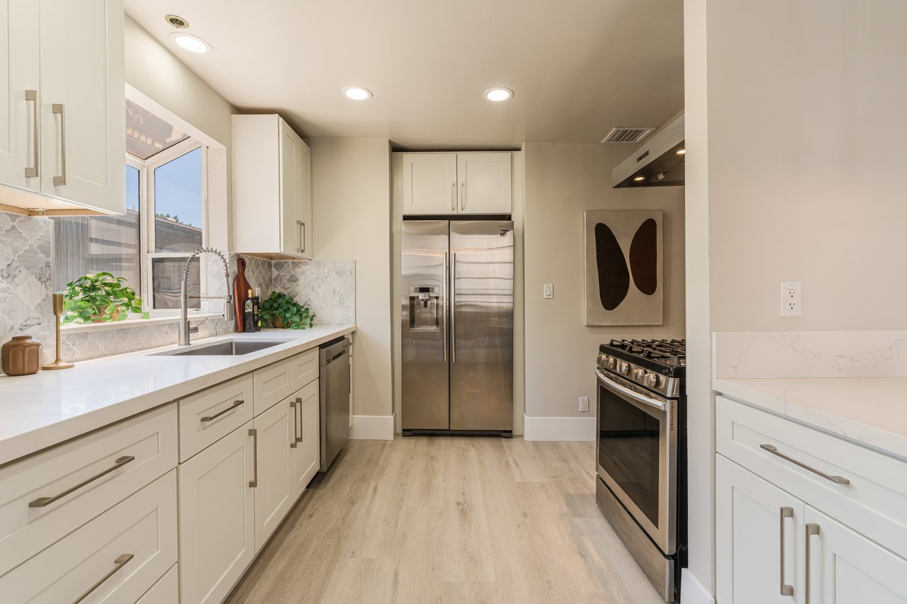 A beautifully updated condominium located in the heart of the Beverly Center area. This refined 2-bedroom, 2-bathroom home has been thoughtfully renovated with modern finishes throughout, including recently installed wood flooring, brand-new countertops, and custom cabinetry in both the kitchen and bathrooms. The kitchen is equipped with new stainless steel appliances, while updated faucets, recessed lighting, and fixtures add a sleek, contemporary touch. The open-concept living room features a modern fireplace, and the in-unit laundry includes a washer and dryer for added convenience. Community perks include a pool and a shared recreation lounge, perfect for relaxing or entertaining. Enjoy a prime location just minutes from premier shopping, local parks, top schools, and everything the Beverly Center area has to offer.