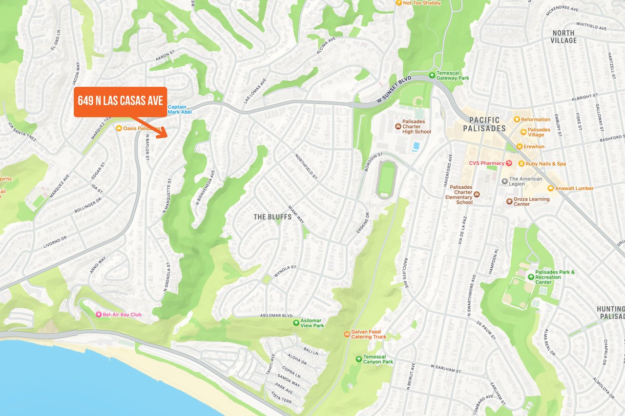 Secure a significant advantage in the rebuilding process with this exclusive offering in Pacific Palisades—a prime, 10,024-square-foot through lot located west of Sunset in the Las Casas Loop neighborhood. This parcel not only provides scale and location, but a streamlined path toward development with RTI plans by renowned firm SCALA (2025), geo report (2025), topo survey (2025), structural engineering report (2025), asbestos report (2025), and phase 1 & 2 debris removal report—all included in the sale. The plans represent a rebuild of the former residence, which was a Traditional-style coastal home spanning 5,218 SQFT with 5-bedrooms, 6-bathrooms, a dedicated office, peek-a-boo ocean and mountain views from the upper level, and a resort-style backyard with pool and spa. Buyers may choose to rebuild this vision or reimagine their own on this expansive parcel in a prime location. Supremely positioned just minutes from Palisades Village, Palisades Charter High School, and the beach, this offering presents both short-term value and long-term upside in a highly sought-after coastal community undergoing thoughtful renewal.