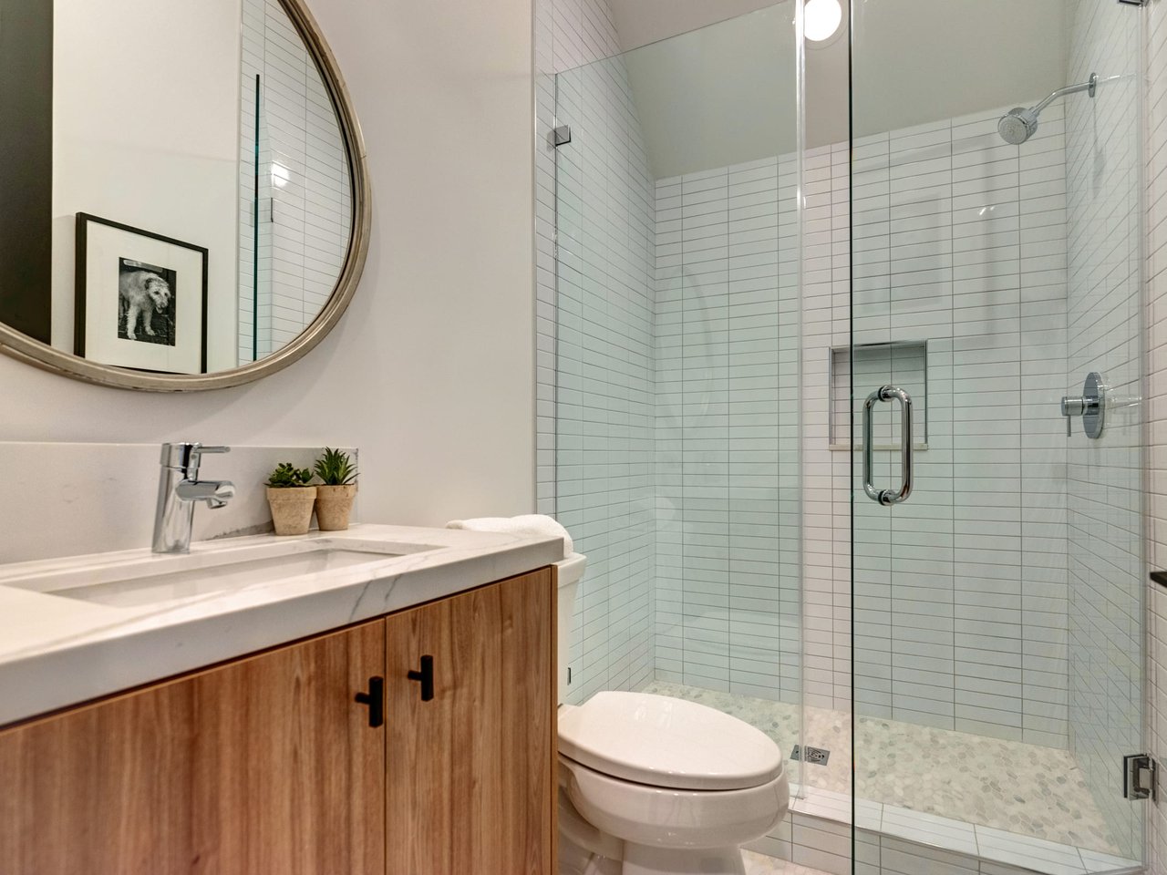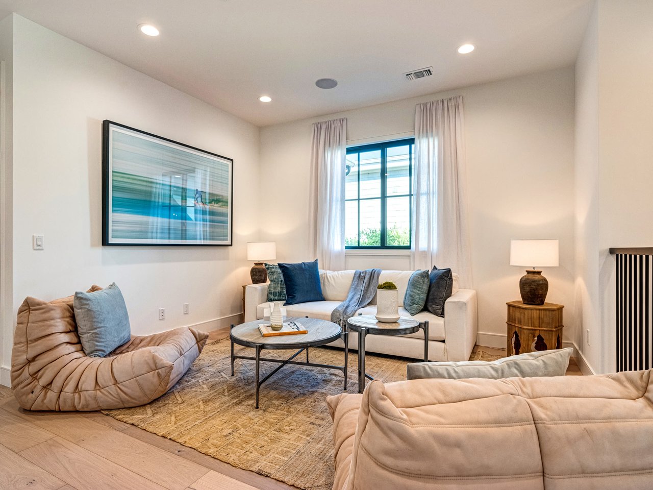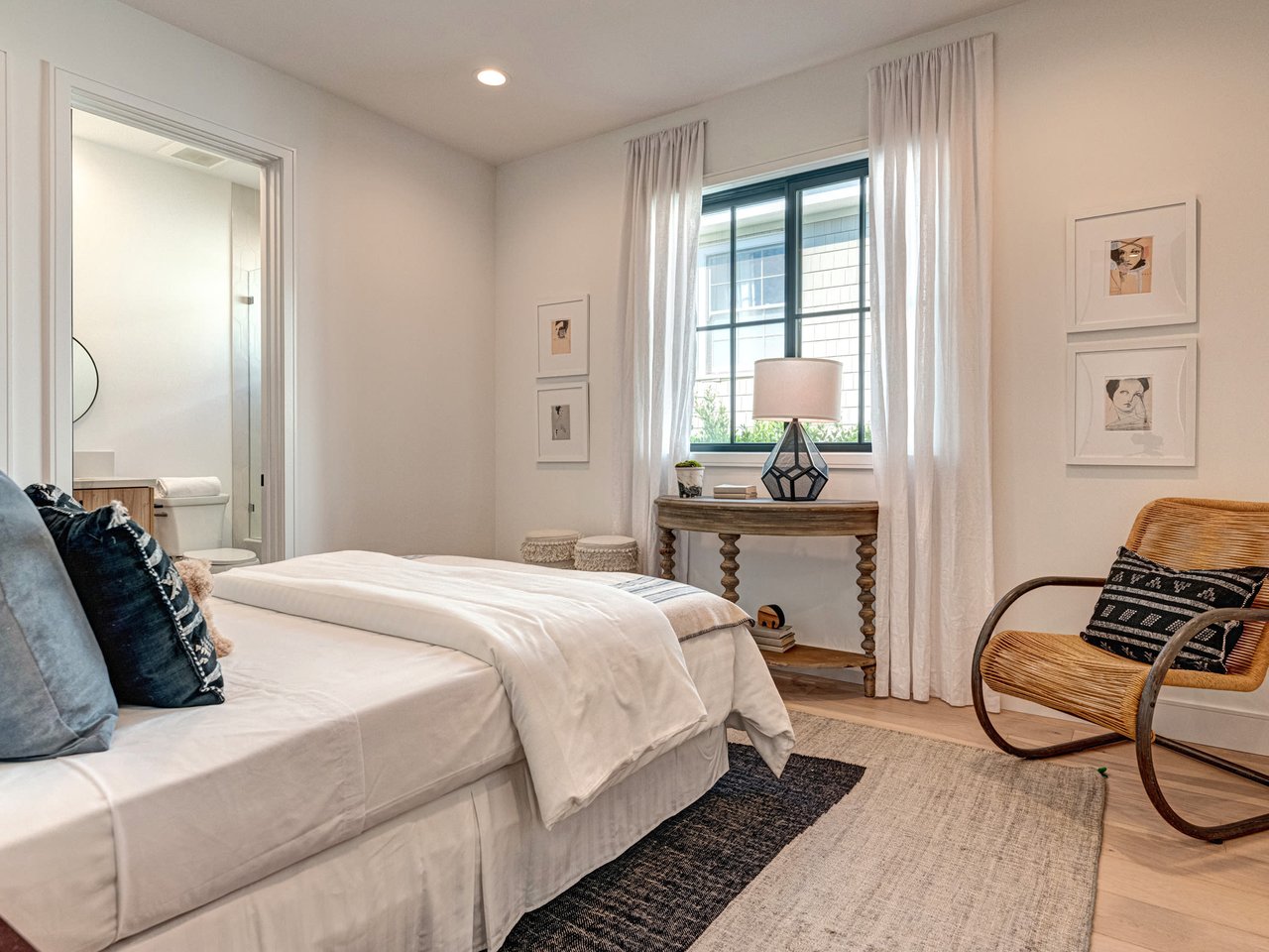 Built by Thomas James Homes, this brand new townhome has been professionally designed, hand crafted to fit your needs, and comes with a full 10-YR new home construction warranty. The transitional farmhouse style exterior displays board and batten siding with black windows and trim. Inside you will find four spacious bedrooms, four full baths, a powder bath, and attached 2-car garage. Enter the foyer to discover a first floor guest bed with en suite bath, dining room with sliding doors to the courtyard, and powder bath. The gourmet kitchen has an island with bar seating, walk-in pantry and built-in bench seat, overlooking the great room with fireplace and sliding doors to the covered patio. Ascend the stairs to the loft, laundry room, two secondary en suite beds, and a balcony. The grand suite has double doors which open to a spa-like bath with soaking tub, walk-in shower, dual sink vanity, linen closet, and walk-in closet.