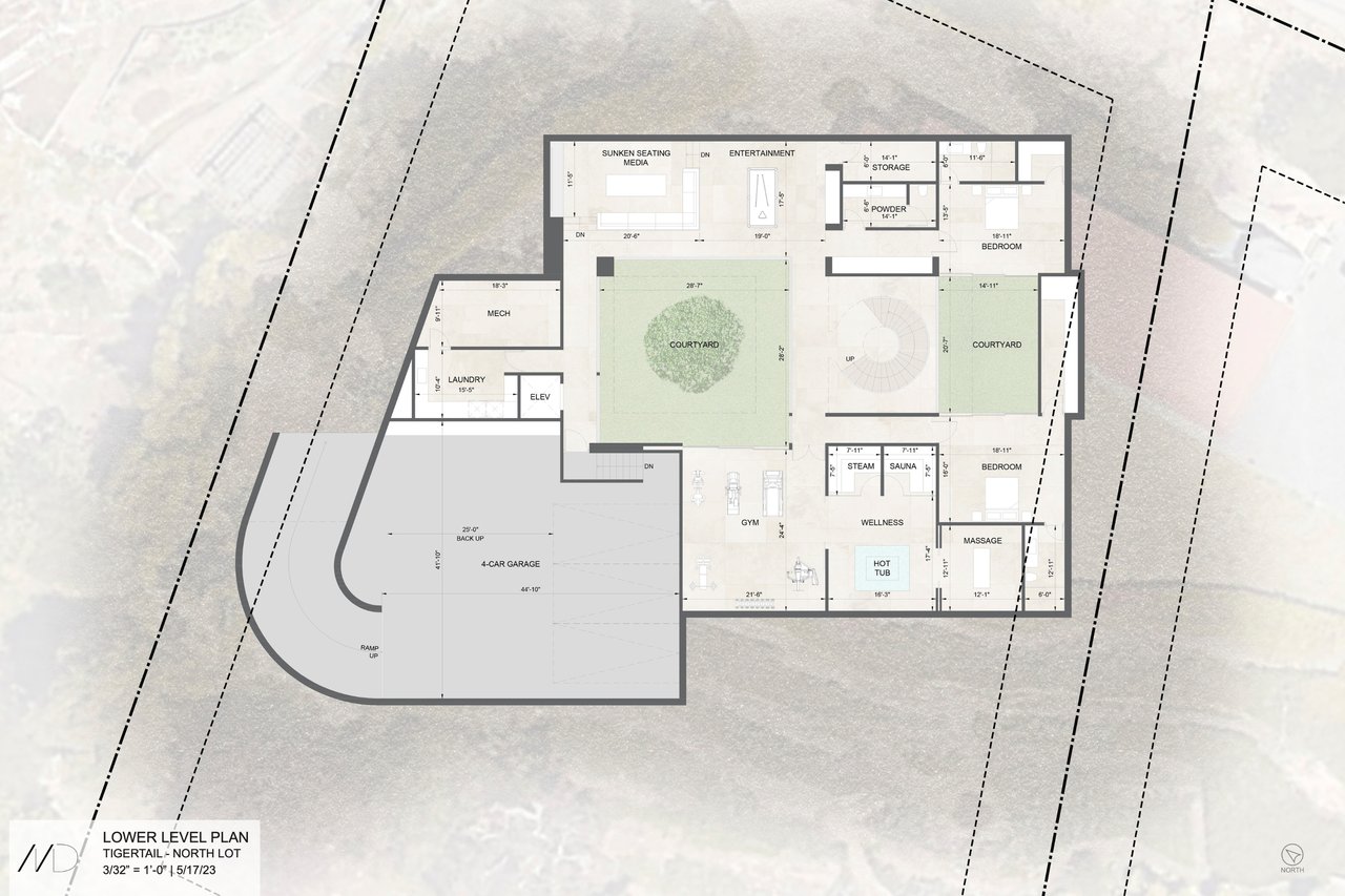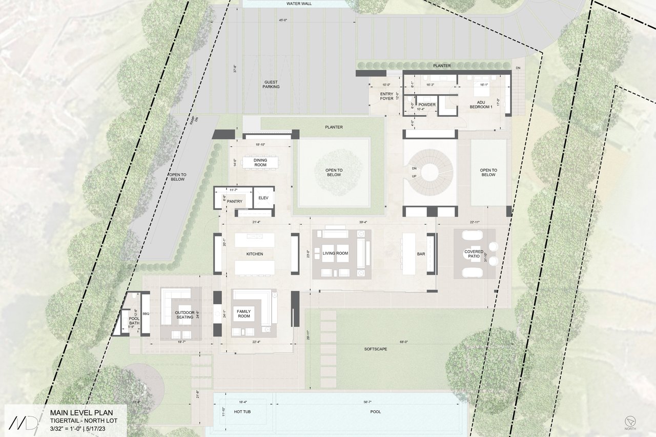 Perched in a prestigious Brentwood neighborhood, 747 North Tigertail Road presents an extraordinary opportunity to create a world-class estate in one of the Westside's most sought-after neighborhoods. Set on an expansive 28,519 square foot lot (.65 AC), the property captures spectacular canyon and ocean views, offering a breathtaking backdrop for a future architectural masterpiece. The offering includes RTI plans, surveys, and a slope density analysis, providing a valuable head start for the next owner to begin building their dream home with confidence and efficiency. The approved plans envision a stunning contemporary residence designed to blur the lines between indoor and outdoor living, thoughtfully positioned to maximize the property's sweeping vistas and natural, bluff-front surroundings. The proposed home would span an impressive 12,549 interior square feet across three expansive levels, featuring seven bedrooms and ten bathrooms, along with an array of luxury amenities including an infinity-edge pool and spa, fire pit, outdoor kitchen, rooftop deck, entertainment lounge with wet bar, screening room, gym, elevator, and a state-of-the-art wellness center. A luxurious primary wing serves as a private retreat, while the overall design prioritizes privacy, tranquility, and seamless flow for both everyday living and grand-scale entertaining. Located in a prime Brentwood enclave, the property is just moments from top-rated schools, The Getty, and the acclaimed dining and shopping along San Vicente Boulevard. With its rare scale, breathtaking views, and RTI Plans for an exceptional modern estate, 747 North Tigertail Road offers a remarkable opportunity to bring a visionary residence to life in one of Los Angeles' most desirable communities.