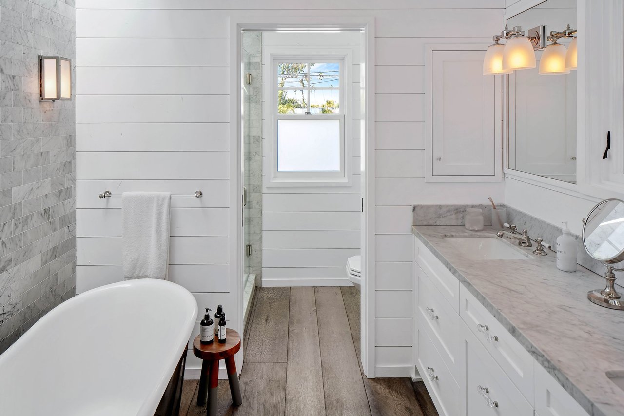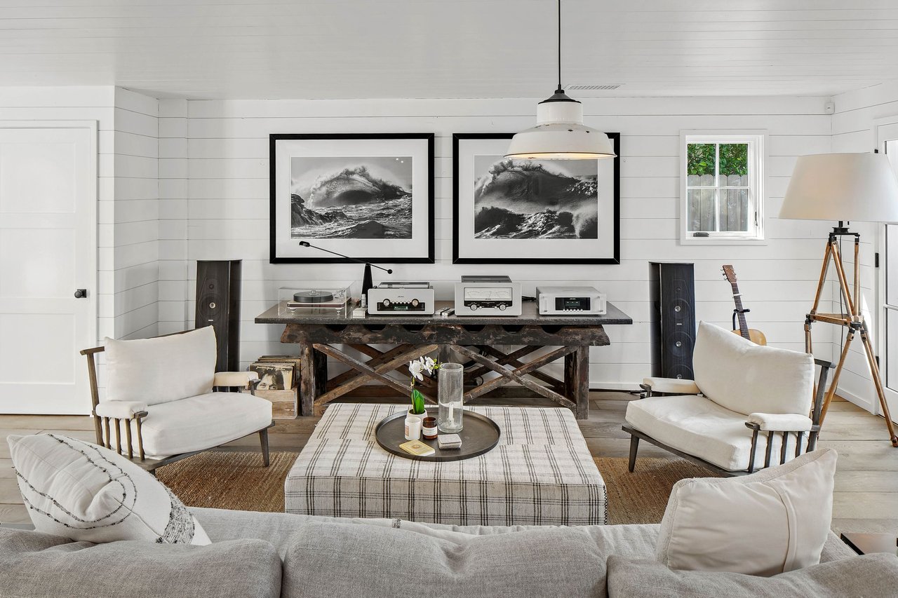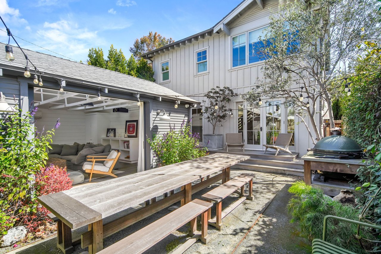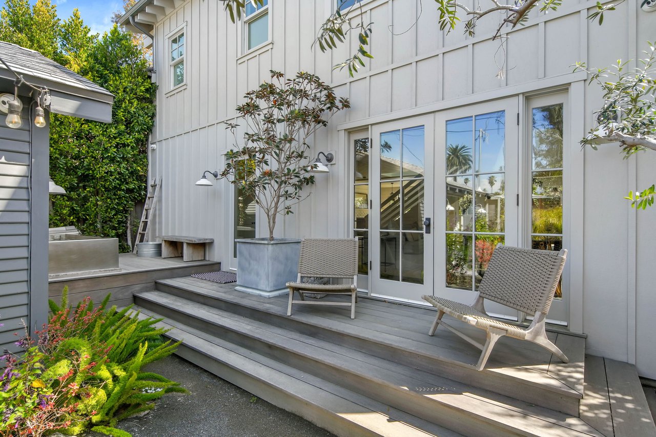 Nestled in Venice on a highly coveted walk-street just blocks from Abbot Kinney and the beach, 821 Nowita Place presents a rare opportunity to reside in a stunning 3-bedroom, 3-bathroom designer-renovated Craftsman home. The fenced front yard immediately captivates with lush landscaping, a stone walkway and an inviting seating area set around a fire pit, all leading up to the striking, Dutch entry door. Sunlit and spacious, this impeccable home boasts effortless indoor-outdoor living, allowing you to bask in Southern California's year-round sunshine. With a blend of modernity and historical roots, the home features tasteful touches and high-end finishes, including reclaimed hardwood floors, shiplap walls, custom lighting, unique kitchen hardware and home tech like the security system with cameras and coded door access. The centerpiece of the main level, the seamless kitchen opens out to the living areas and features top-tier appliances including a wine fridge. Upstairs you'll find two bedroom suites, inclusive of the primary, and the laundry area. A serene retreat, the spacious primary suite has high vaulted ceilings, a reading nook with window seat, a fireplace and custom pass-through closet that leads to a marble-clad spa bath with separate shower and soaking tub. Off the rear deck is the lush backyard, offering the ideal outdoor entertaining space complete with a sleek hot tub, dining patio, BBQ grill, and access to two parking spaces. A converted garage with the same finishes as the main home provides flexible living space and may be used as a bedroom, home theater (projector included!), a studio, and more! Just moments from Abbot Kinney and the infamous Venice Beach boardwalk, this peaceful oasis has convenient access to the area's best dining, shopping and entertainment offerings including the Venice Farmers Market, Erewhon and Gjelina. Don't miss this rare opportunity to live out your dream California coastal lifestyle!