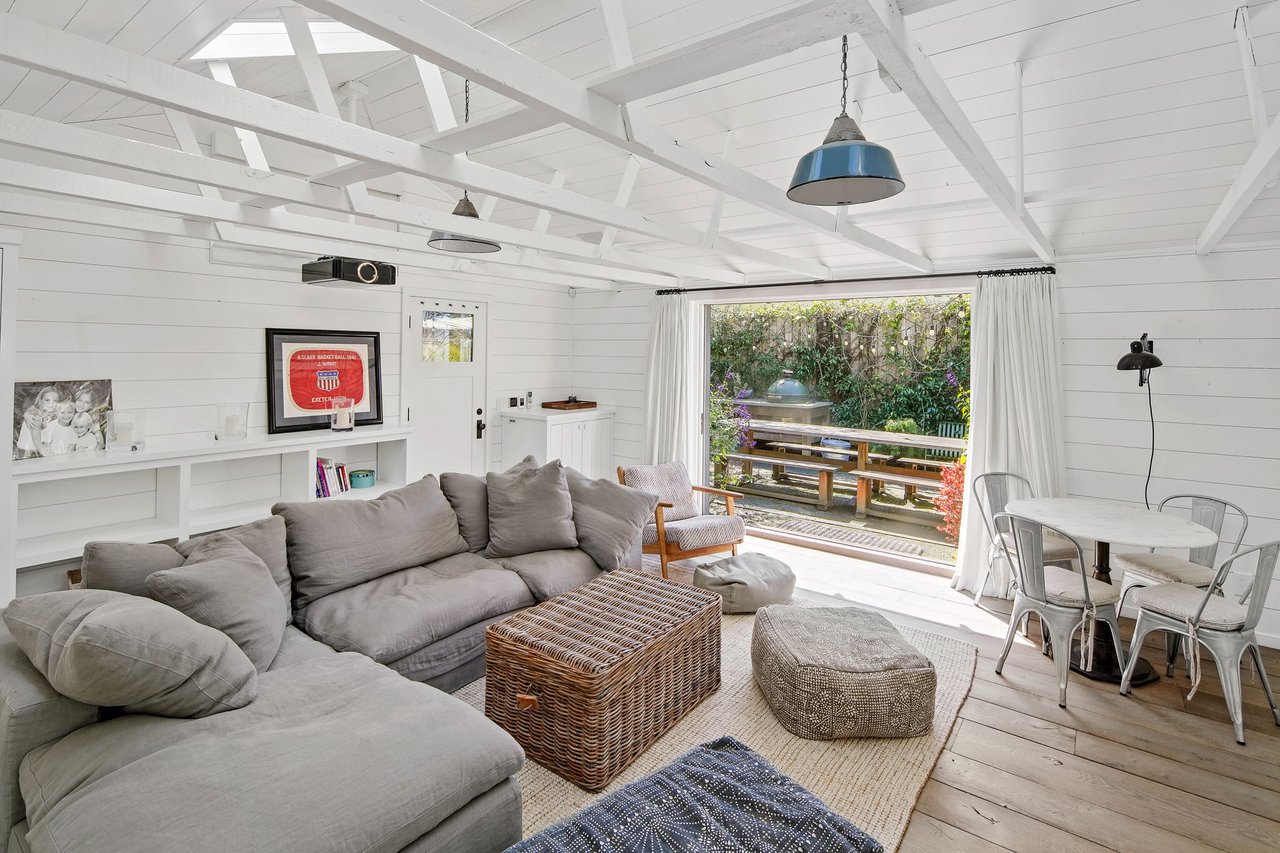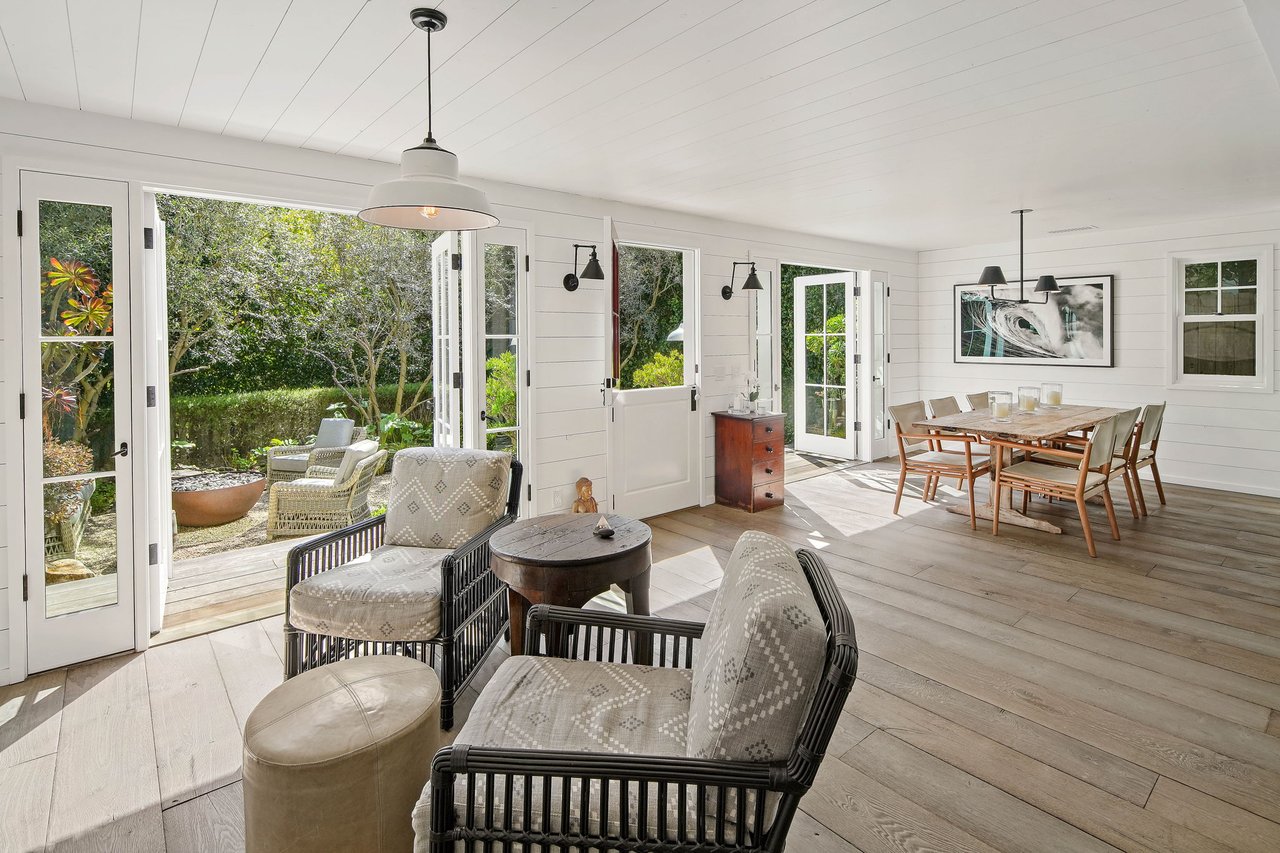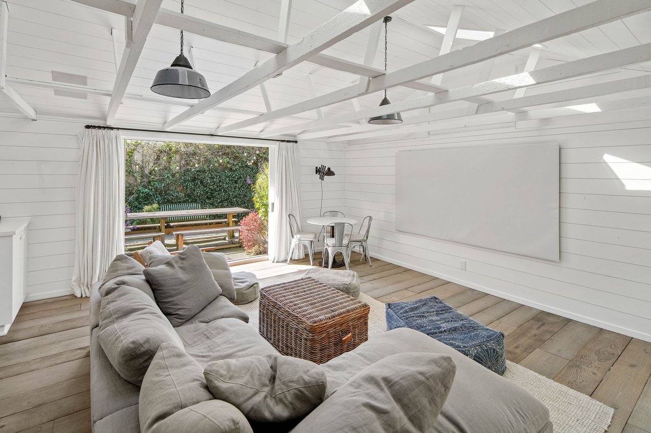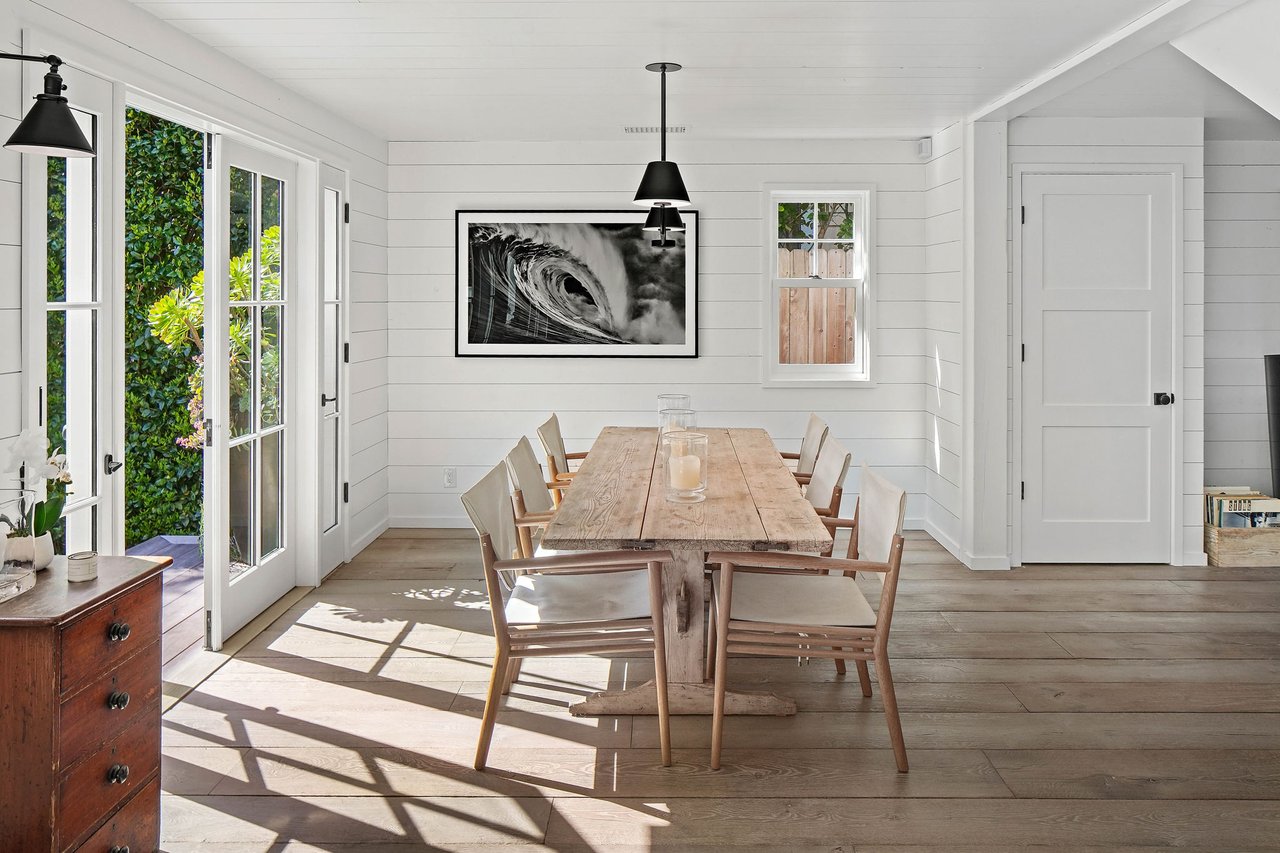 Nestled in Venice on a highly coveted walk-street just blocks from Abbot Kinney and the beach, 821 Nowita Place presents a rare opportunity to reside in a stunning 3-bedroom, 3-bathroom designer-renovated Craftsman home. The fenced front yard immediately captivates with lush landscaping, a stone walkway and an inviting seating area set around a fire pit, all leading up to the striking, Dutch entry door. Sunlit and spacious, this impeccable home boasts effortless indoor-outdoor living, allowing you to bask in Southern California's year-round sunshine. With a blend of modernity and historical roots, the home features tasteful touches and high-end finishes, including reclaimed hardwood floors, shiplap walls, custom lighting, unique kitchen hardware and home tech like the security system with cameras and coded door access. The centerpiece of the main level, the seamless kitchen opens out to the living areas and features top-tier appliances including a wine fridge. Upstairs you'll find two bedroom suites, inclusive of the primary, and the laundry area. A serene retreat, the spacious primary suite has high vaulted ceilings, a reading nook with window seat, a fireplace and custom pass-through closet that leads to a marble-clad spa bath with separate shower and soaking tub. Off the rear deck is the lush backyard, offering the ideal outdoor entertaining space complete with a sleek hot tub, dining patio, BBQ grill, and access to two parking spaces. A converted garage with the same finishes as the main home provides flexible living space and may be used as a bedroom, home theater (projector included!), a studio, and more! Just moments from Abbot Kinney and the infamous Venice Beach boardwalk, this peaceful oasis has convenient access to the area's best dining, shopping and entertainment offerings including the Venice Farmers Market, Erewhon and Gjelina. Don't miss this rare opportunity to live out your dream California coastal lifestyle!