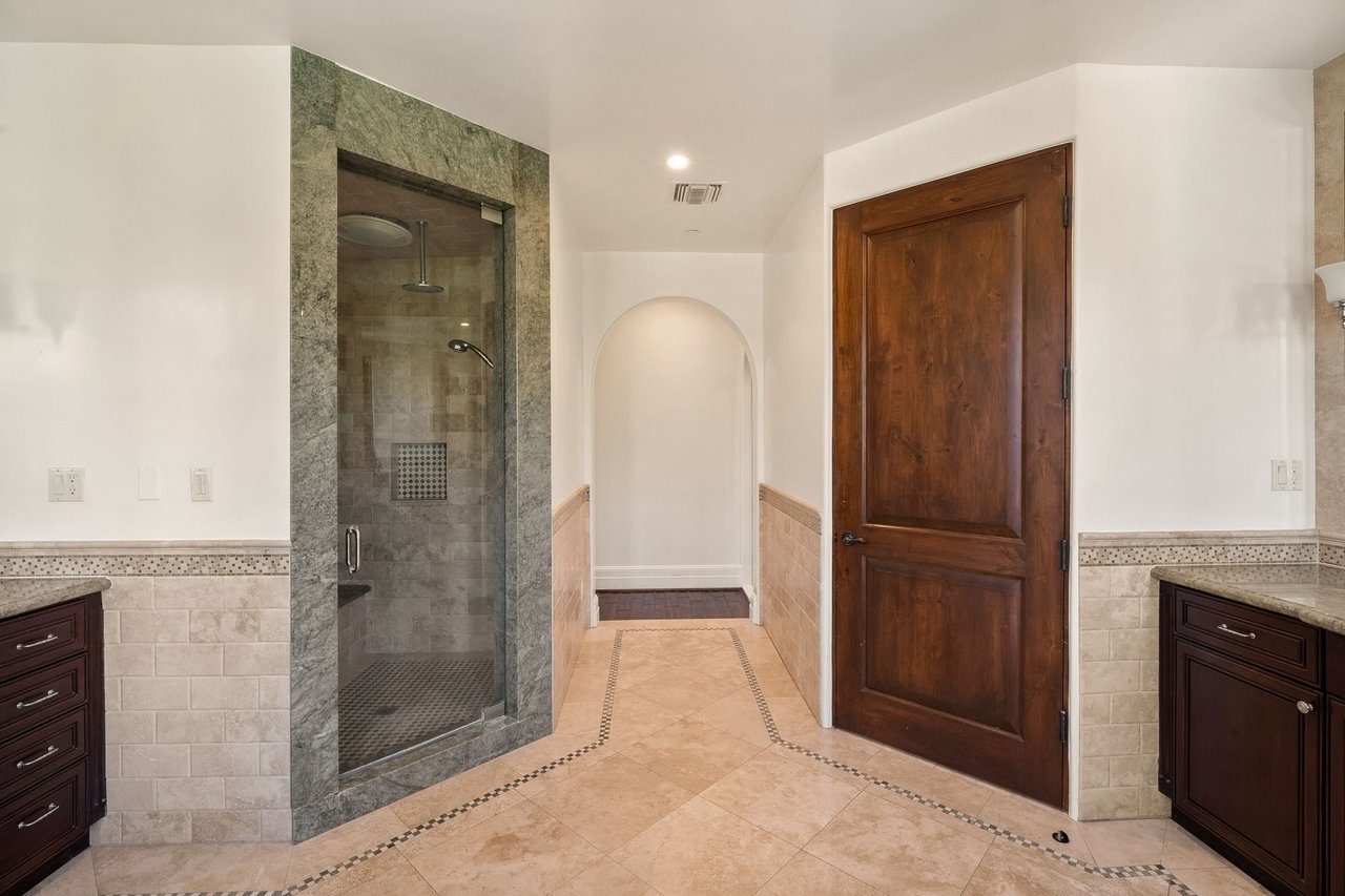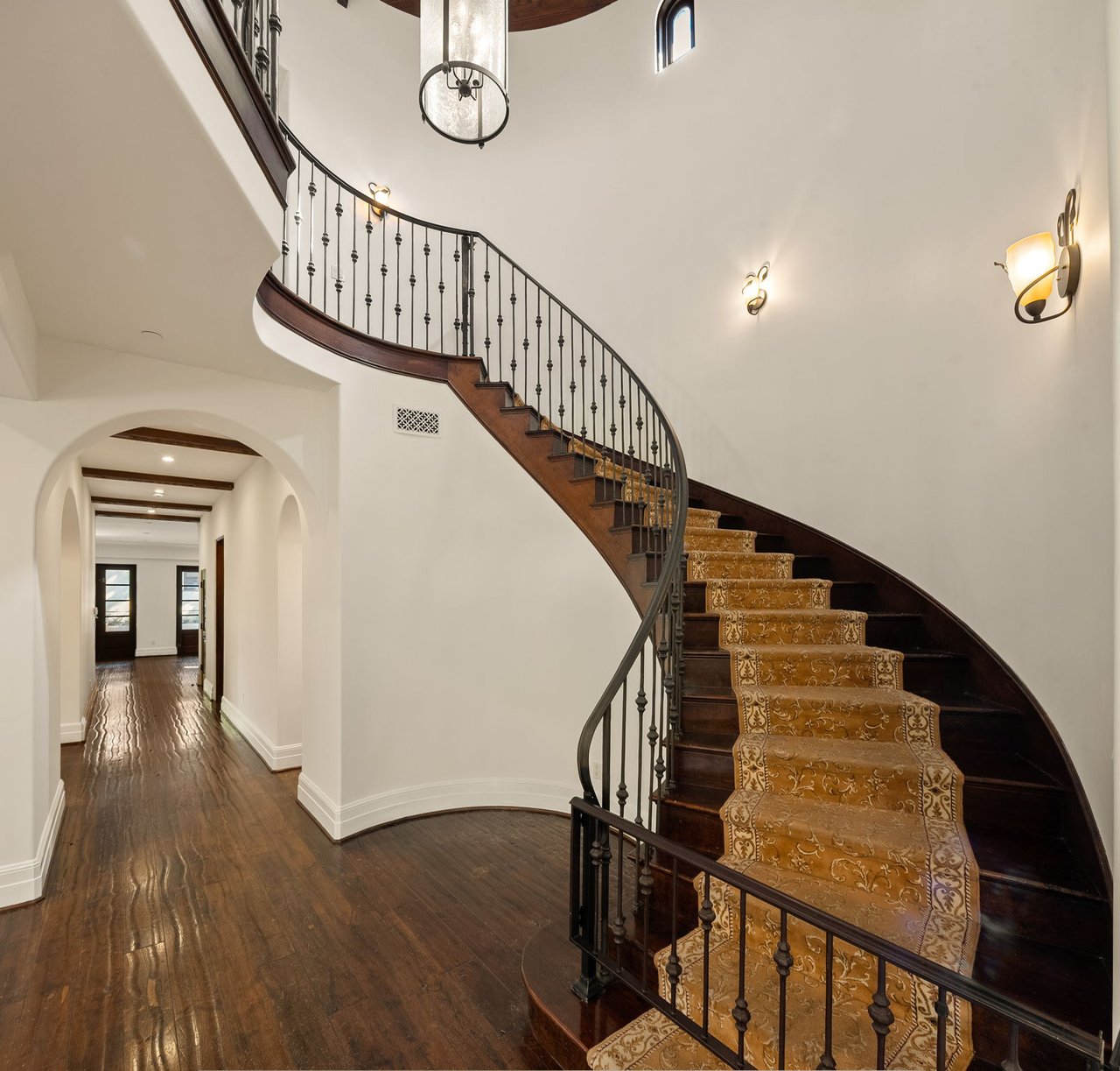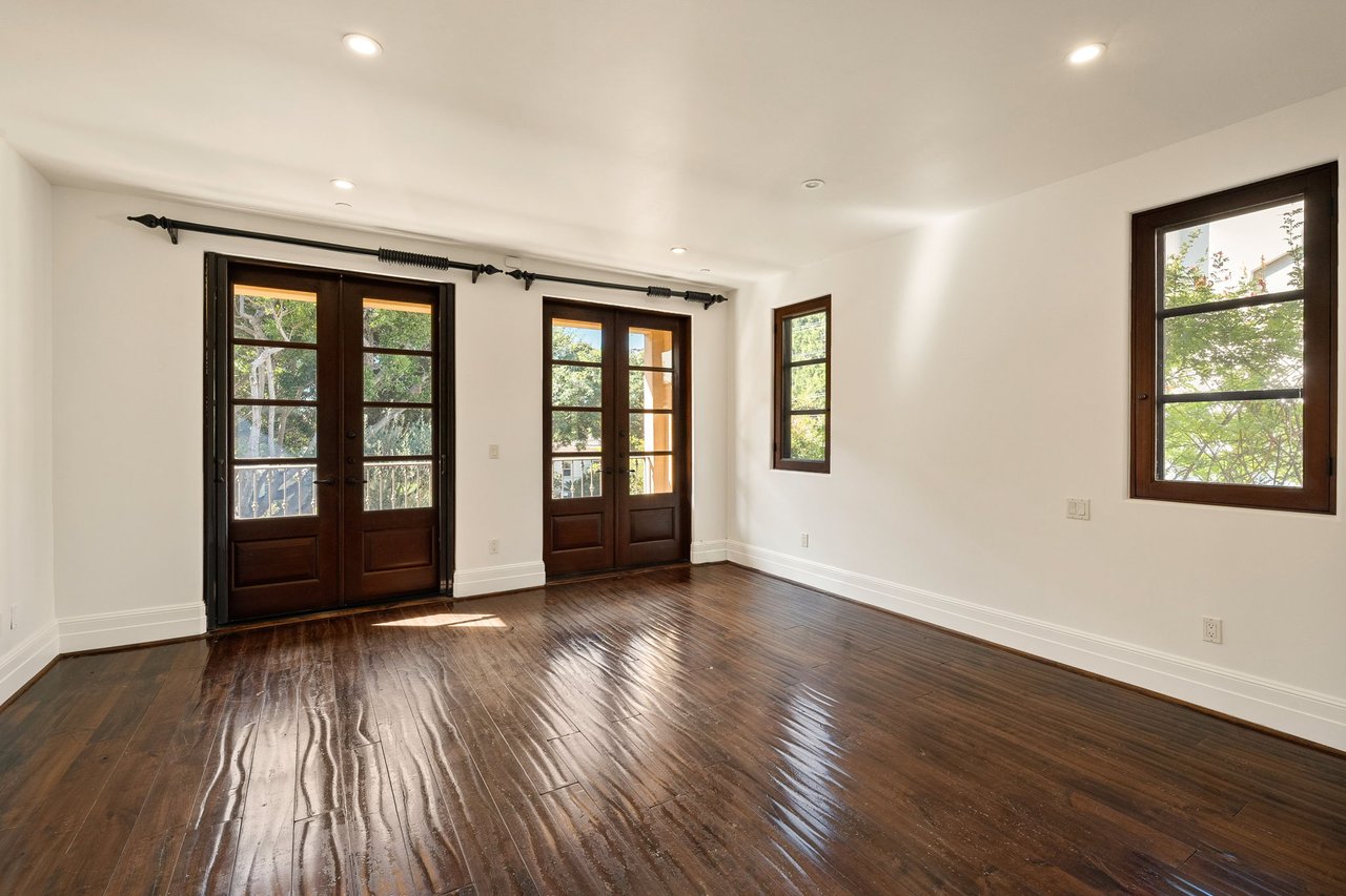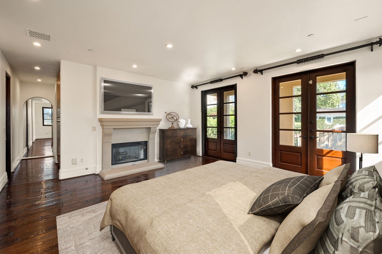 Welcome to this refined Spanish Revival home for lease in Santa Monica, ideally located in the highly desirable College Streets neighborhood, just moments from Montana Avenue's boutiques, restaurants, and cafes. This luxury 5-bedroom, 6-bathroom home offers 4,177 square feet of elegant living space, blending timeless architectural charm with modern California living. Enter to discover exquisite details including coved ceilings, French doors, graceful archways, a curved staircase, and warm wood floors. Large windows flood the home with natural light, highlighting the inviting layout designed for both everyday comfort and entertaining. The home features a formal living room centered around a stone fireplace, a formal dining room ideal for gatherings, and a dedicated office. The chef's kitchen is a true centerpiece, complete with natural stone countertops, premium stainless steel appliances like the Viking range with double ovens, a sunlit breakfast nook, and a walk-in pantry. The adjacent family room offers built-in wine storage and opens through double sets of French doors to the backyard, creating seamless indoor-outdoor flow. Upstairs, the primary suite serves as a private retreat with a stone fireplace, covered balcony overlooking the backyard, a custom walk-in closet, and a spa-inspired bathroom featuring dual vanities, a steam shower, and jetted soaking tub. Four additional bedrooms with en suite bathrooms, including one on the main level, provide versatility for a variety of lifestyles. Enjoy the tranquil backyard enveloped by mature privacy hedges and featuring a sparkling pool and spa, expansive patio space for alfresco dining and lounging, a BBQ, and a covered veranda. Additional highlights include a powder room, laundry room, and detached two-car garage with built-in storage. Located near the Brentwood Country Club, Montana Avenue shops, and just minutes to Santa Monica Beach, this exceptional home offers space and style in one of Santa Monica's most coveted neighborhoods.
